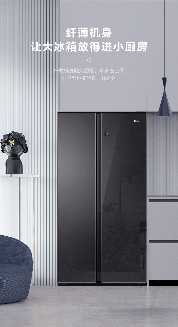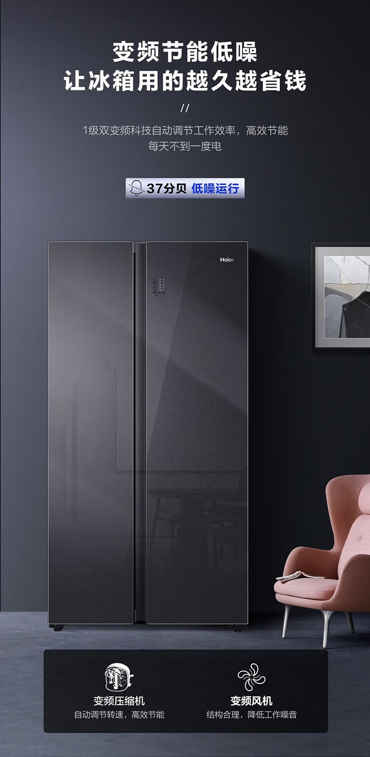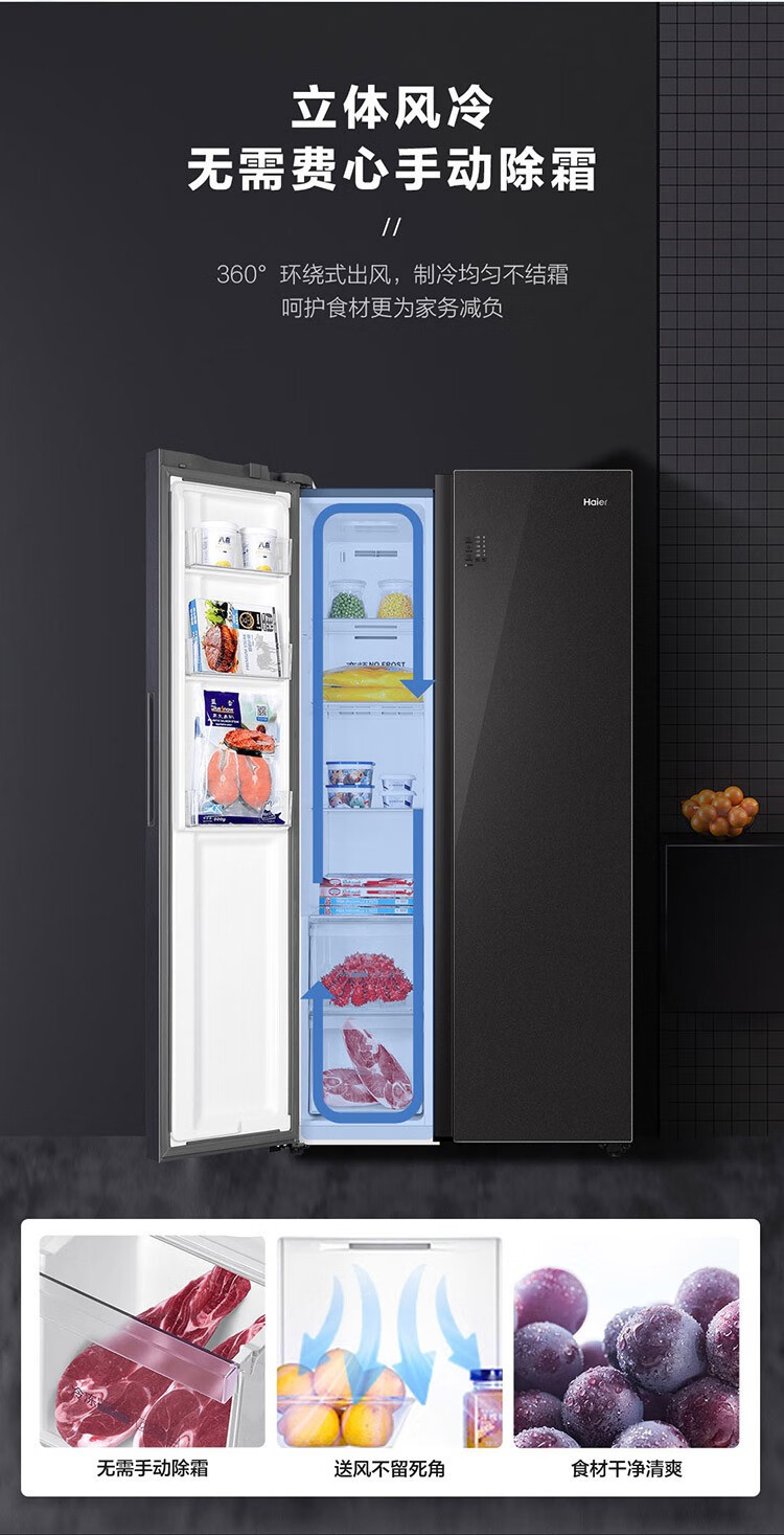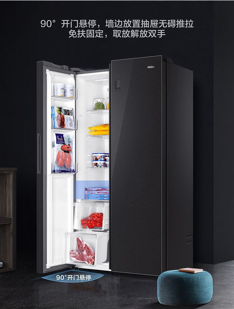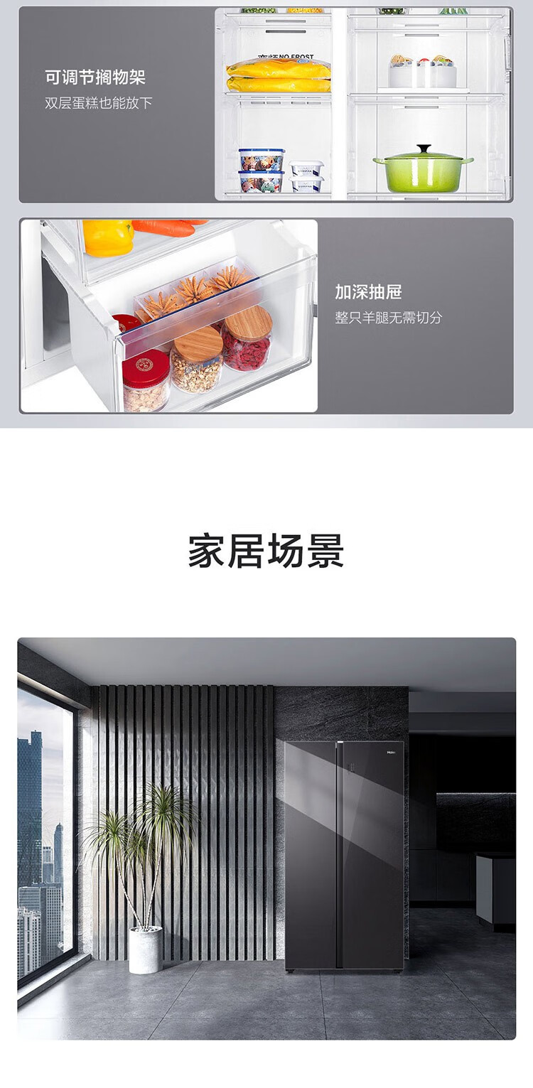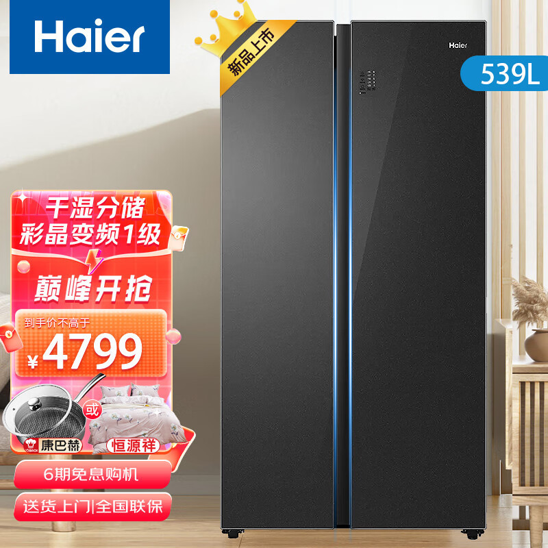 Haier 539 리터 반대쪽 도어 임베디드 냉장고 색상 크리스탈 레벨 1 주파수 변환 건식 및 습식 저장 BCD-539WGHSSE5SL스토어 가기