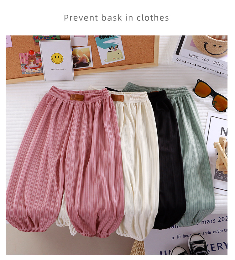 폭발적인 인기! 2026 아동용 여름 아이스 실크 모기 방지 바지 통기성 랜턴 팬츠 얇은 남아 여아 캐주얼 모기 방지 바지