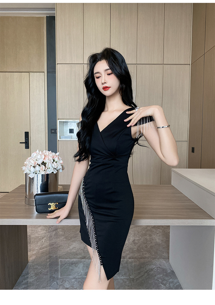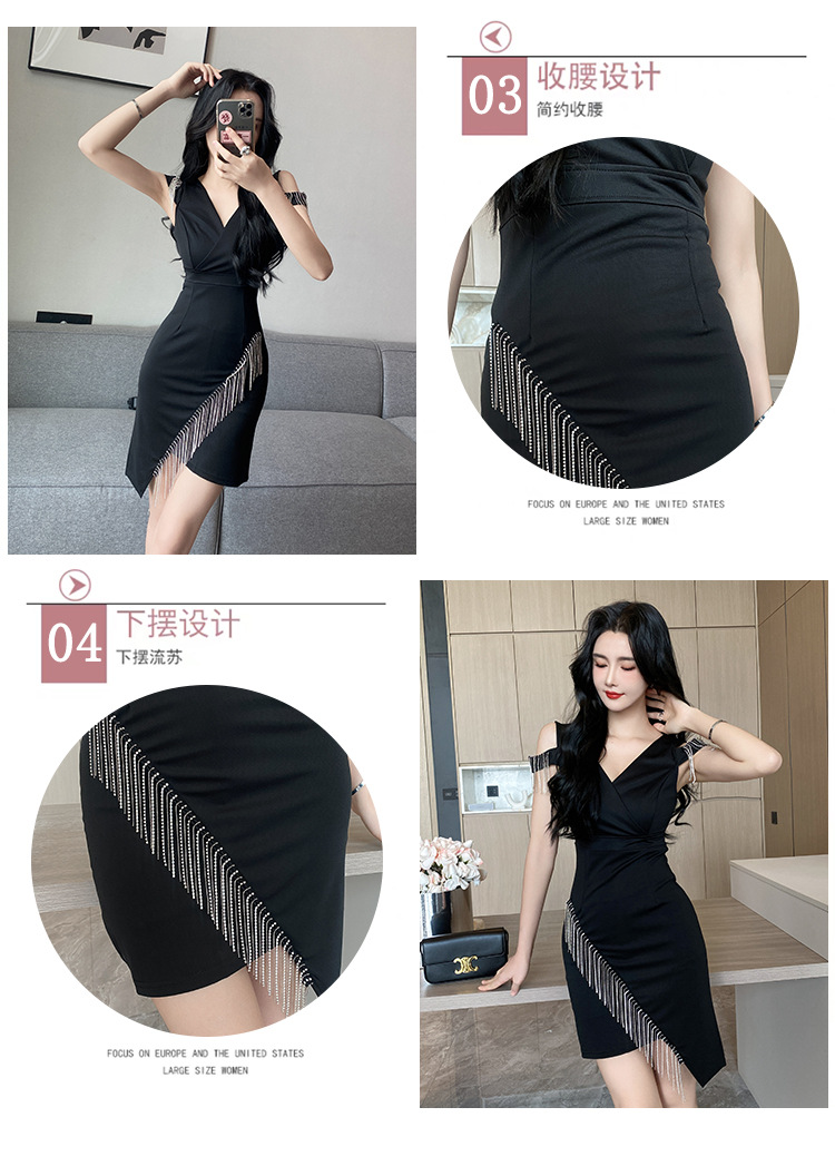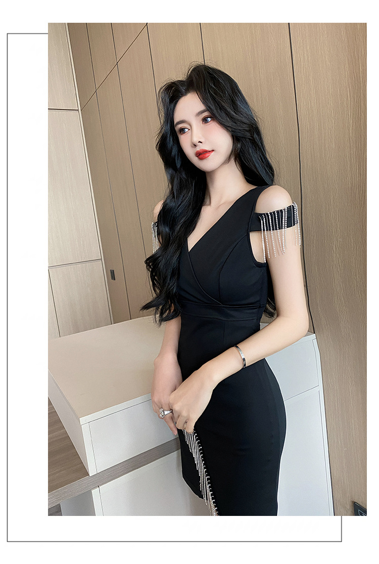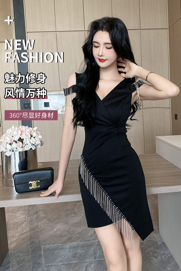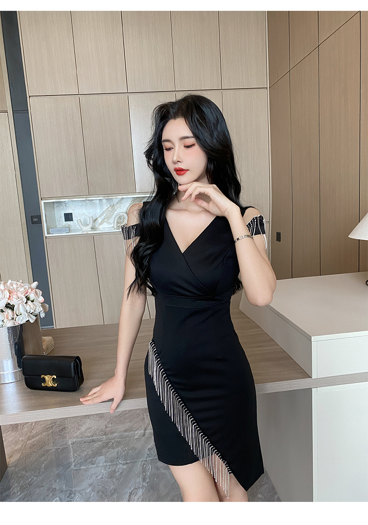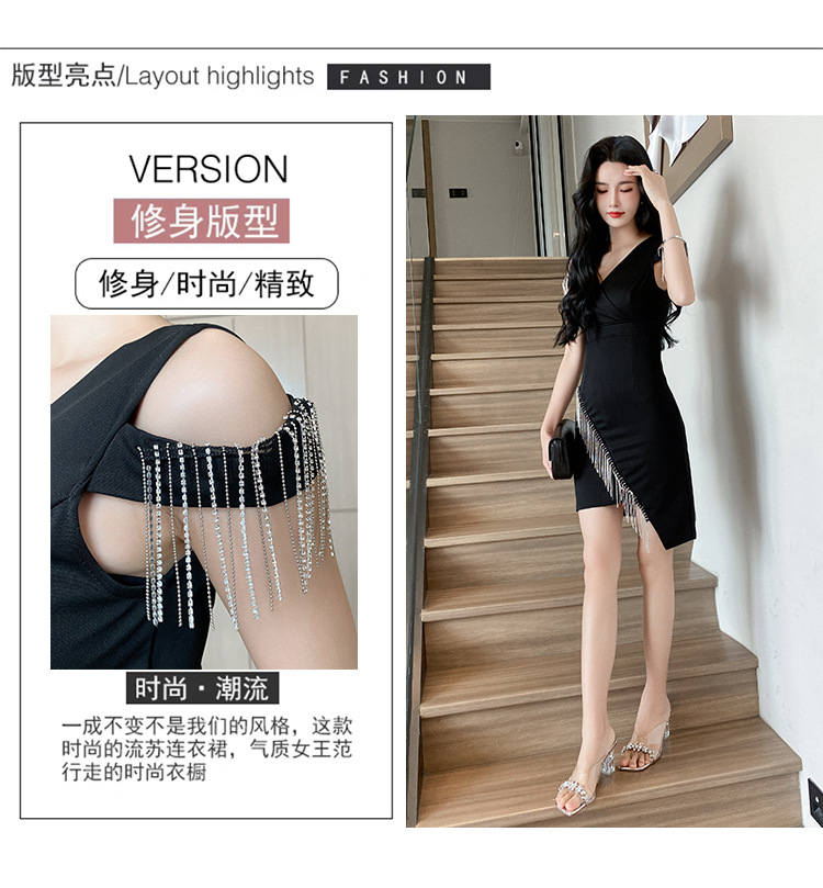 나이트클럽 딥 V 섹시 원피스 유니폼 여름 체인 술 슬림핏 슬리밍 나이트클럽 리틀 블랙 원피스 유혹스토어 가기