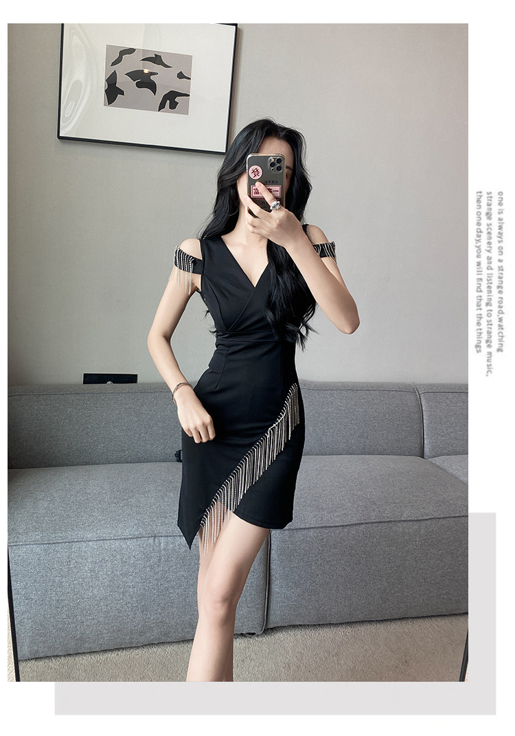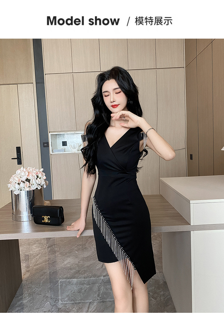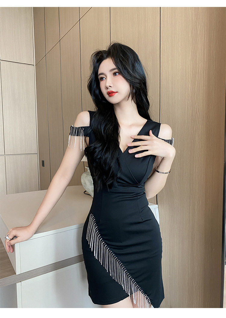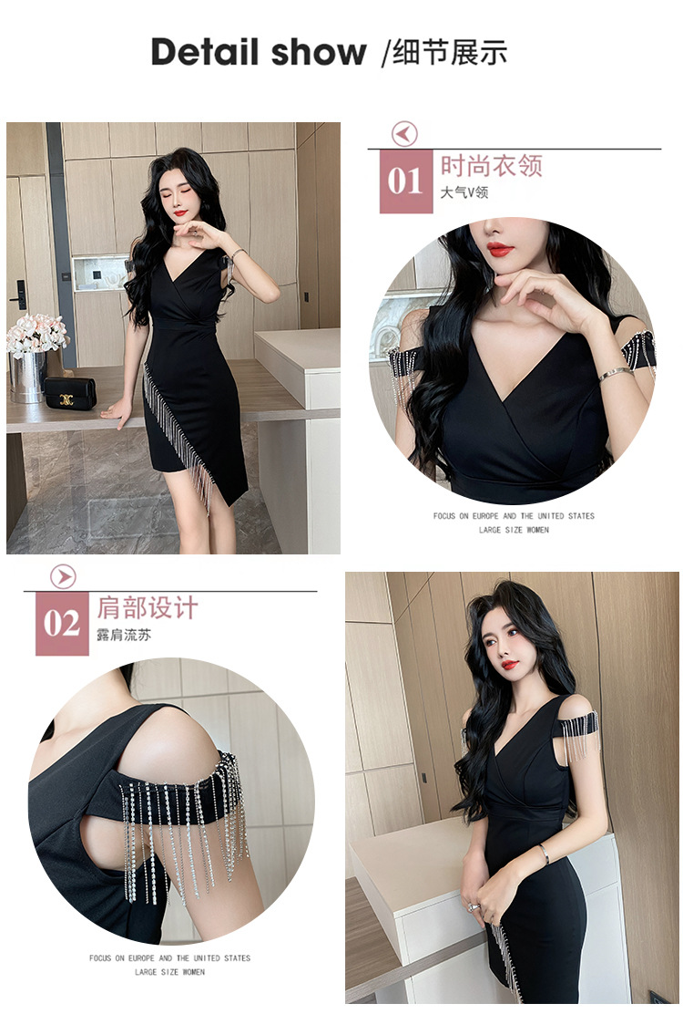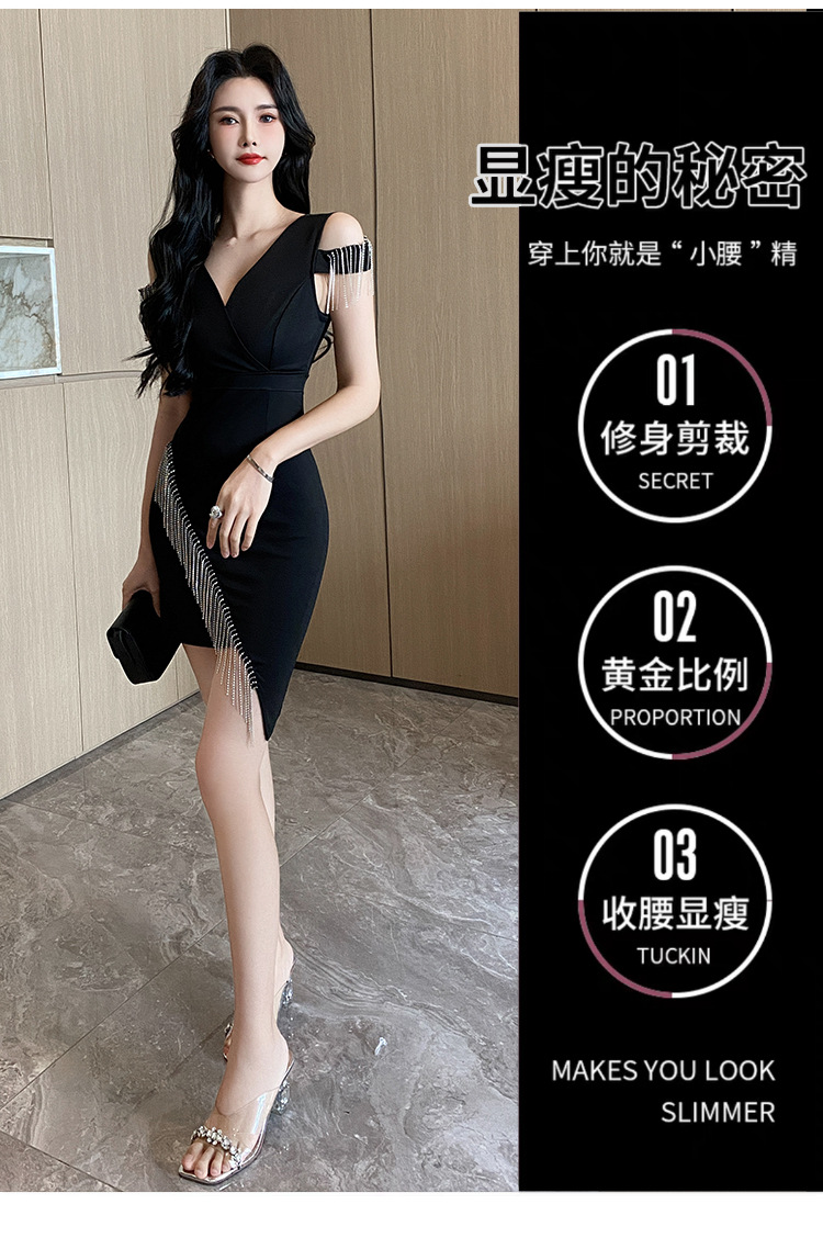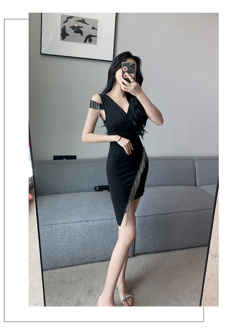 나이트클럽 딥 V 섹시 원피스 유니폼 여름 체인 술 슬림핏 슬리밍 나이트클럽 리틀 블랙 원피스 유혹스토어 가기