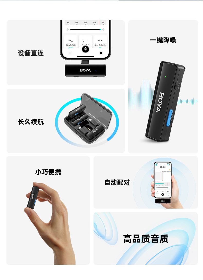 Boya BOYALINK 새로운 무선 칼라 클립 유형 라디오 마이크 휴대 전화 카메라 소음 감소 일대일 마이크스토어 가기