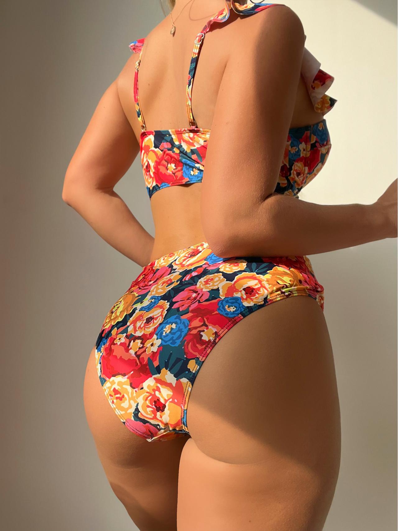 2023 새로운 끈이없는 수영복 유럽과 미국 인쇄 섹시한 비키니 대외 무역 패션 여성용 스플릿 폴리에스터 수영복