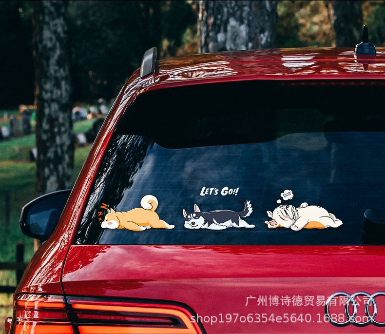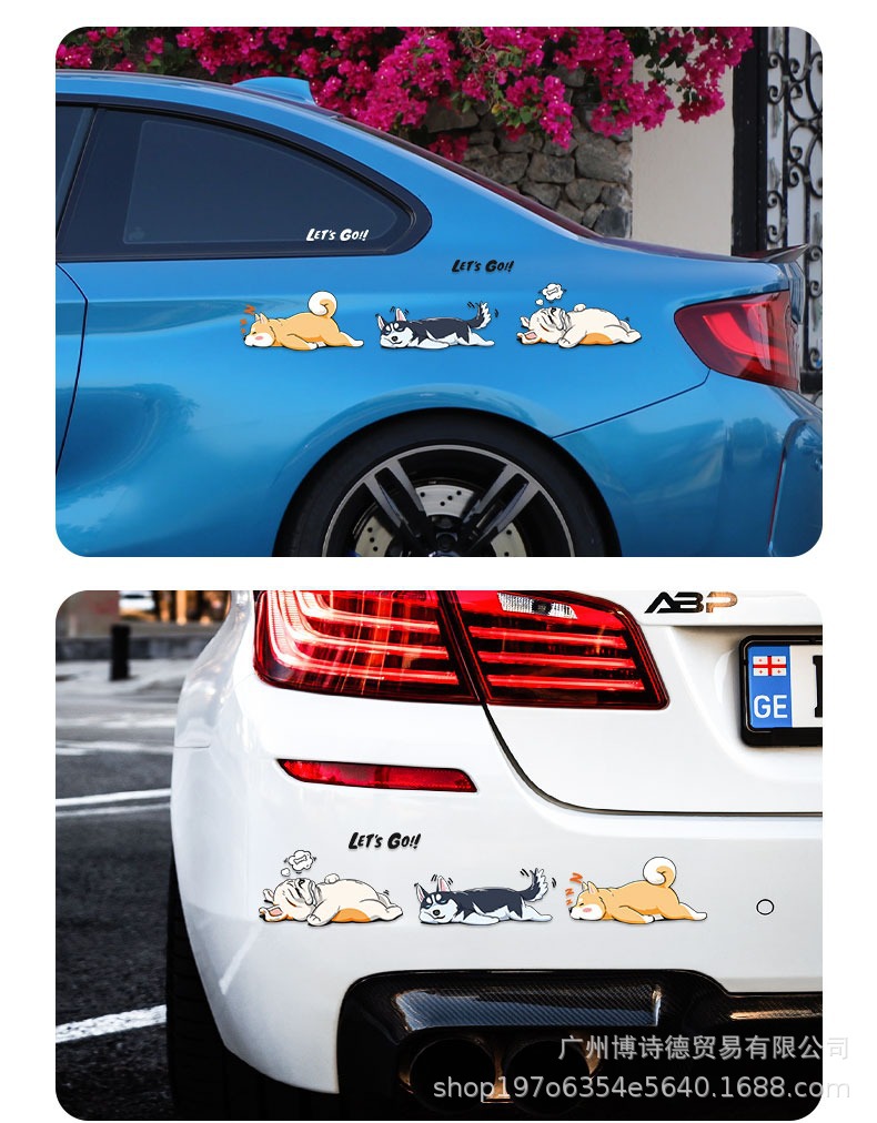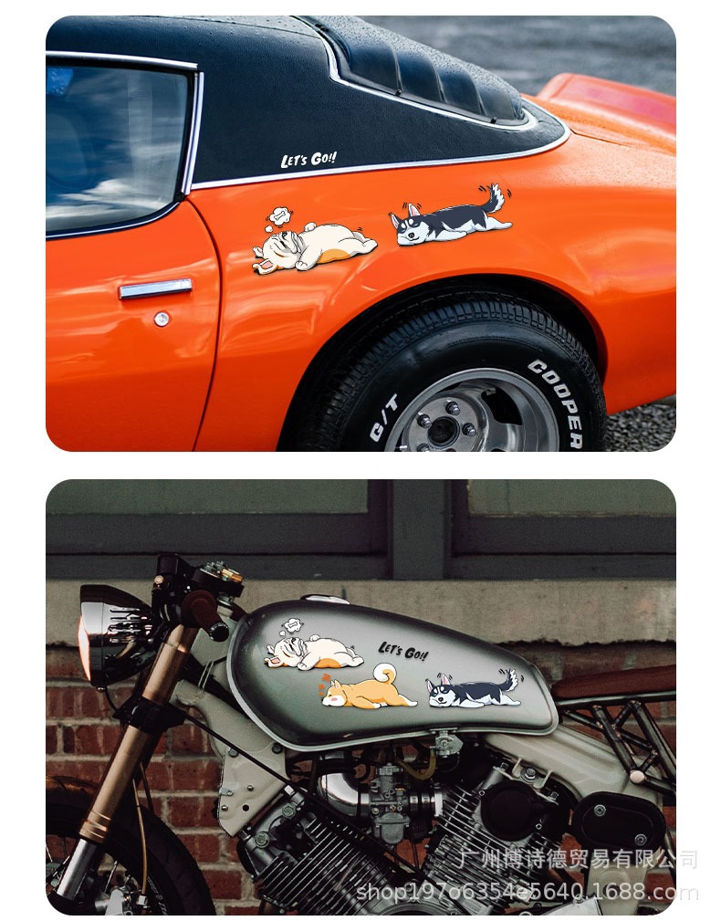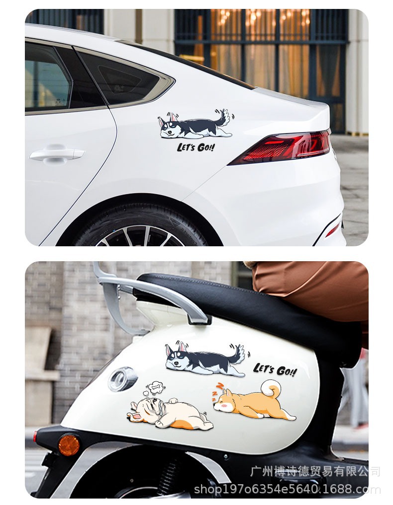 창조적 인 만화 재미 개 자동차 스티커 애완 동물 개 자동차 스티커 맞춤형 스크래치 차폐 전기 오토바이 자동차 스티커스토어 가기