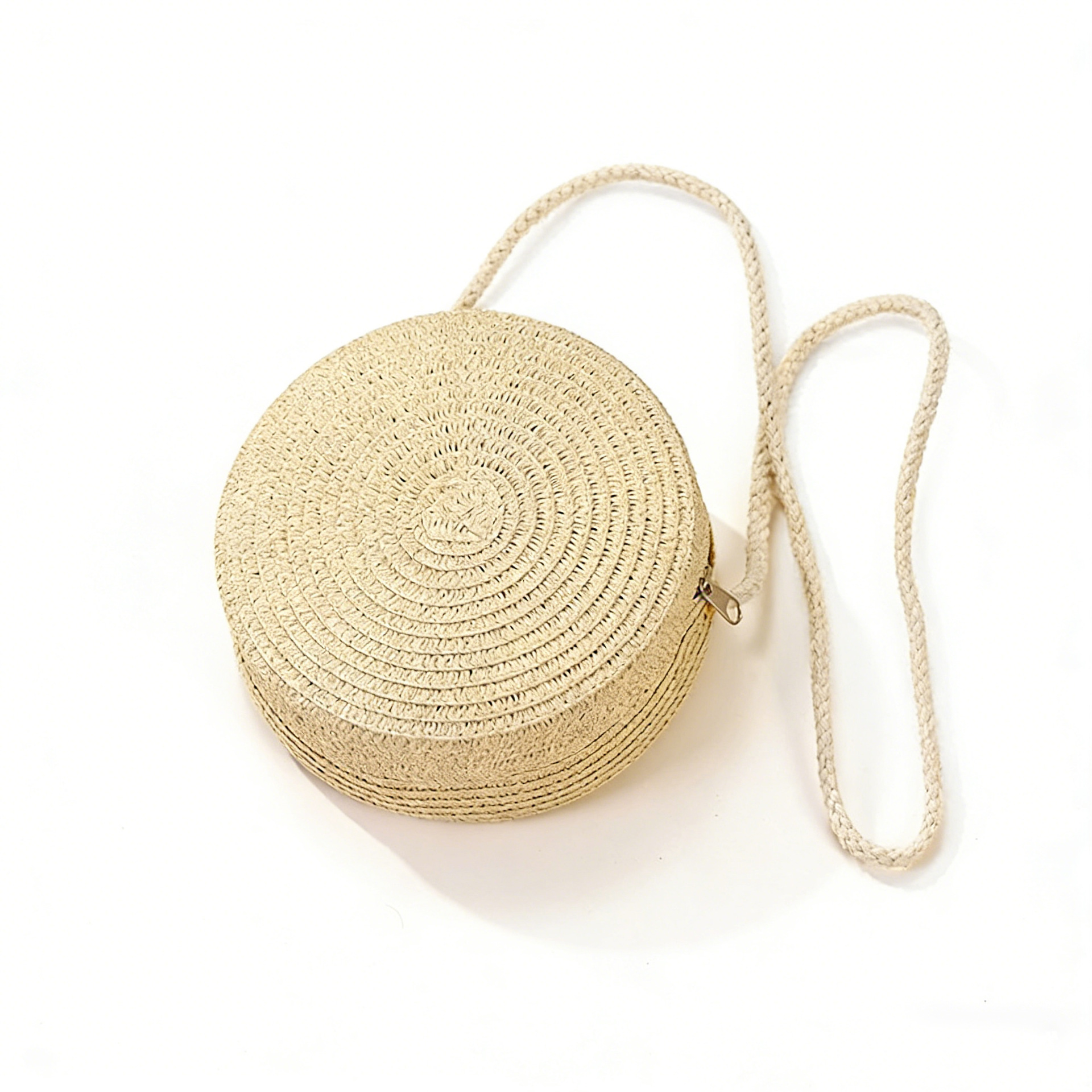 • 베이지 큰 둥근 가방 (15*7cm)