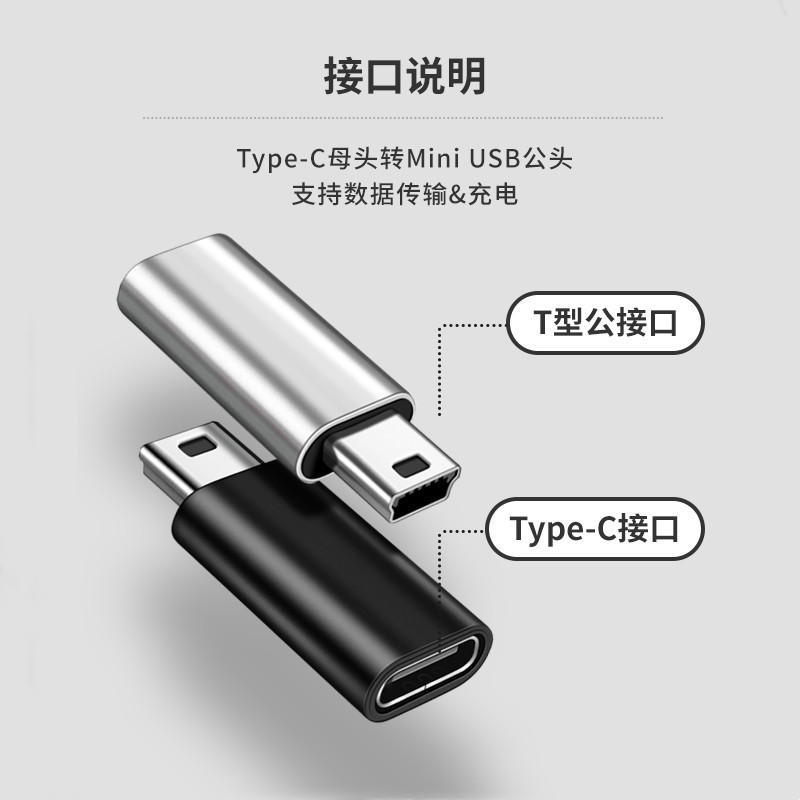 [快速简单]:通过标准 Type-c 电缆连接,为 Mini USB 设备充电和数据同步。