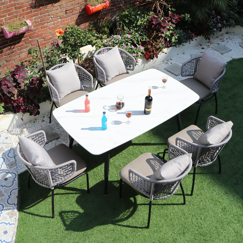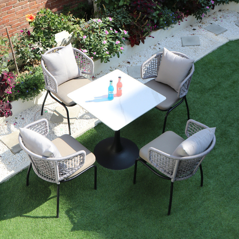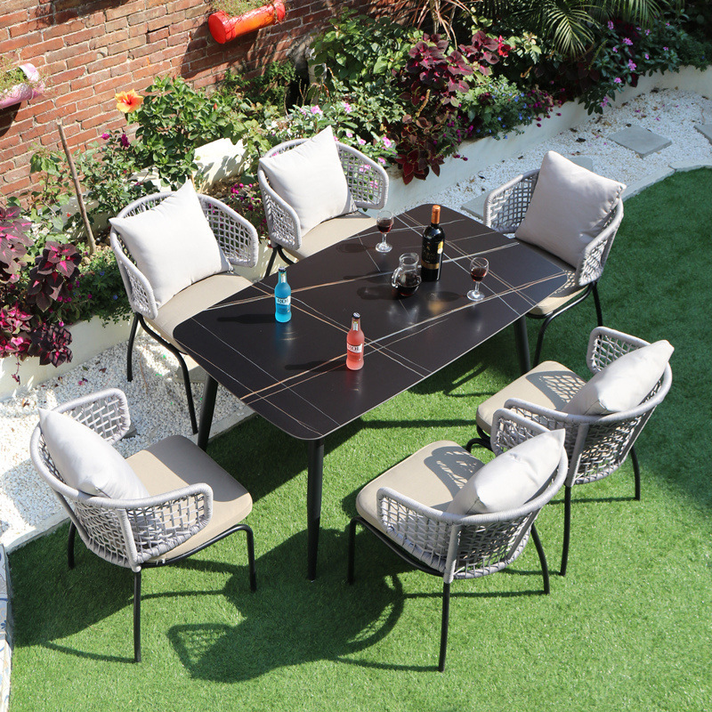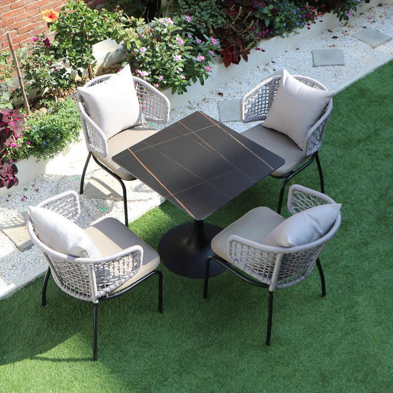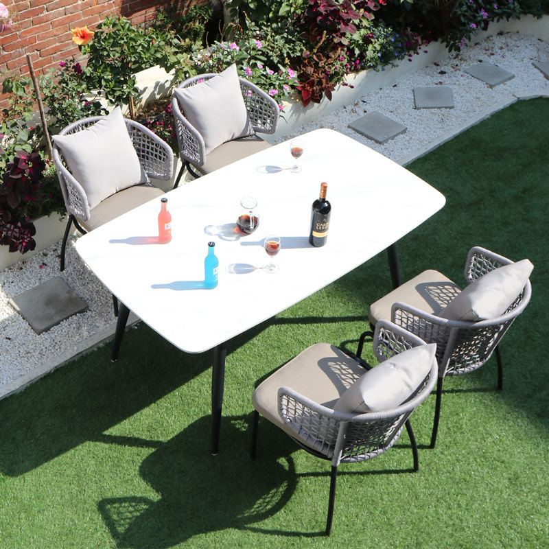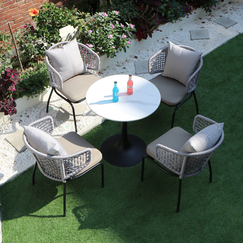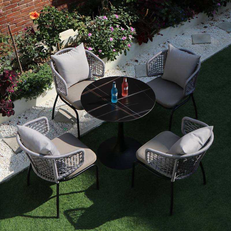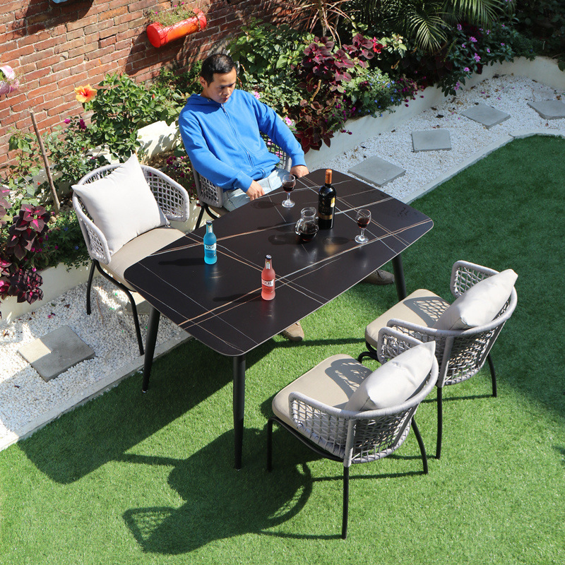 심플한 야외 테이블과 의자, 등나무 의자, 긴 테이블, 원형 테이블, 안뜰 정원, 석판 조합, 등나무 식탁, 레저 야외 안뜰스토어 가기