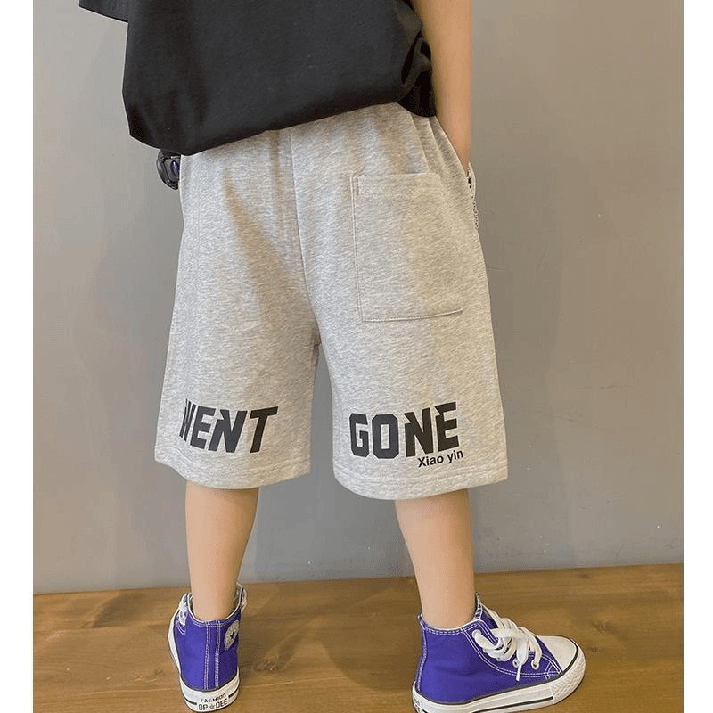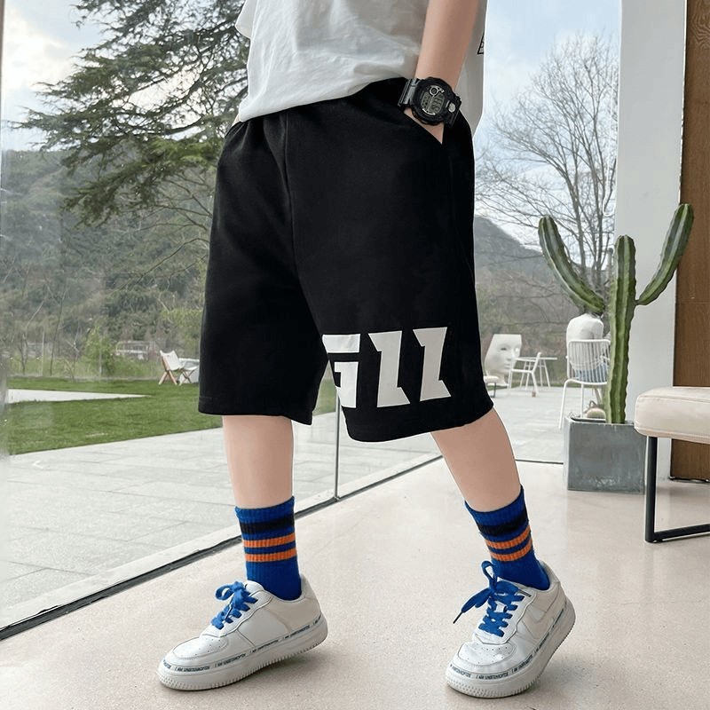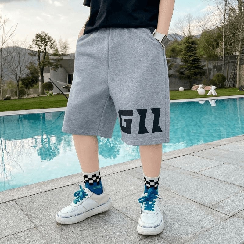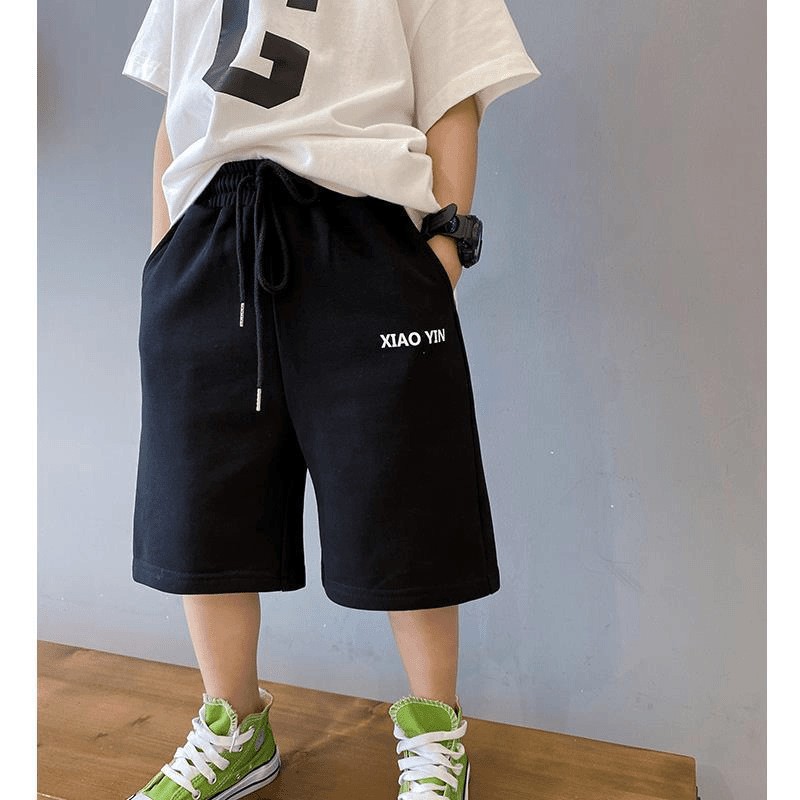 220 그램의 순수한면 소년 스포츠 반바지 여름 아동복 얇은 서양식 중대형 어린이 5 포인트 프린트 바지 편지