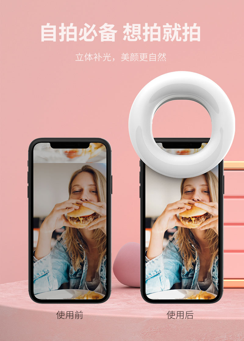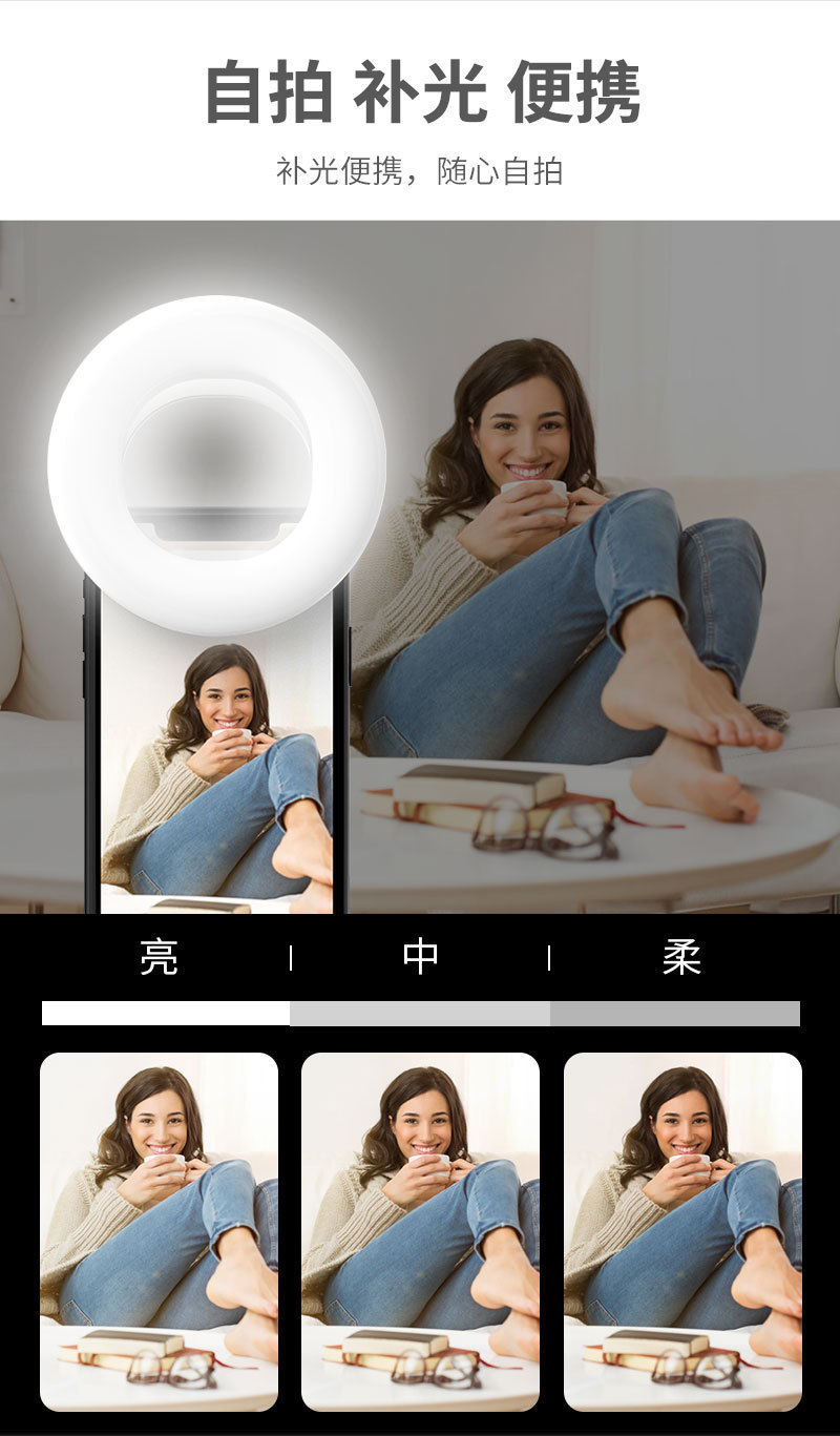 휴대 전화 필 라이트 라운드 링 뷰티 라이트 라이브 촬영 휴대용 미니 충전식 셀카 LED 플래시스토어 가기