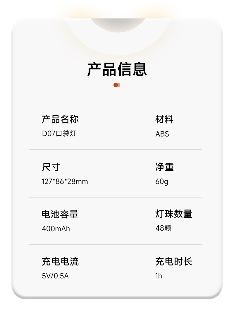 • D02/D03 = 충전 케이블이없는 LED 램프 (흰색)