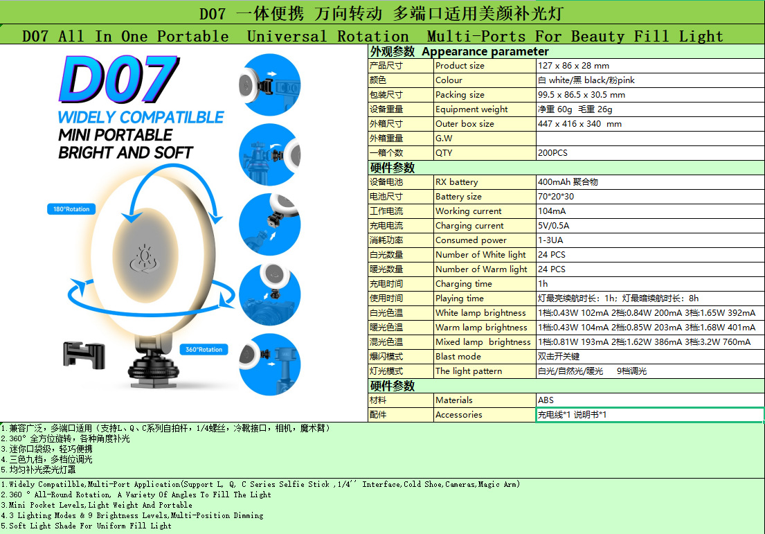 • 액세서리 RK12 휴대폰 뷰티 라이트