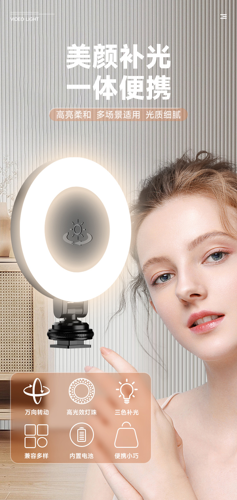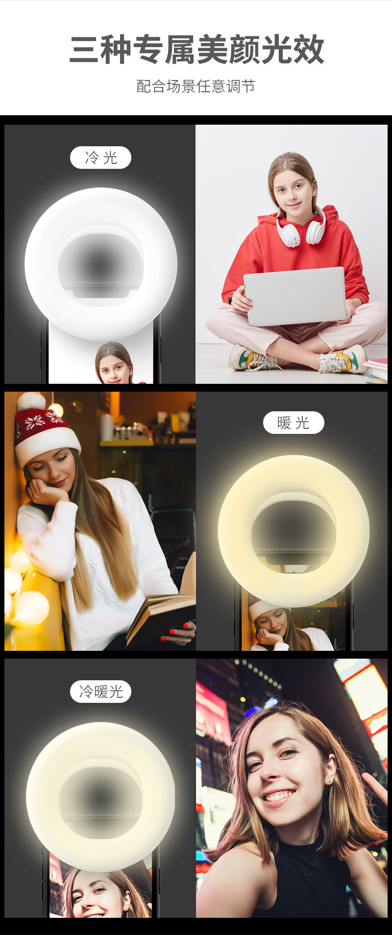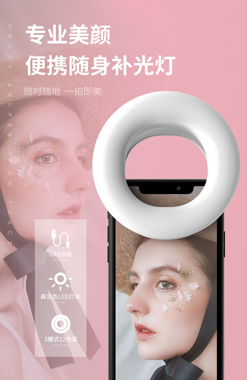 휴대 전화 필 라이트 라운드 링 뷰티 라이트 라이브 촬영 휴대용 미니 충전식 셀카 LED 플래시
