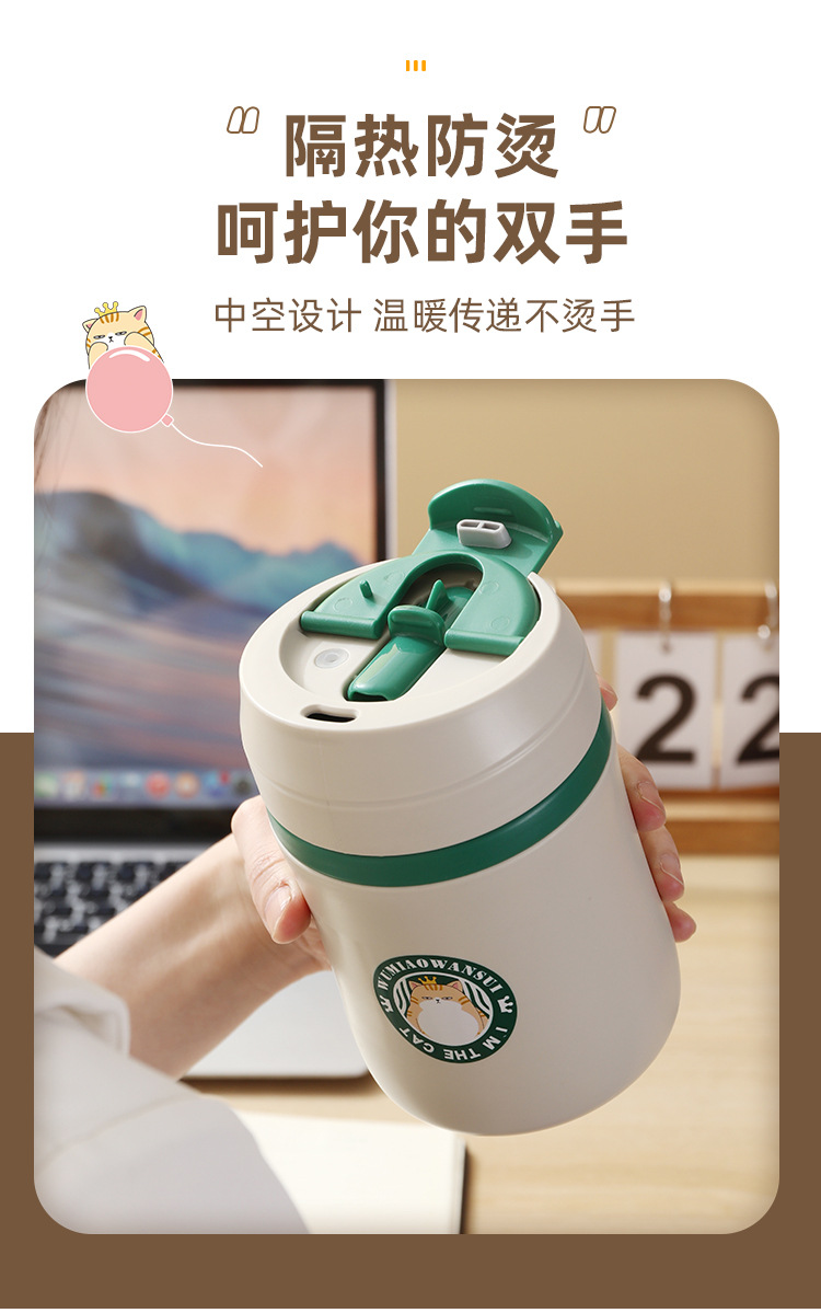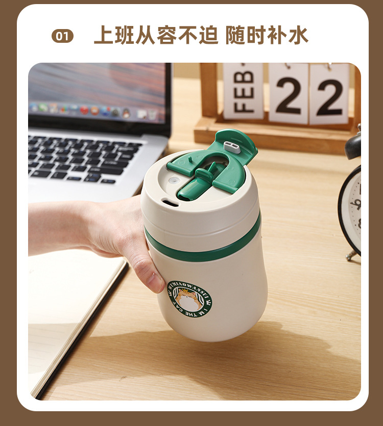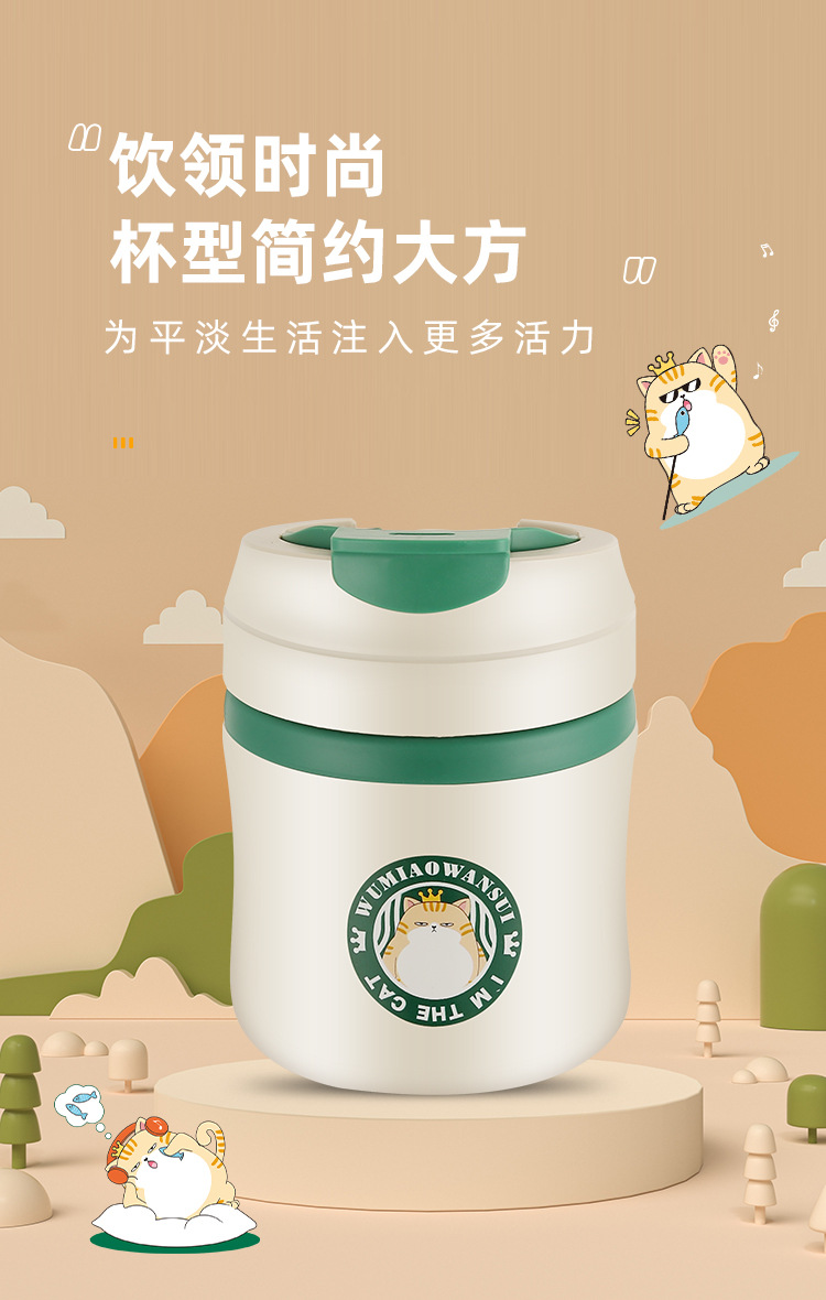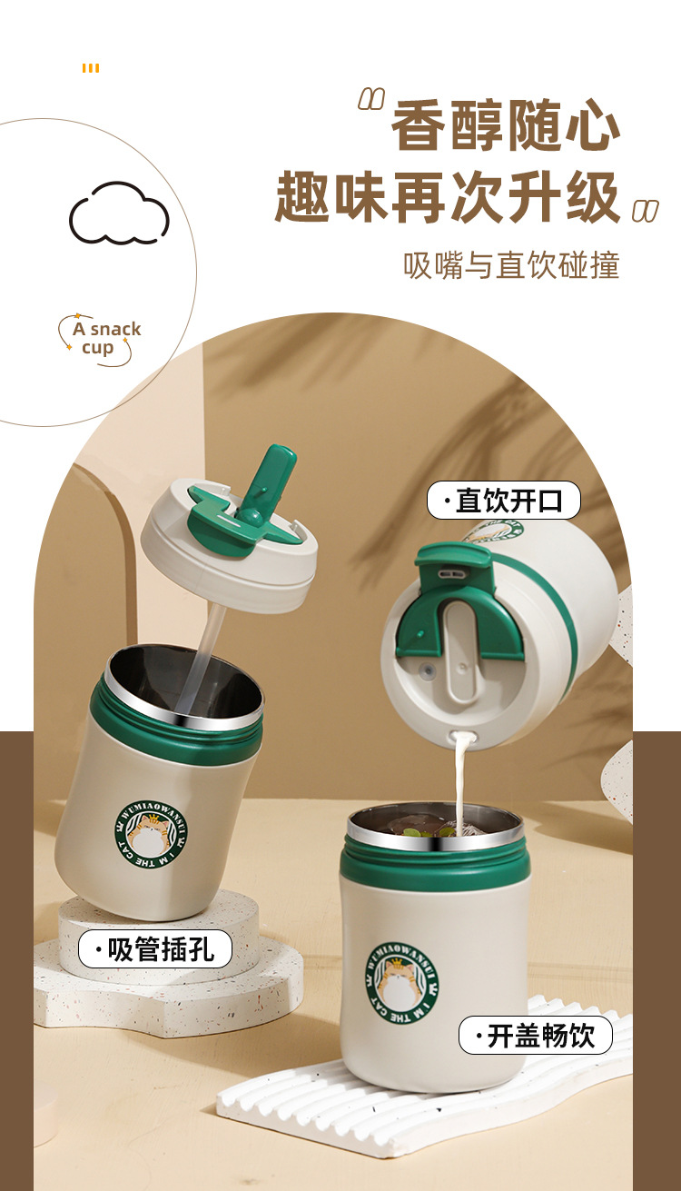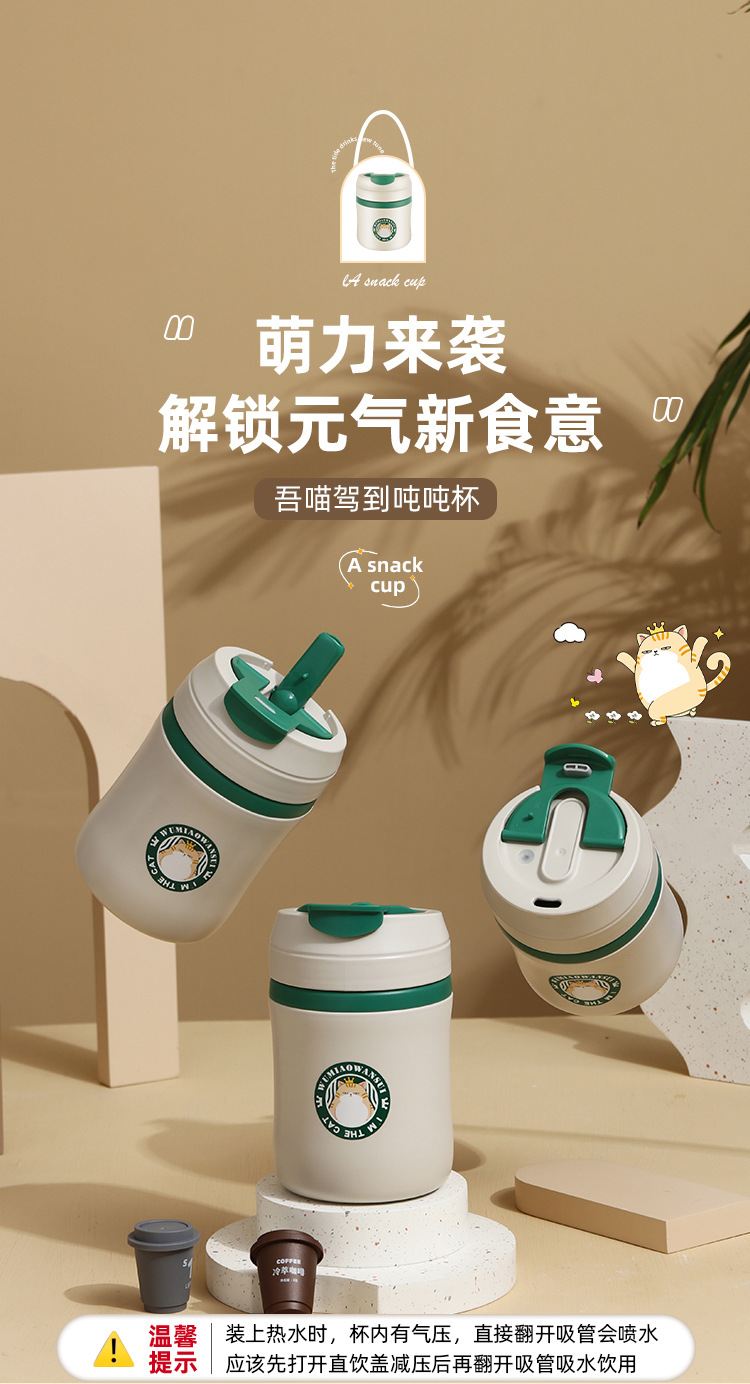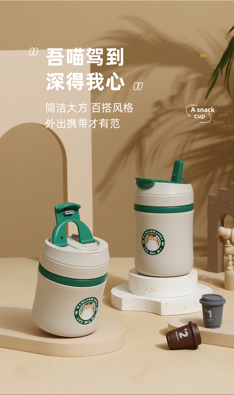 공장 직접 공급 공동 브랜드 Wu Miao 톤 컵 핸디 컵 휴대용 밀짚 컵 커피 보온병 컵스토어 가기