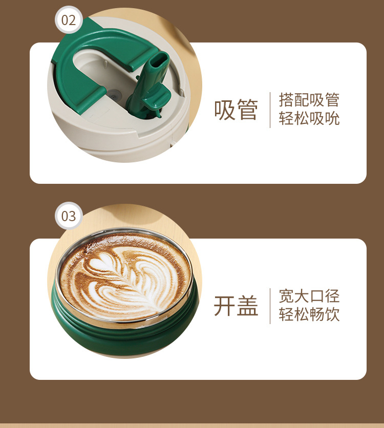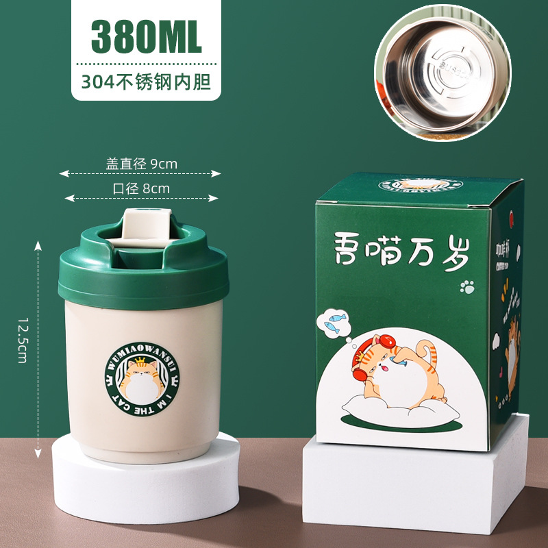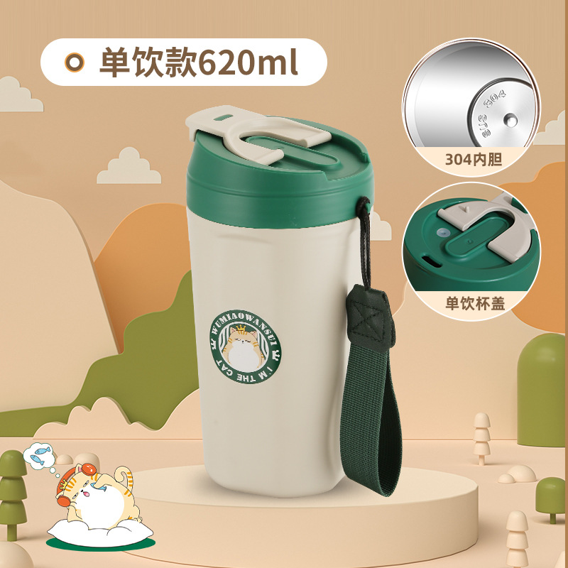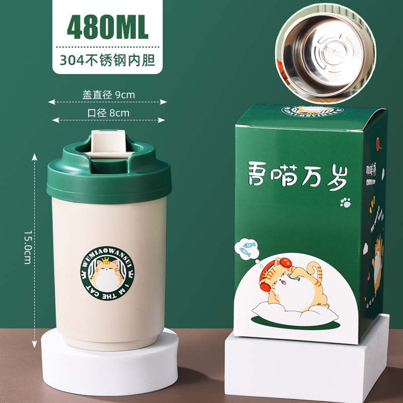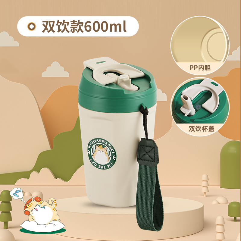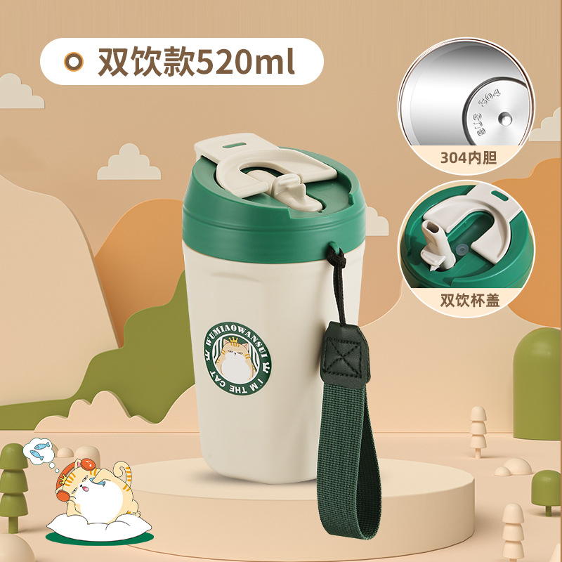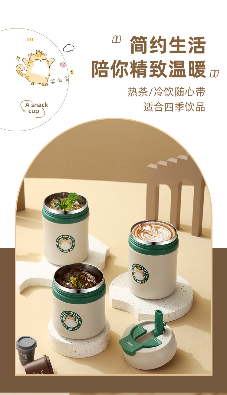 공장 직접 공급 공동 브랜드 Wu Miao 톤 컵 핸디 컵 휴대용 밀짚 컵 커피 보온병 컵스토어 가기
