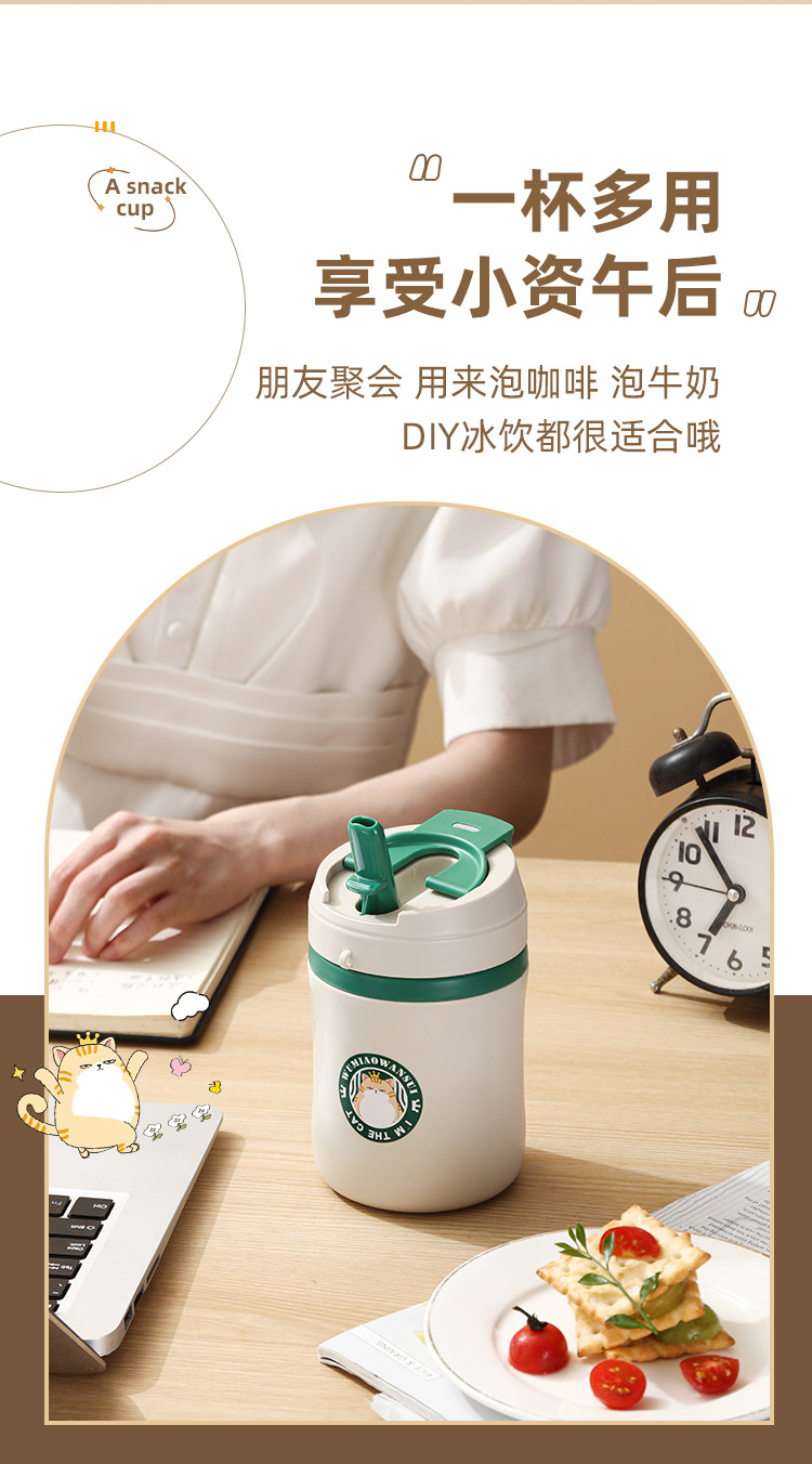 공장 직접 공급 공동 브랜드 Wu Miao 톤 컵 핸디 컵 휴대용 밀짚 컵 커피 보온병 컵