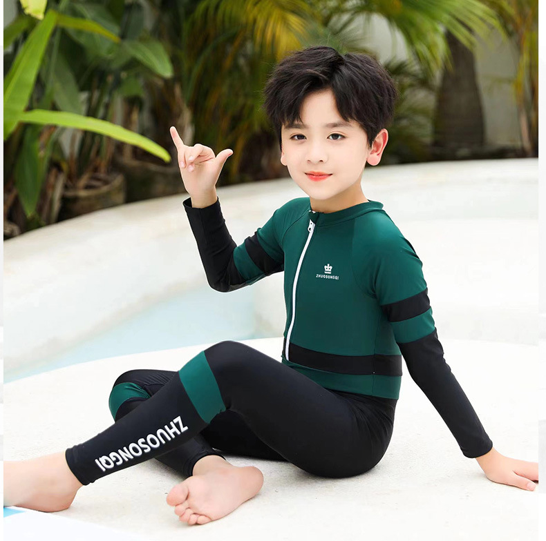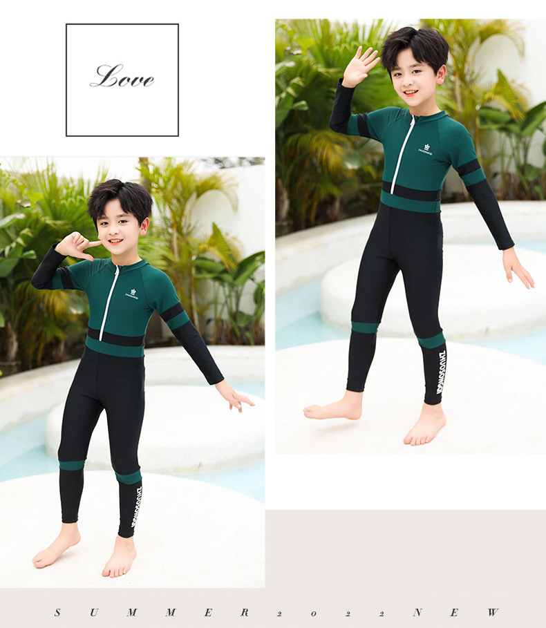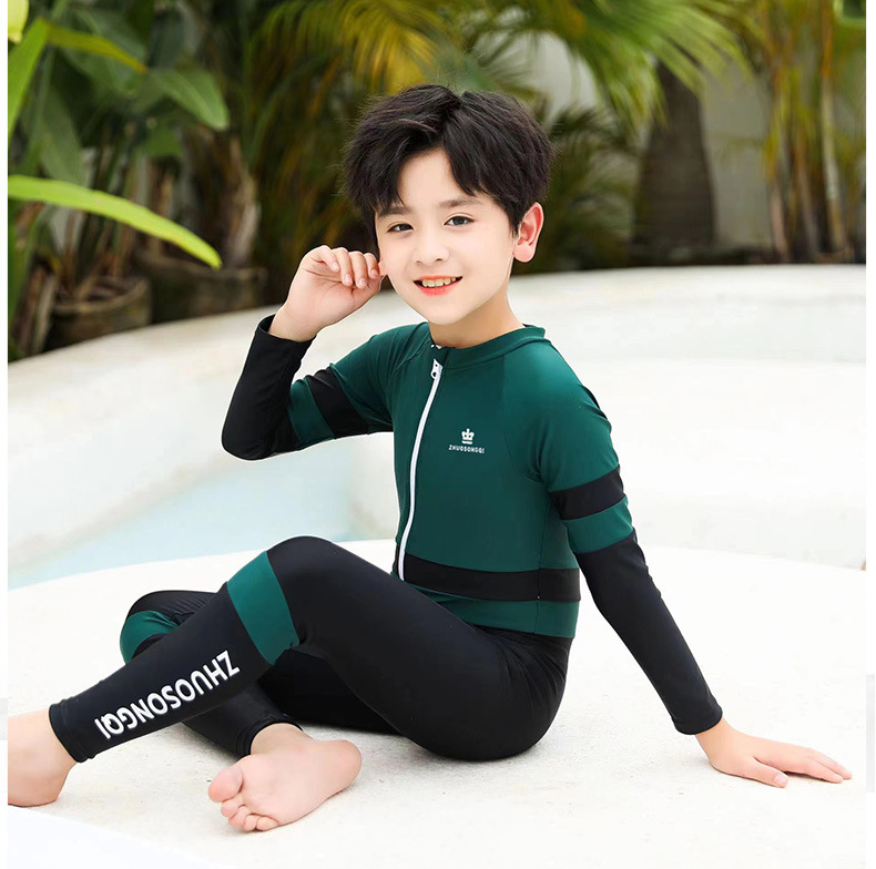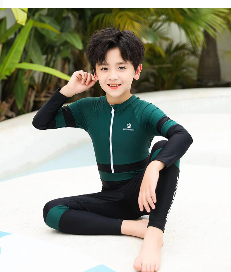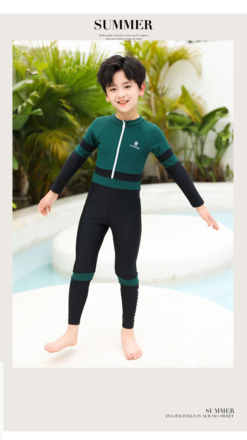 어린이 자외선 차단제 수영복 긴팔 스쿠버 세트 소년 원피스 수영복 중대형 어린이 수영복 속건 해파리 다이빙 세트