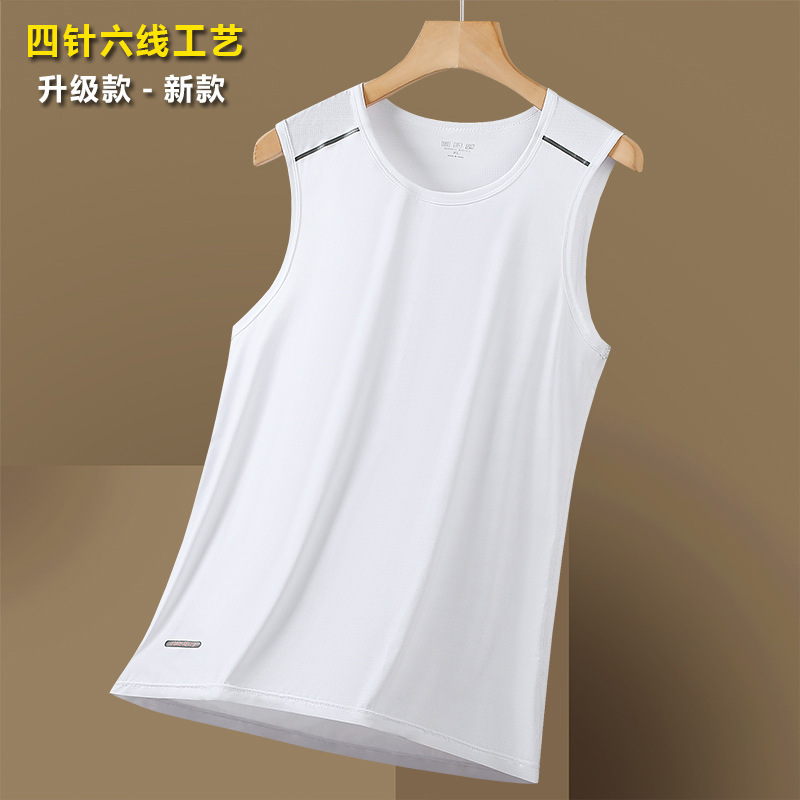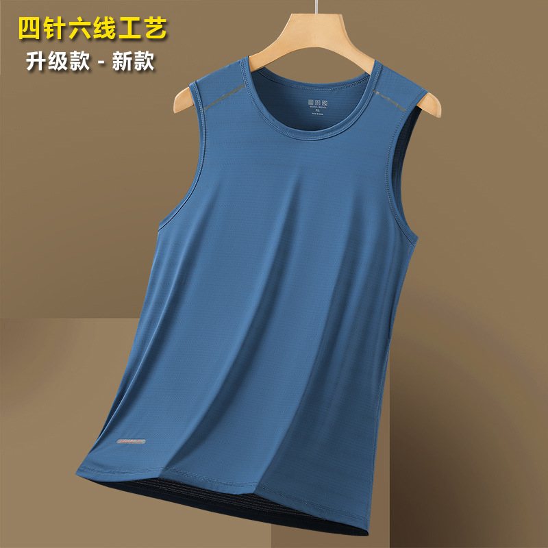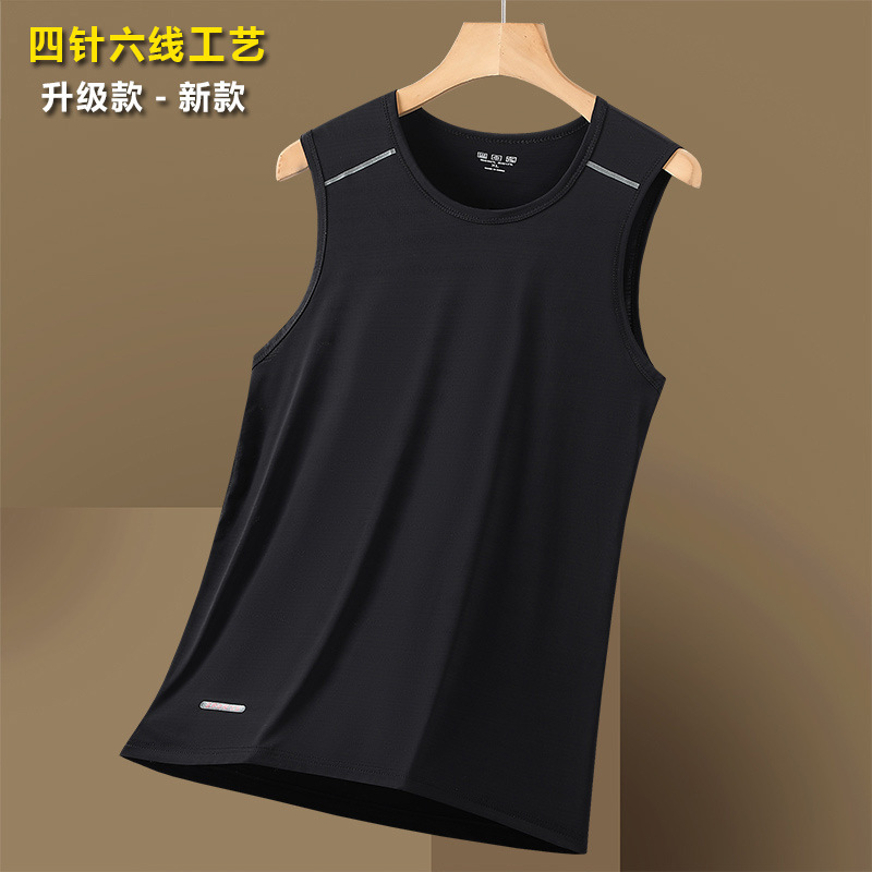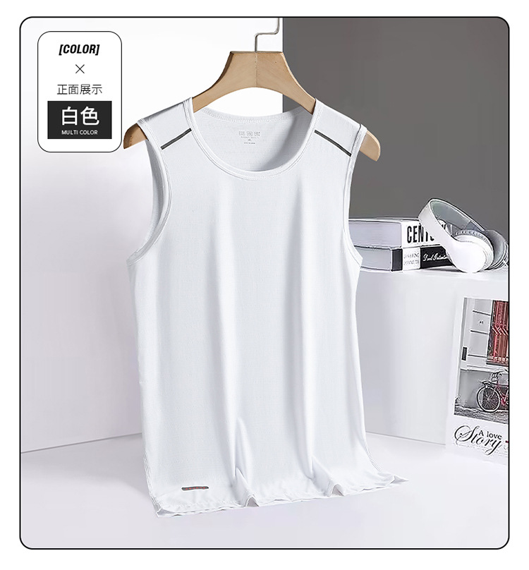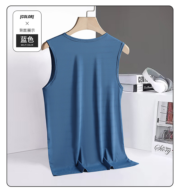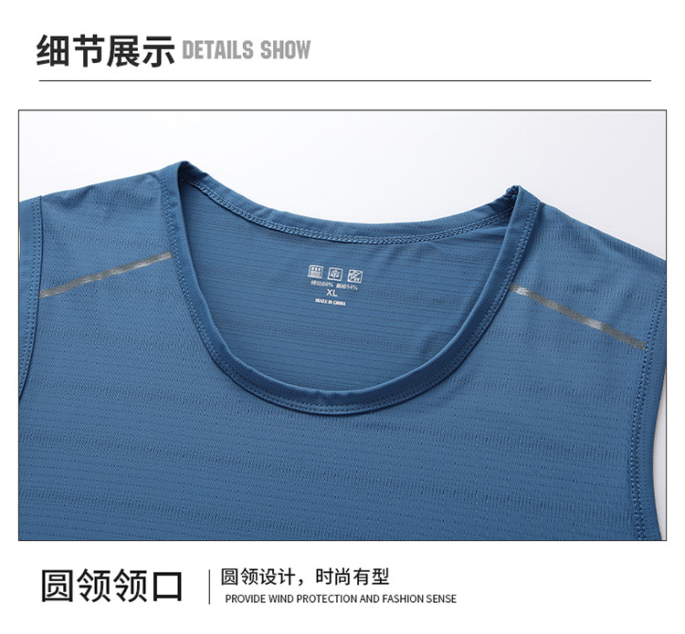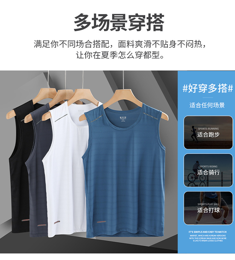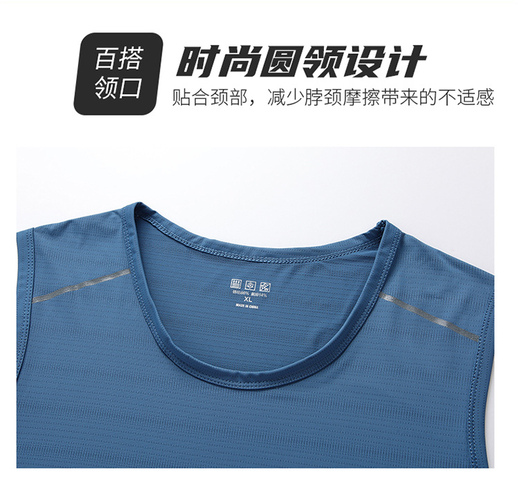 여름용 속건성 통기성 민소매 땀흡수 트레이닝 피트니스 의류 남성용 프린트 신축성 있는 대형 사이즈 라운드넥 아이스 실크 조끼 속건성스토어 가기