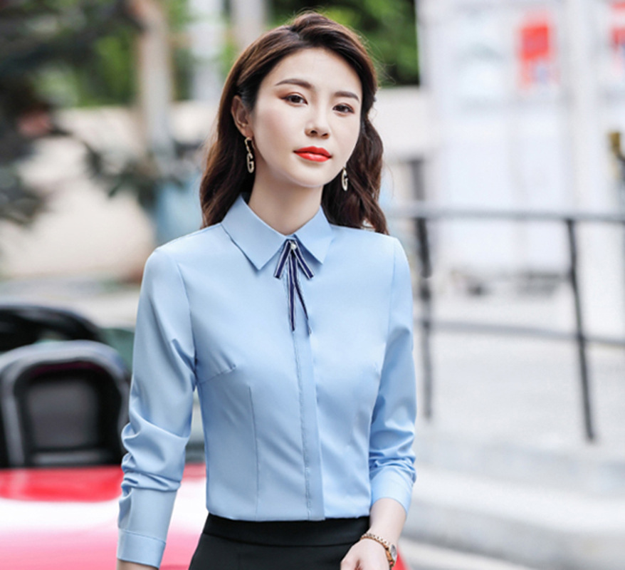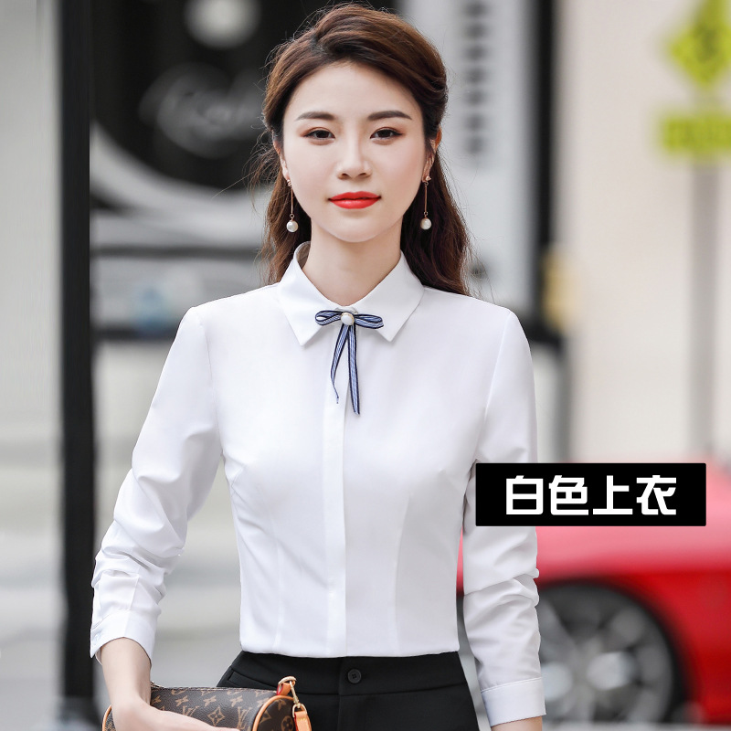 2021 통근 흰색 셔츠 여성의 작업복 정장 원피스 전문 슬림핏 라펠 한국 스타일 긴팔 셔츠 여성 원피스스토어 가기