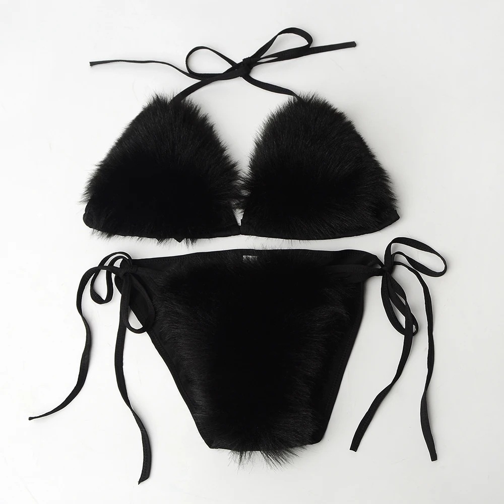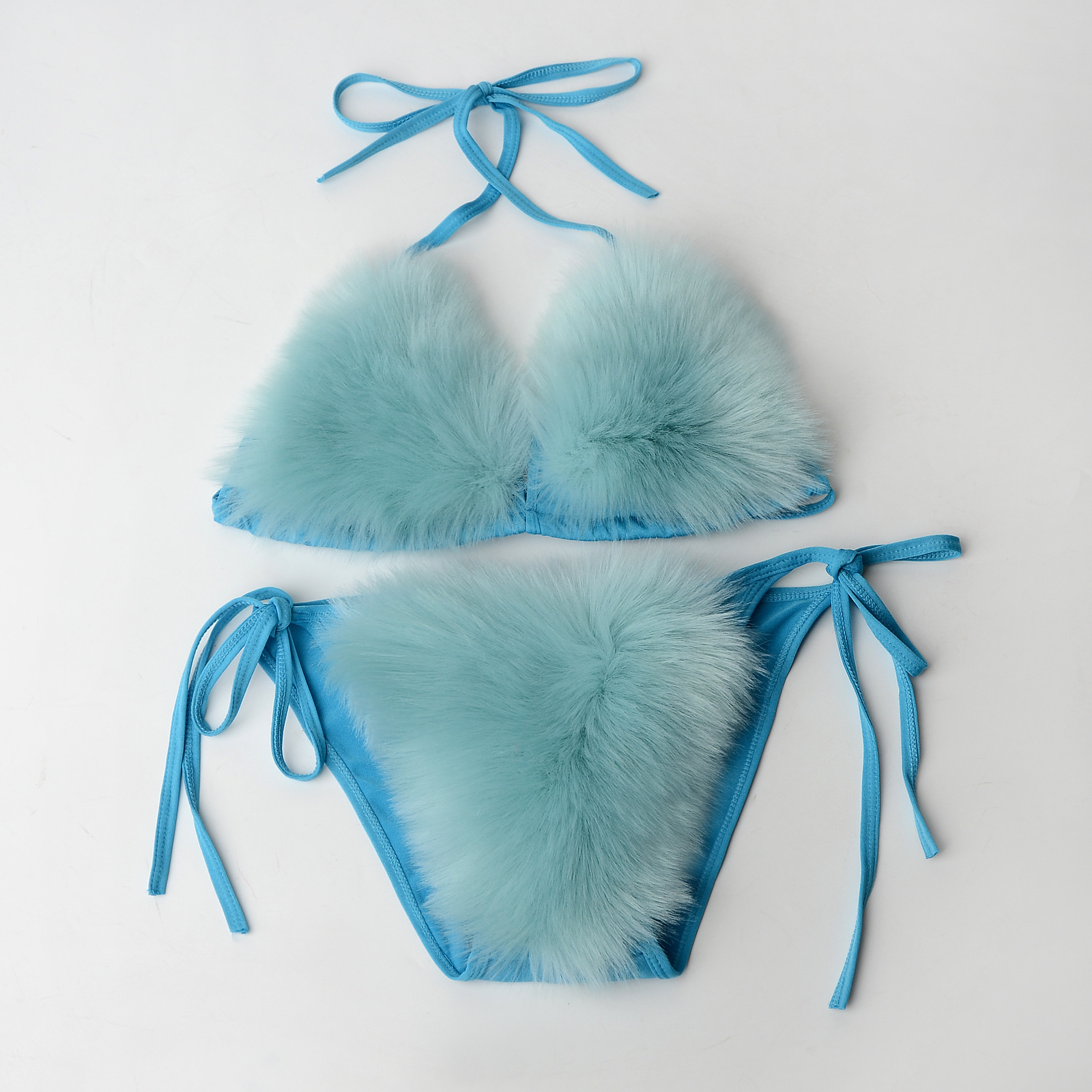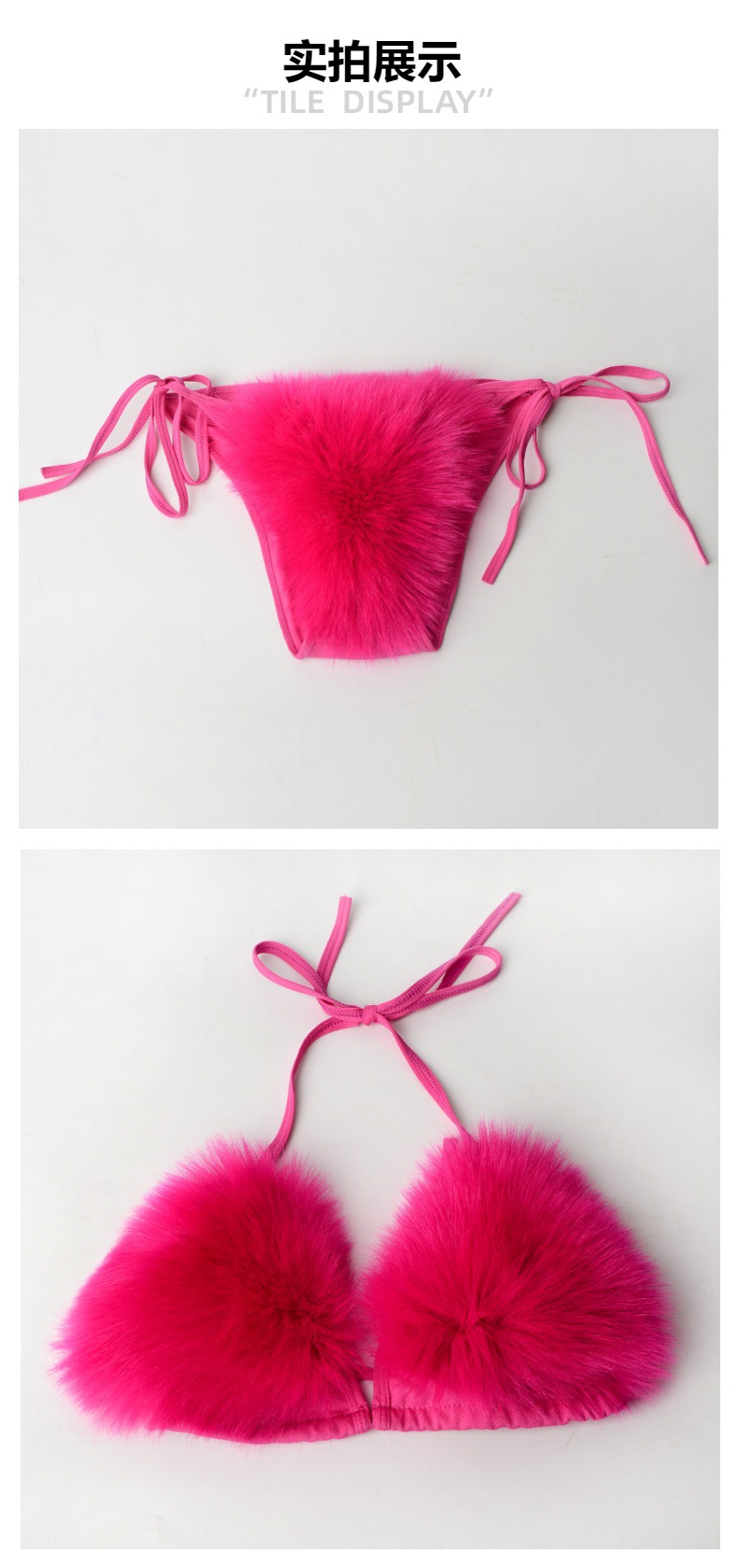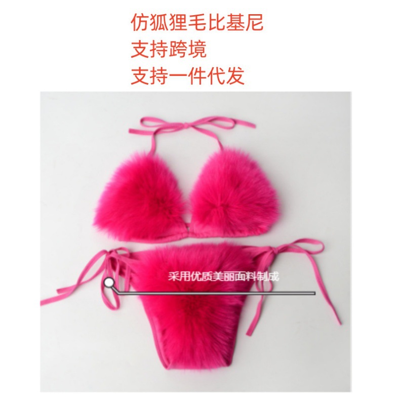 대외 무역 새로운 국경 솔리드 컬러 모피 여성 비키니 모피 수영복 플러시 스포츠 수영복 배송 준비 완료스토어 가기