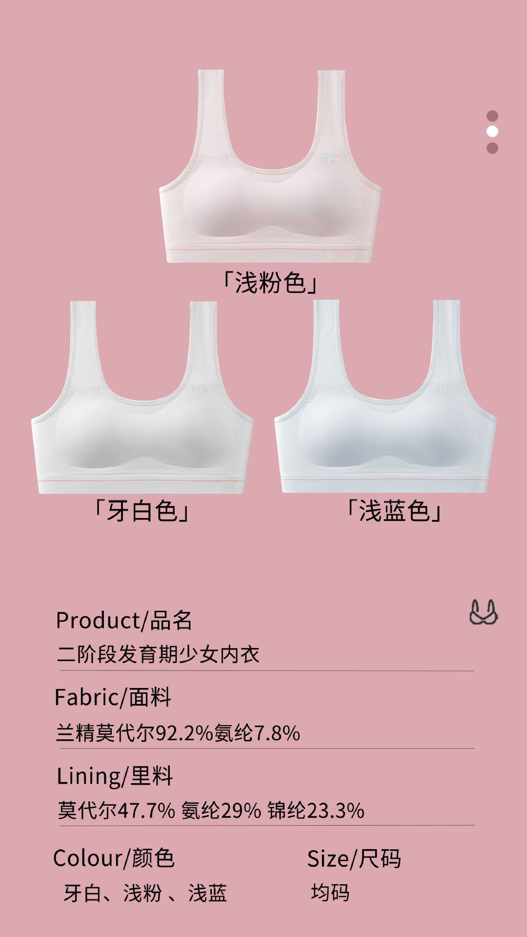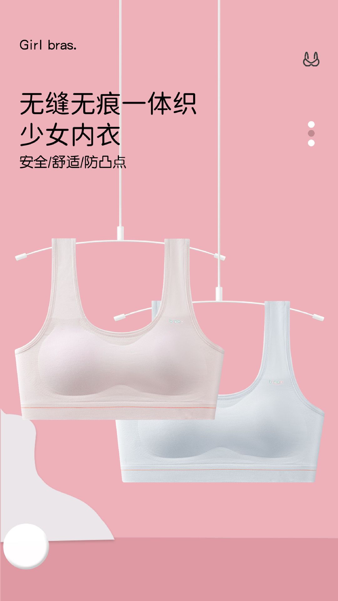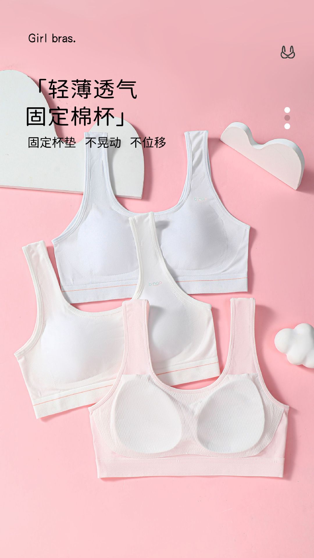 모달 중, 고등학생 발달기 속옷 여아용 볼록 방지 심리스 누드 고정컵 여아용 브라 여름스토어 가기