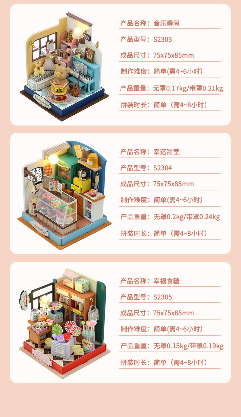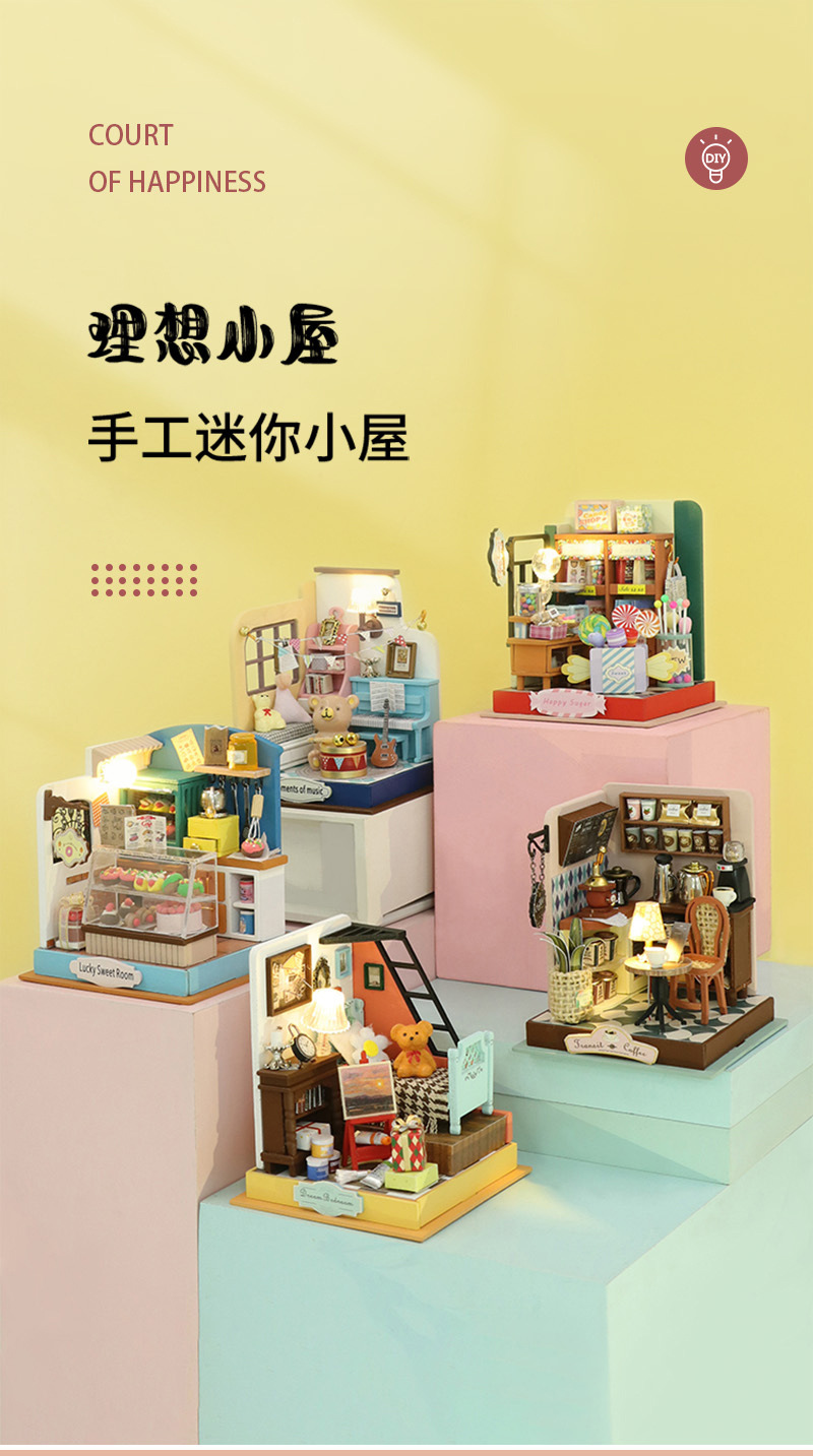 DIY 오두막 장식품 3D 수제 미니 하우스 조립 크리에이티브 퍼즐 홍다 모델 하우스 비 석공스토어 가기