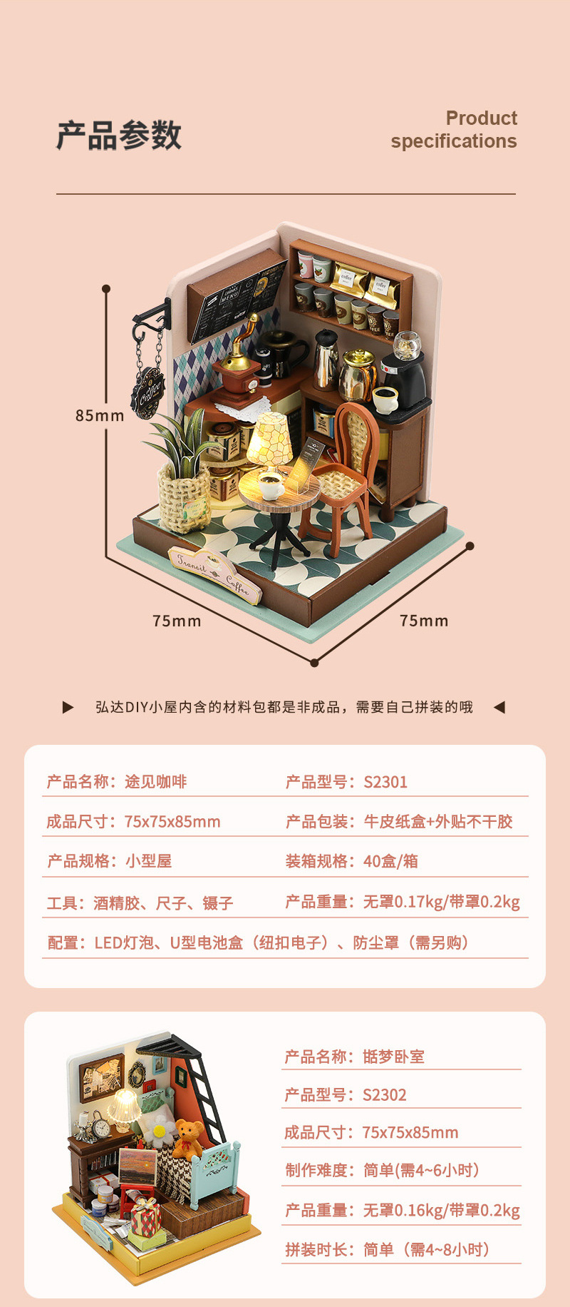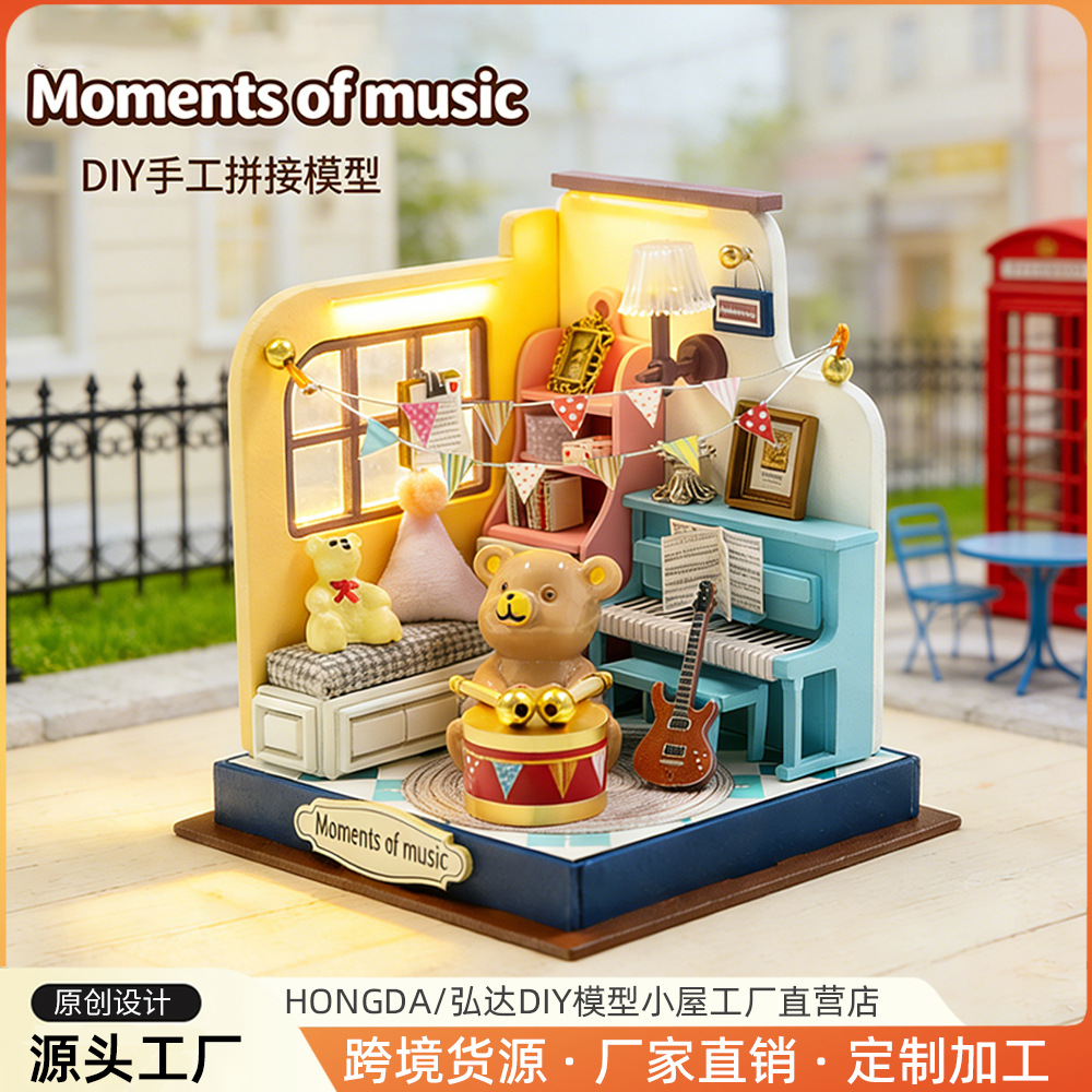 DIY 오두막 장식품 3D 수제 미니 하우스 조립 크리에이티브 퍼즐 홍다 모델 하우스 비 석공