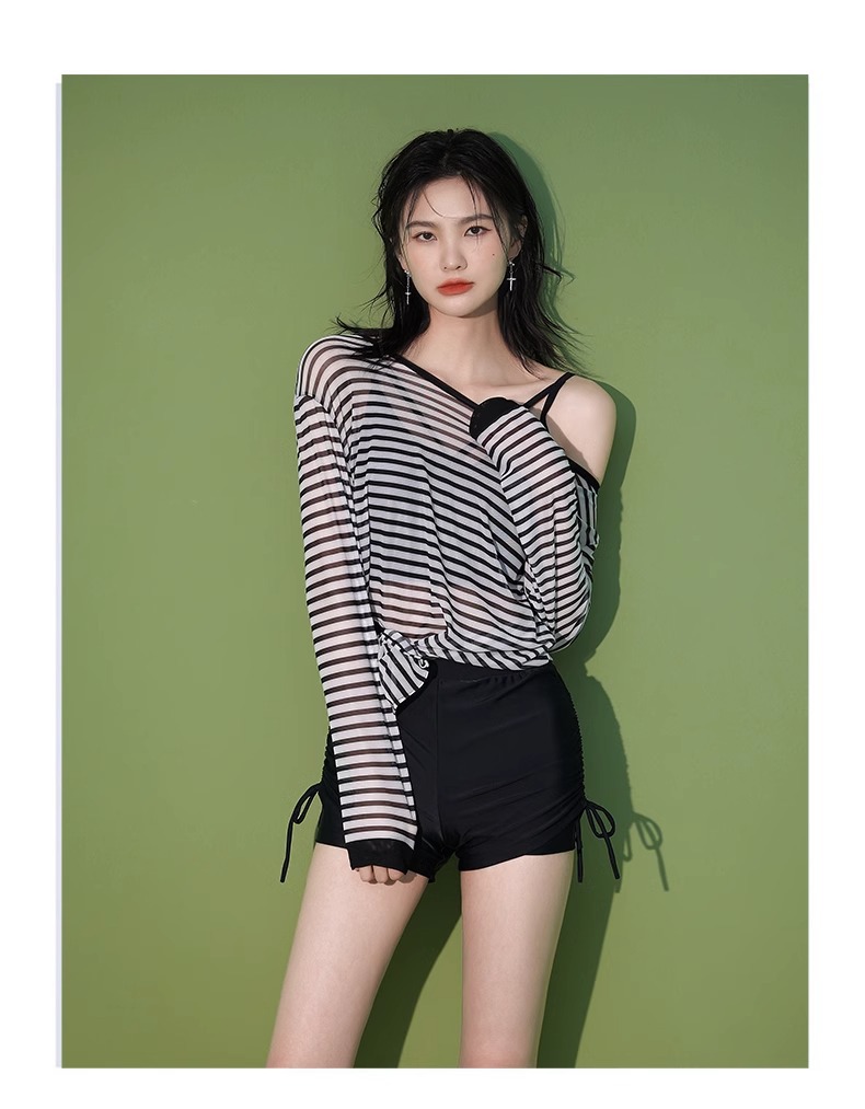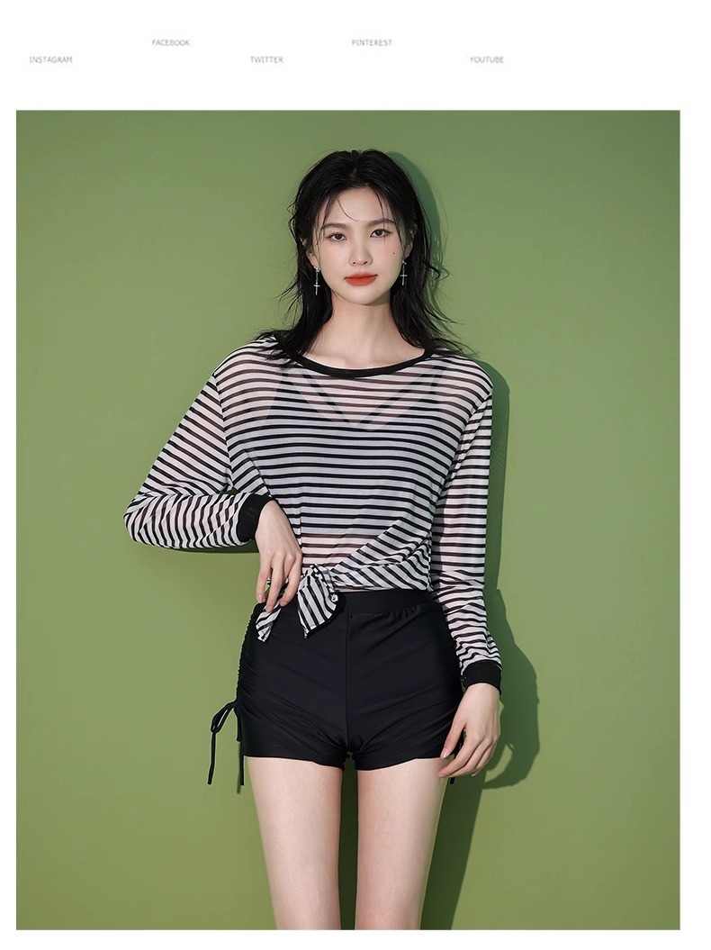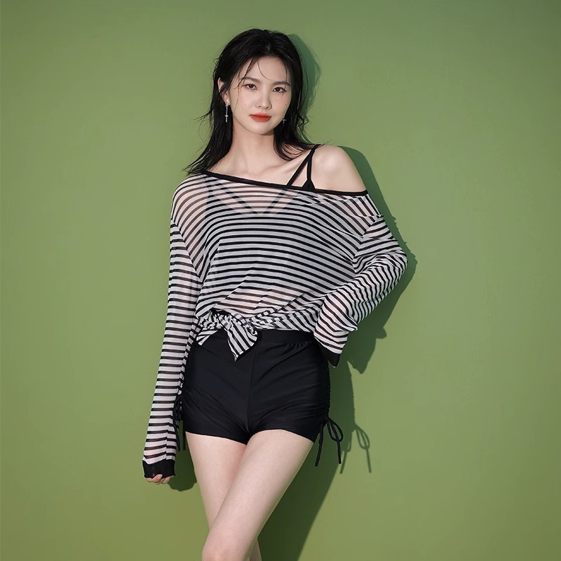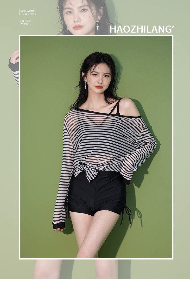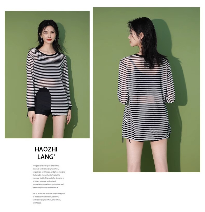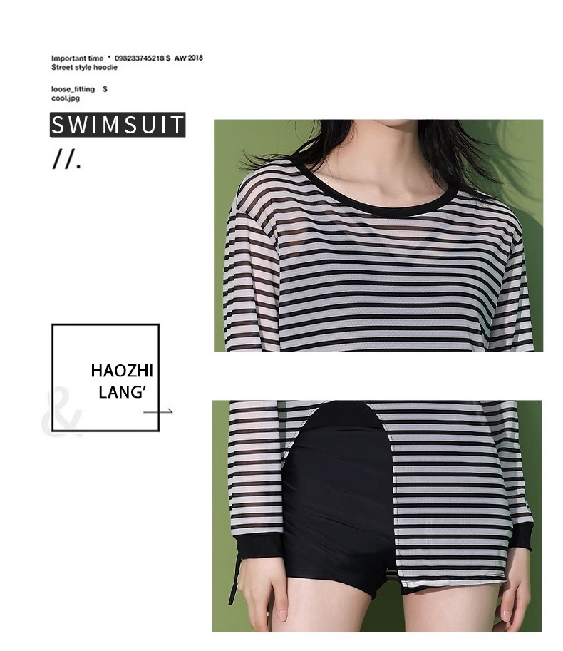 【昊之浪】여성용 긴팔 수영복 여름용 살을 가려주는 커버업 수영복 여성용 3피스 스트라이프 원피스 수영복스토어 가기