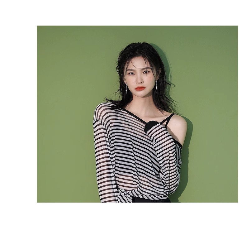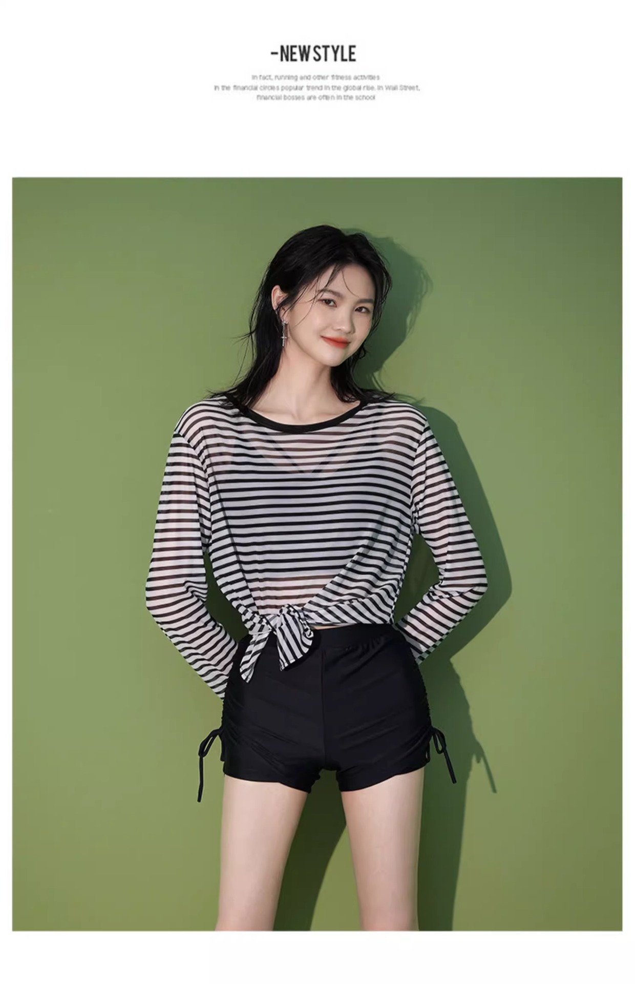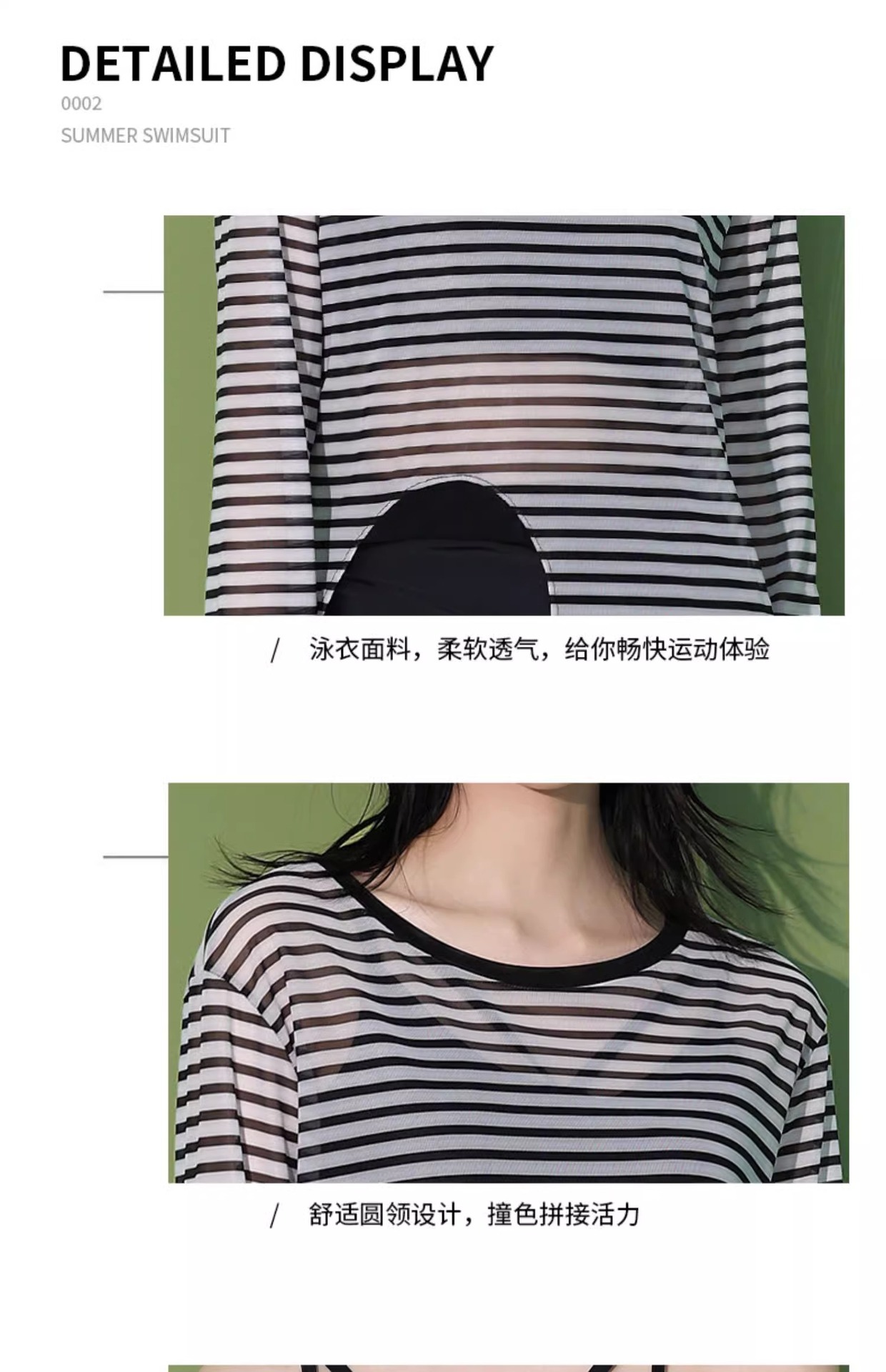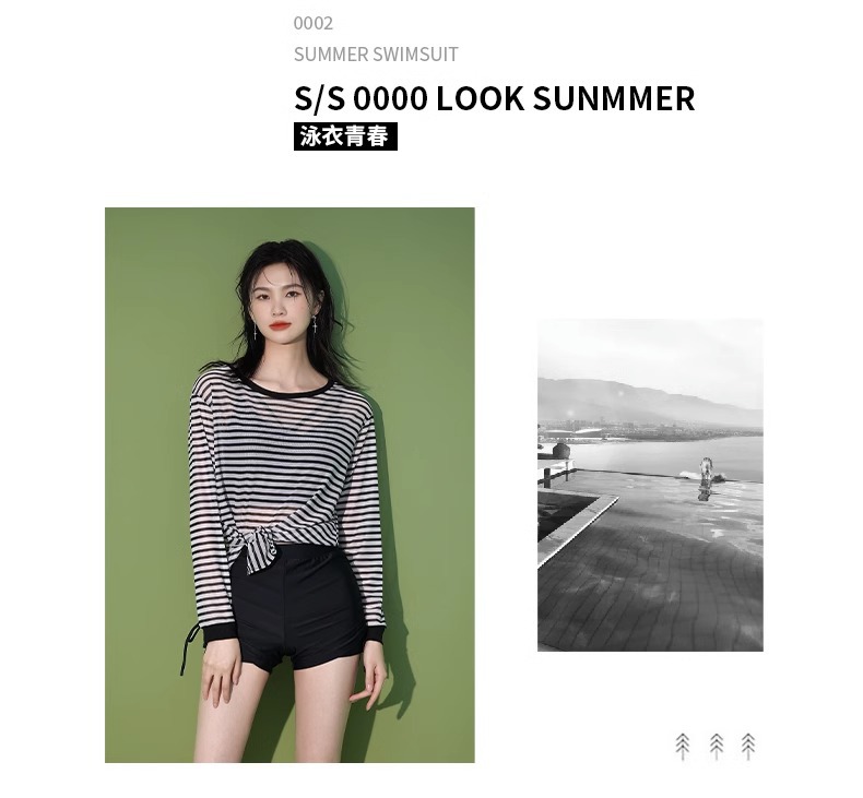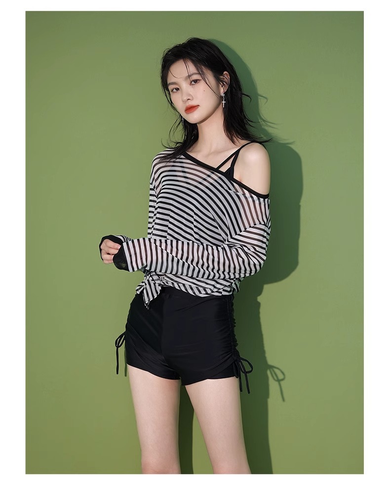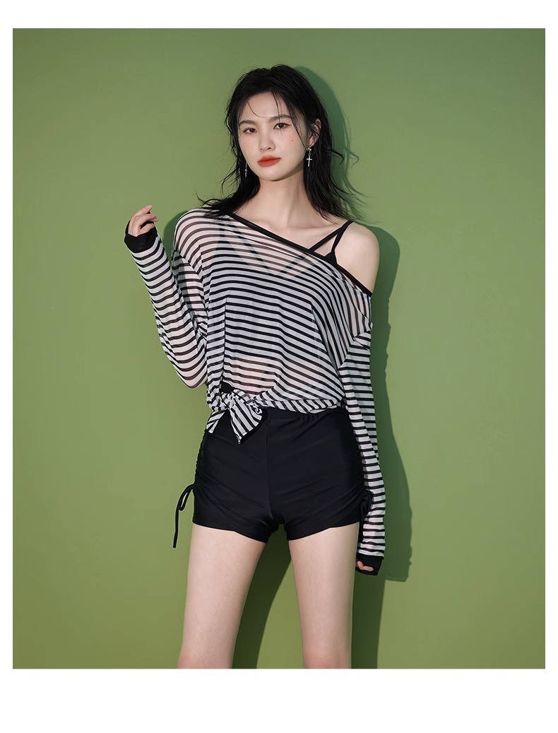 【昊之浪】여성용 긴팔 수영복 여름용 살을 가려주는 커버업 수영복 여성용 3피스 스트라이프 원피스 수영복스토어 가기