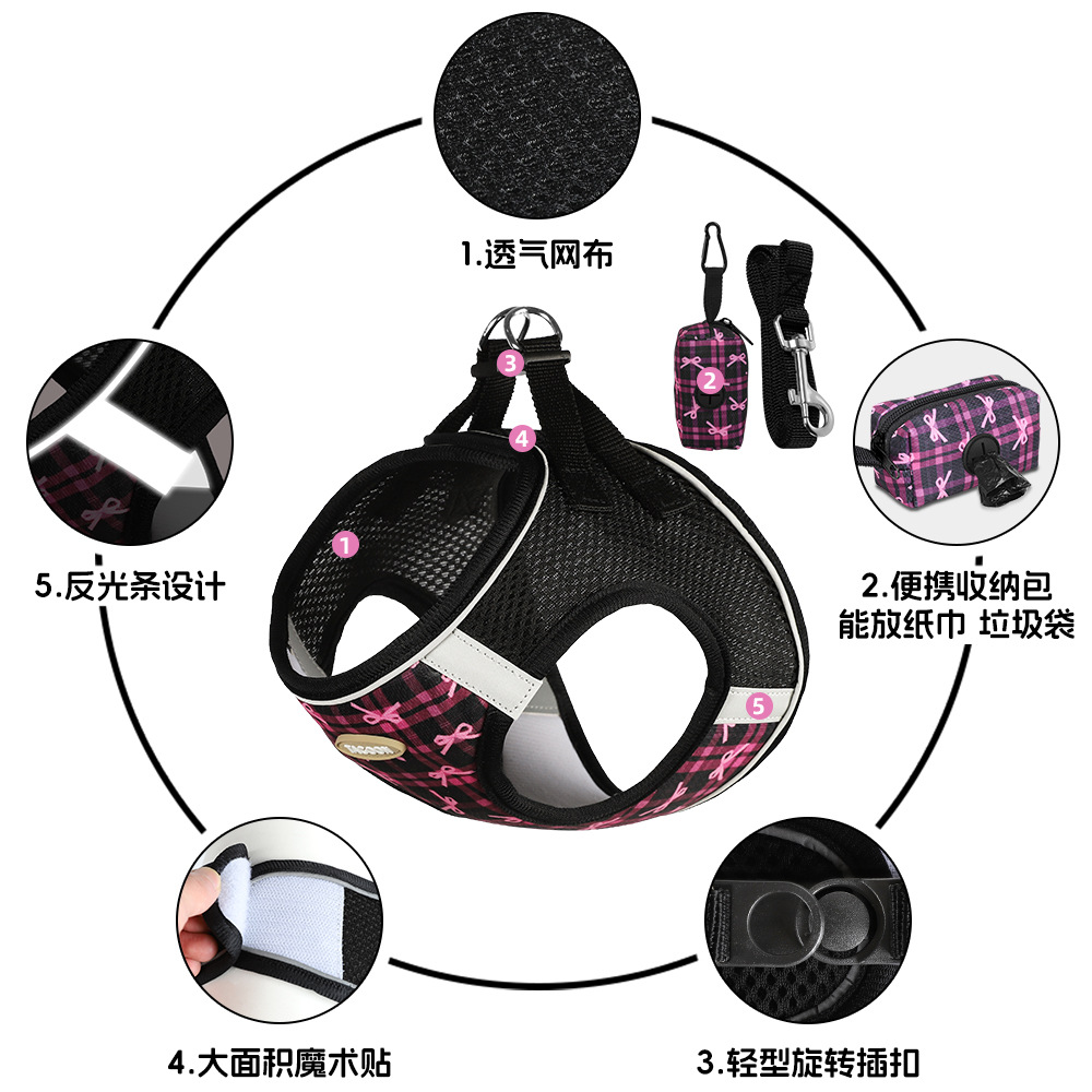 뜨거운 판매 개 가죽끈 이탈 방지 통기성 중소형 개 하네스 반사 개폐식 개 가죽끈 도매