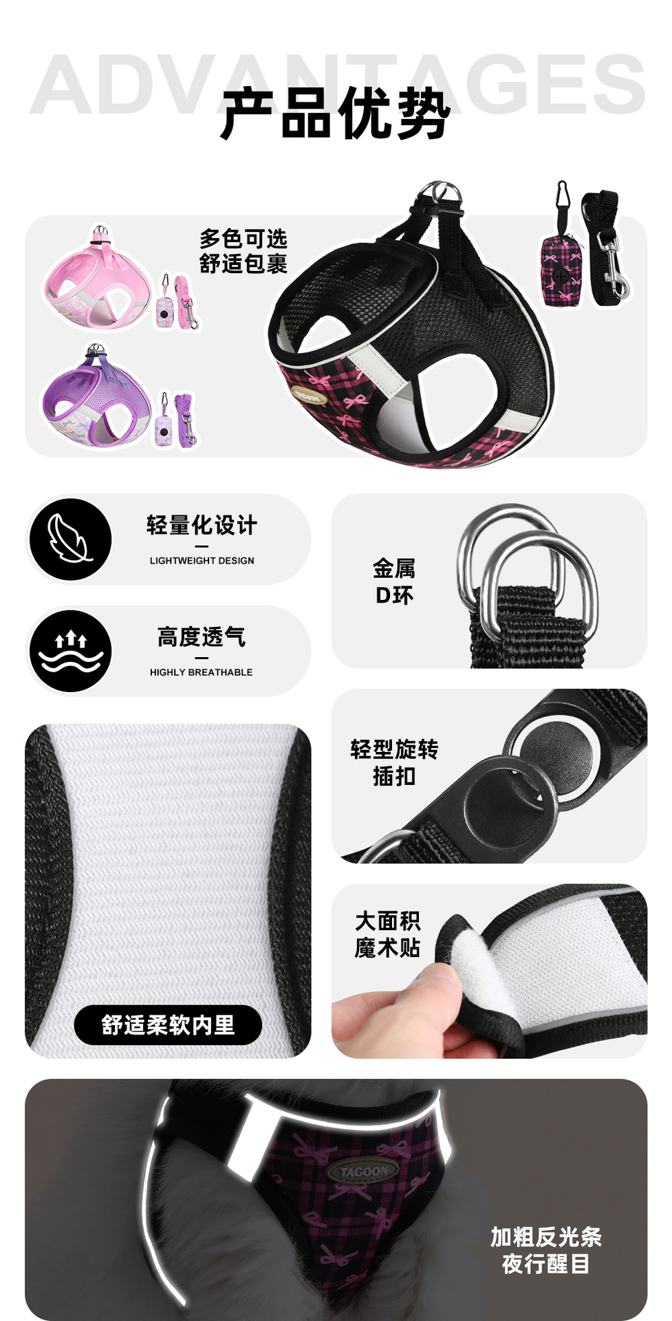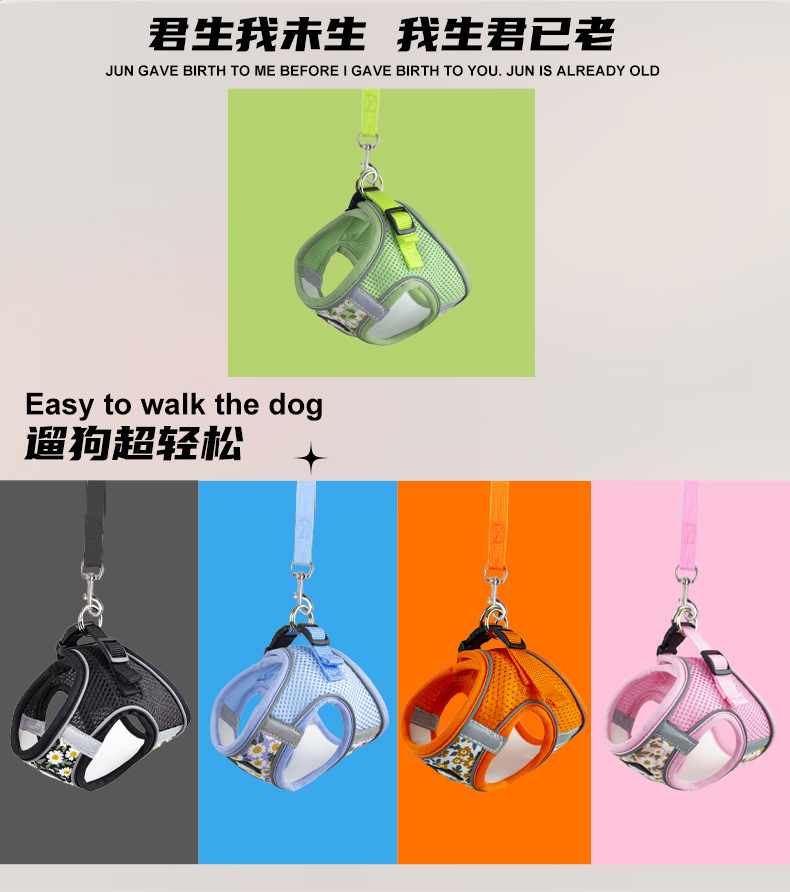 뜨거운 판매 개 가죽끈 이탈 방지 통기성 중소형 개 하네스 반사 개폐식 개 가죽끈 도매스토어 가기