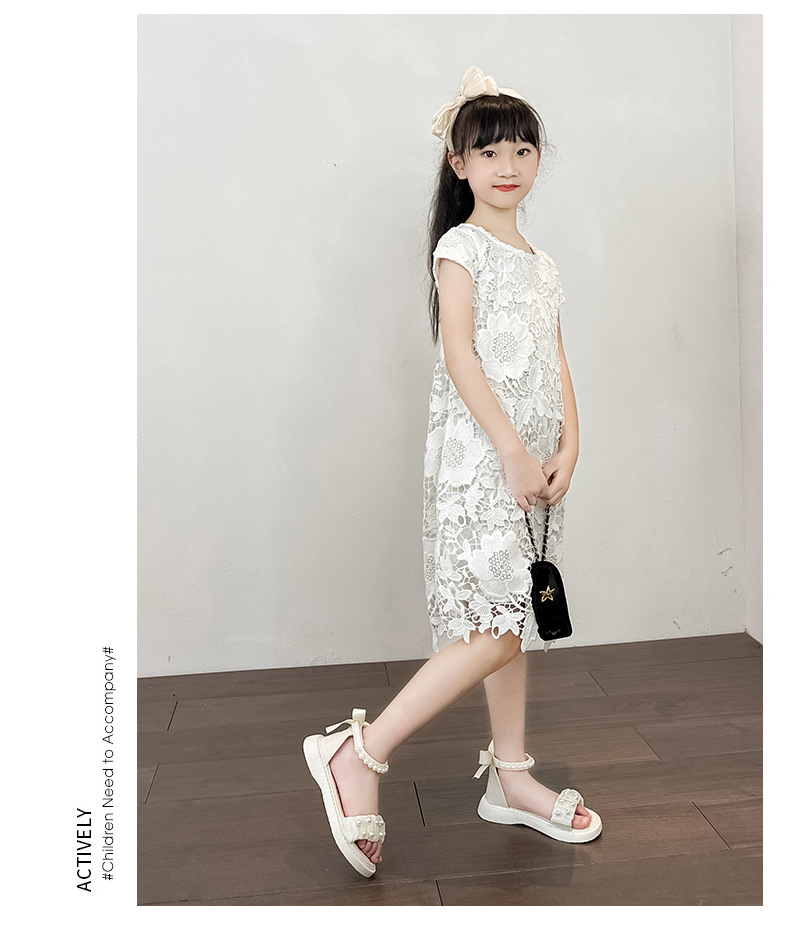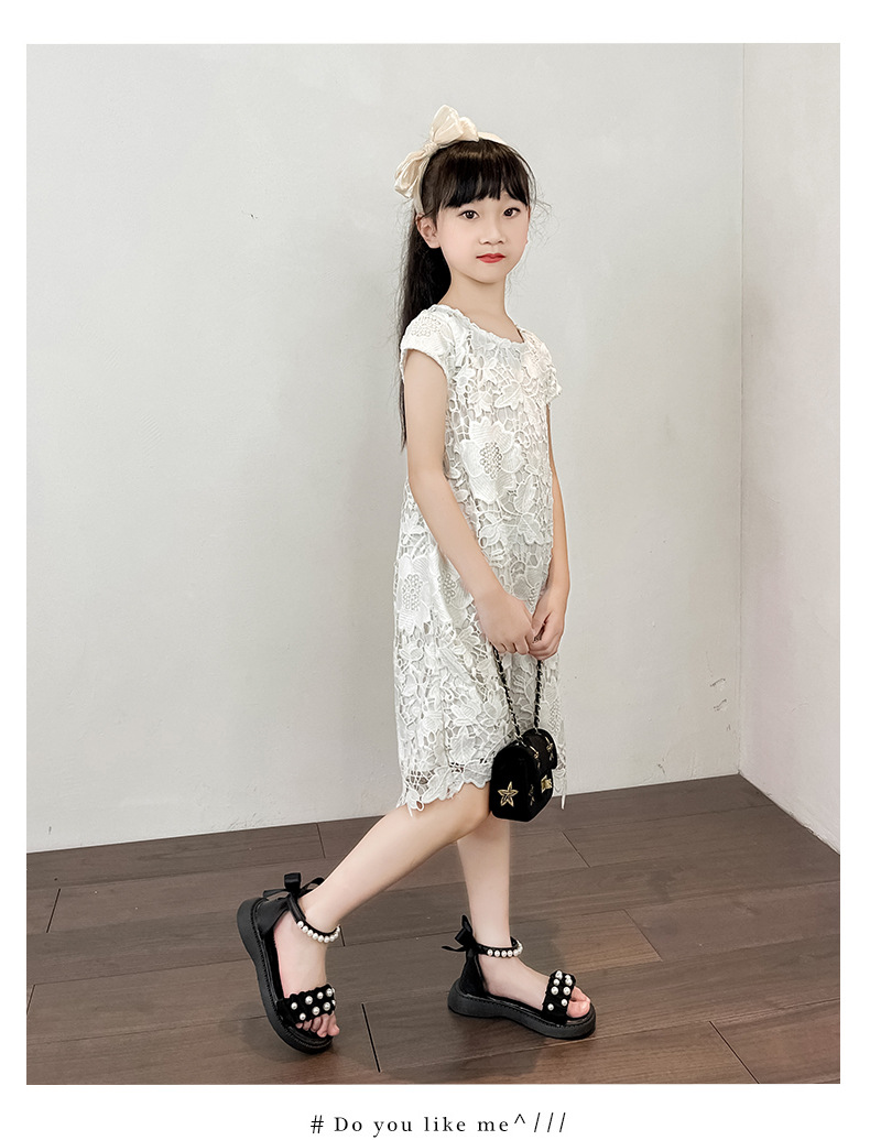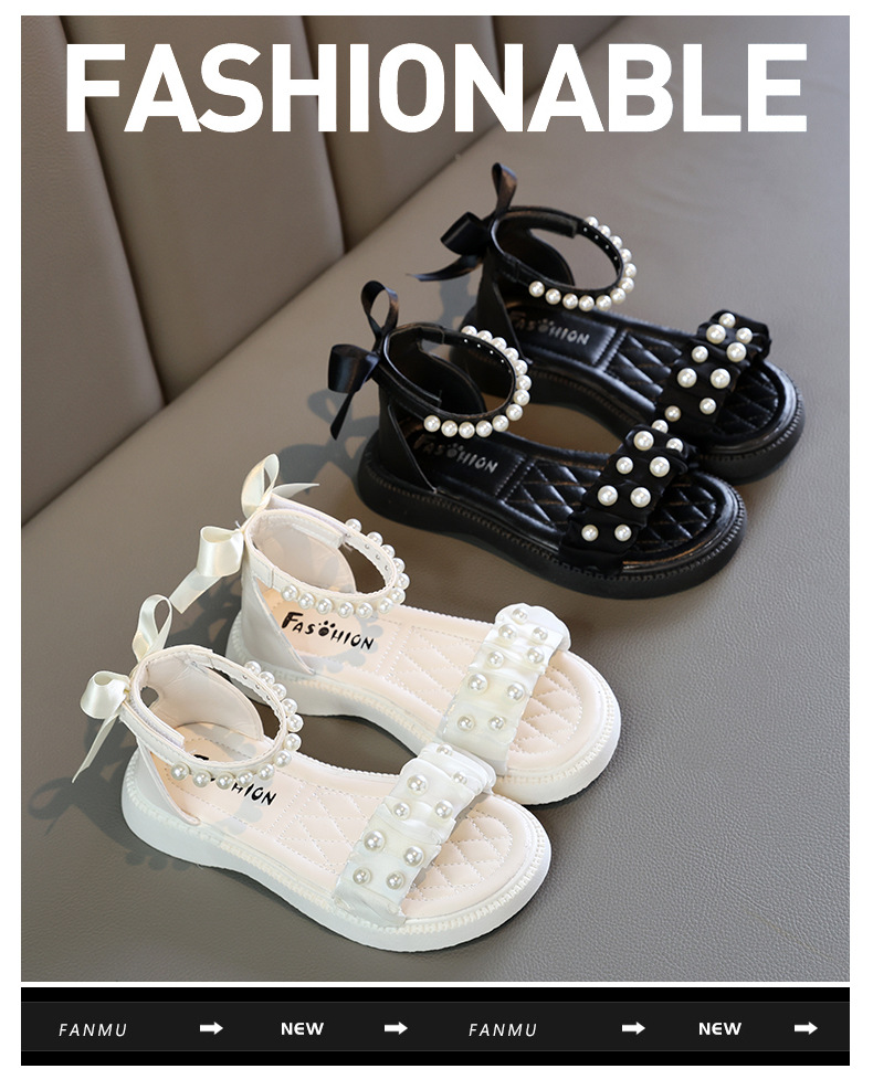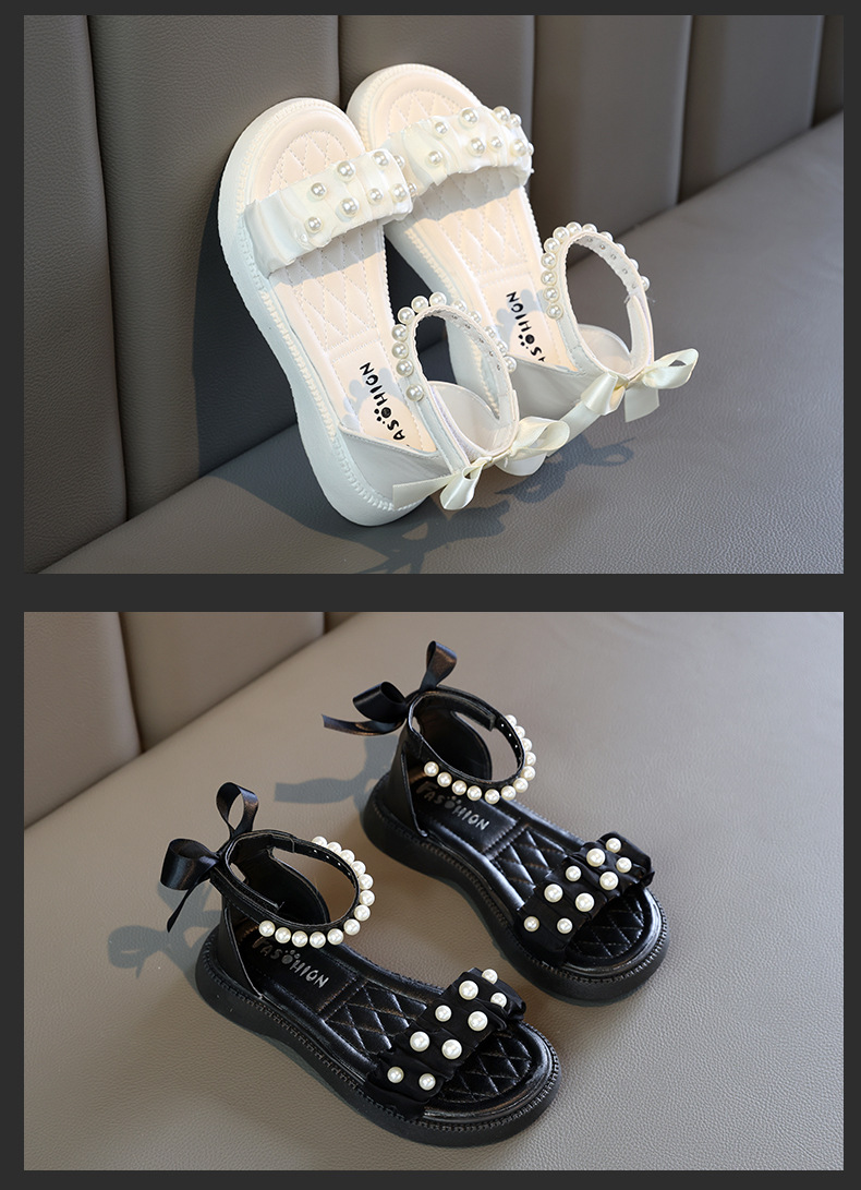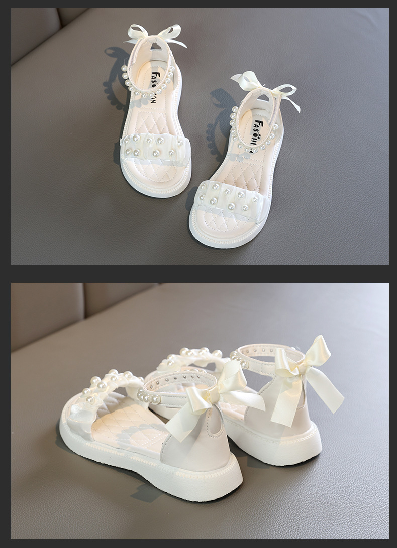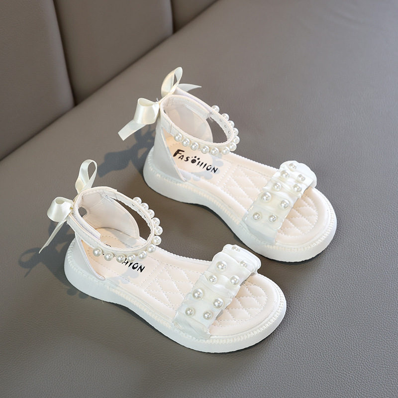 어린이 샌들 2026 새로운 스타일 진주 리본 공주 신발 어린 소녀 학생 신발 중대형 어린이용 미끄럼 방지 부드러운 밑창 신발