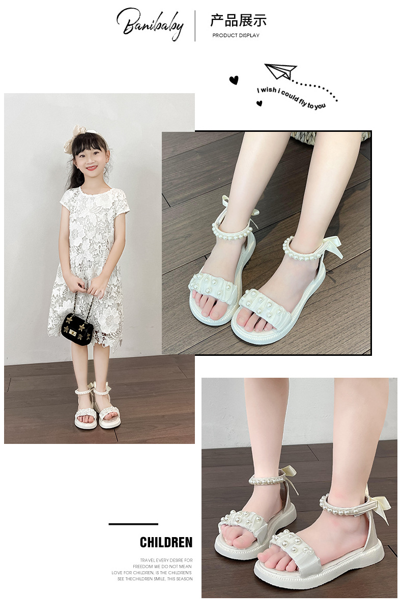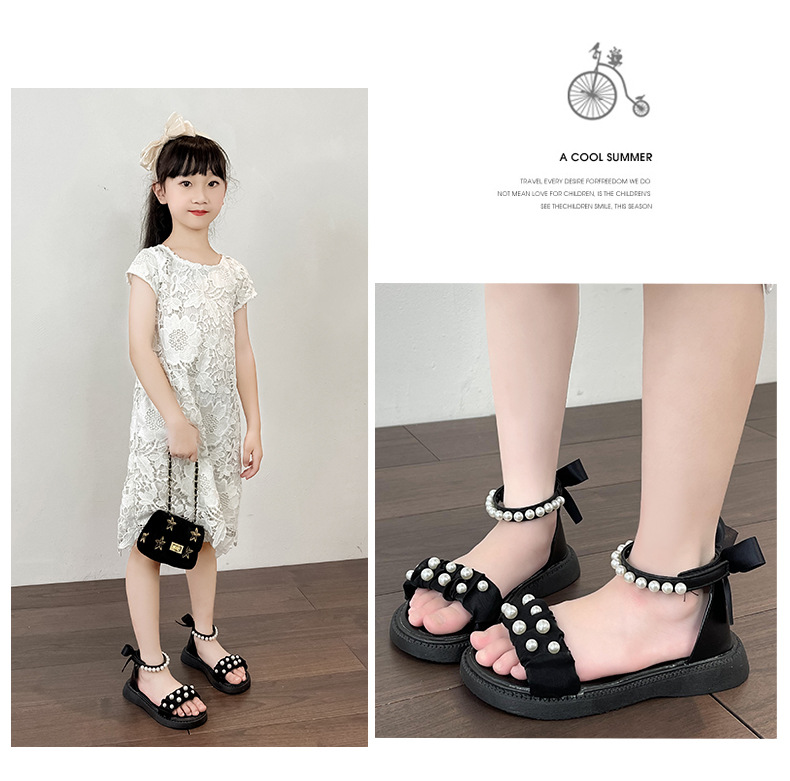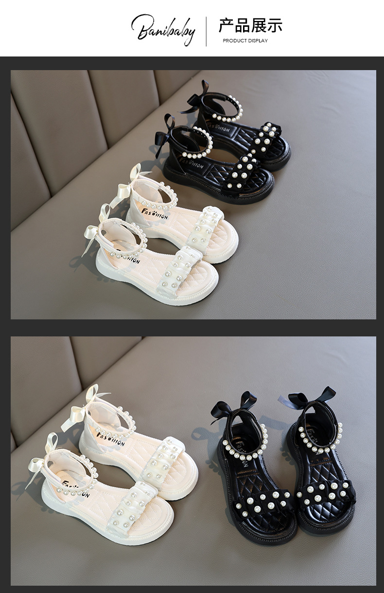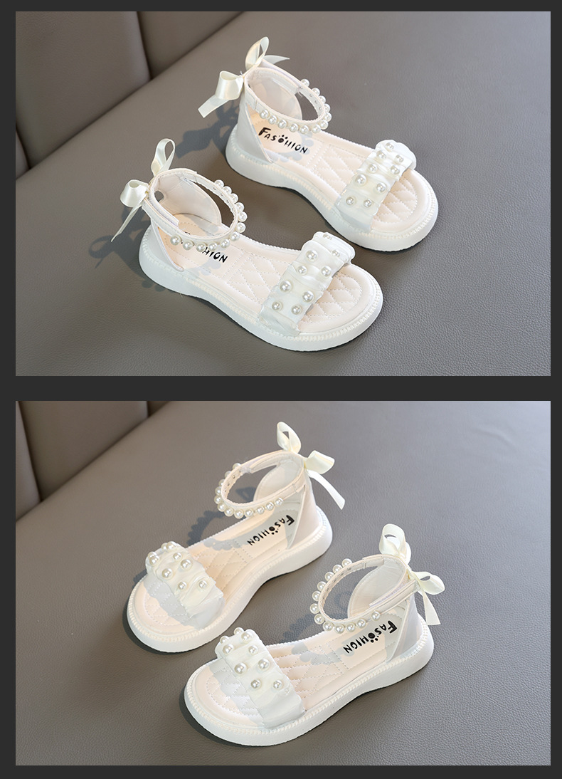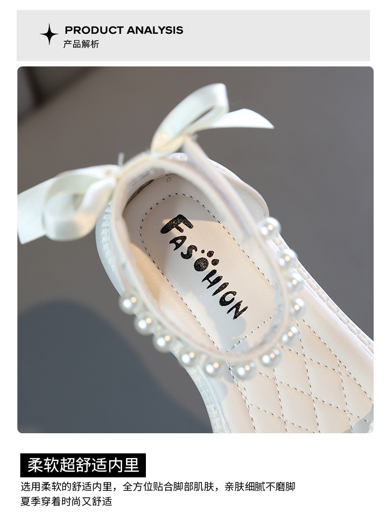 어린이 샌들 2026 새로운 스타일 진주 리본 공주 신발 어린 소녀 학생 신발 중대형 어린이용 미끄럼 방지 부드러운 밑창 신발스토어 가기