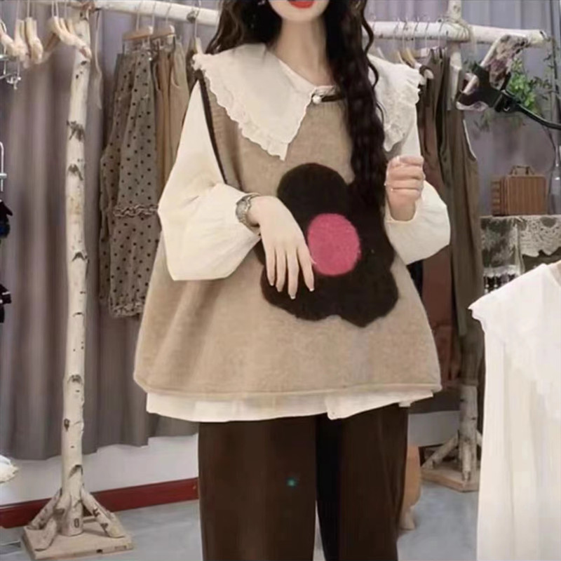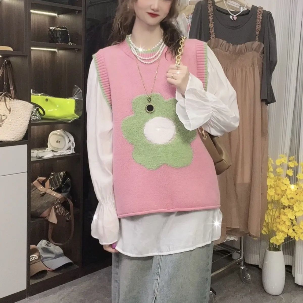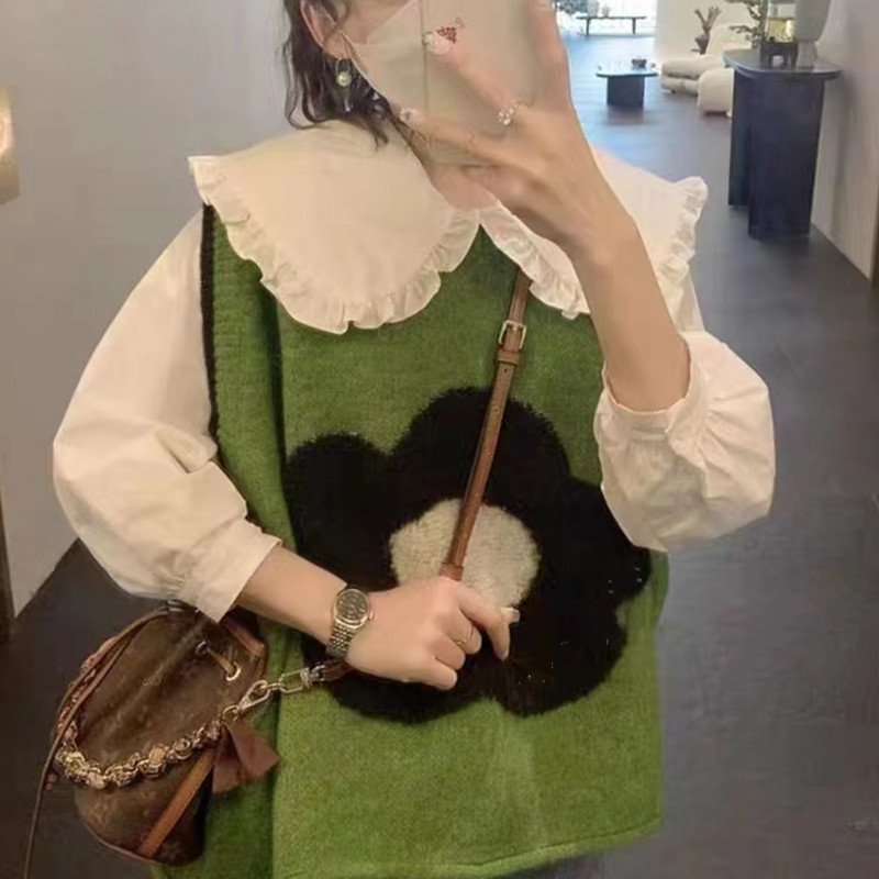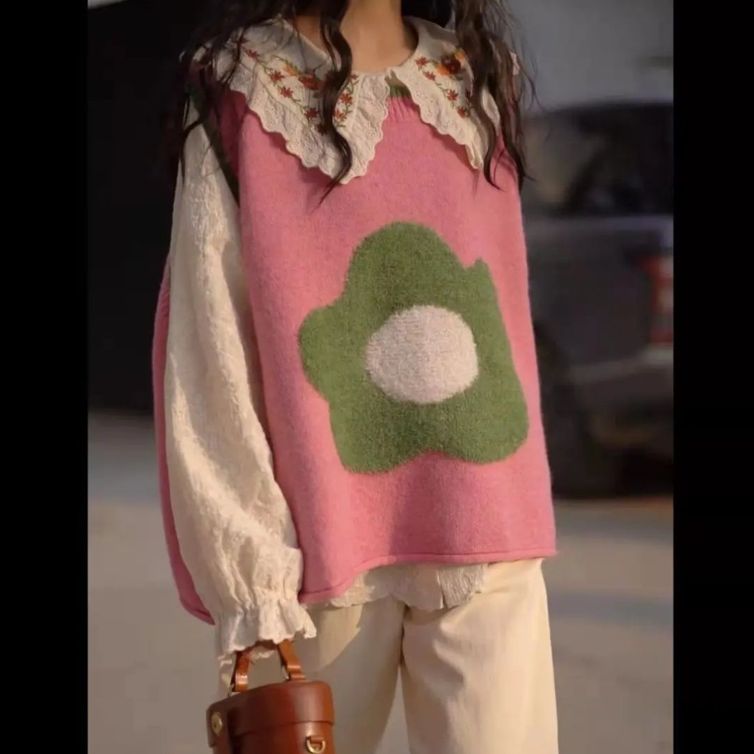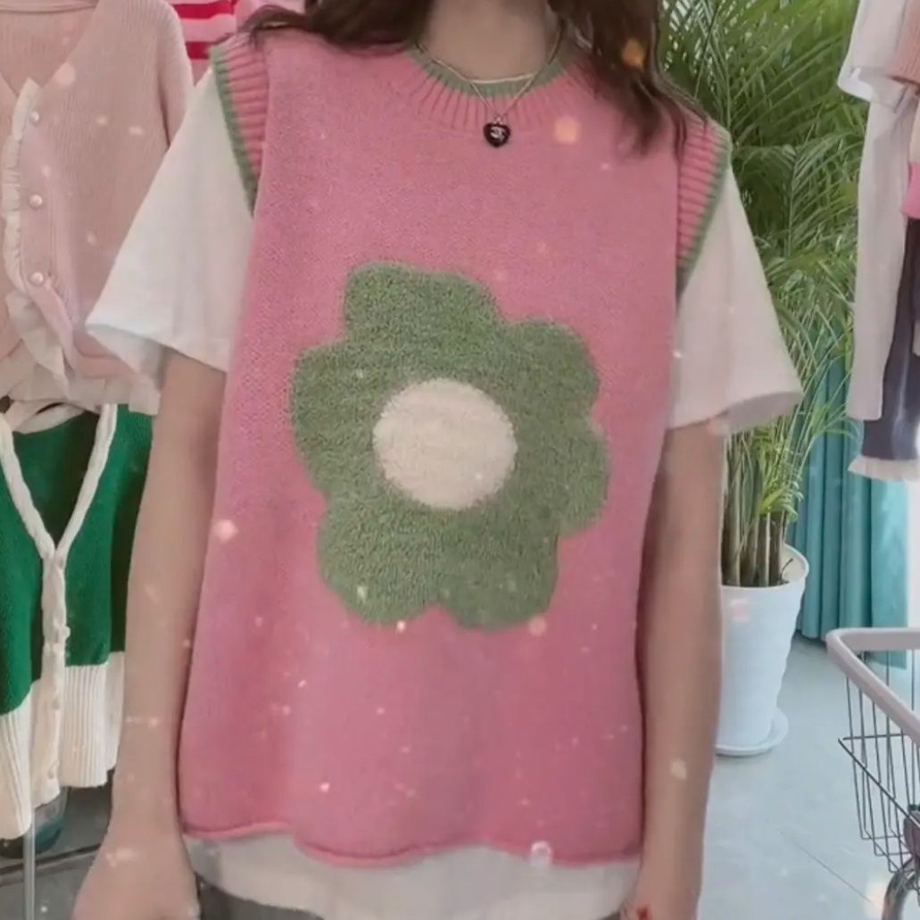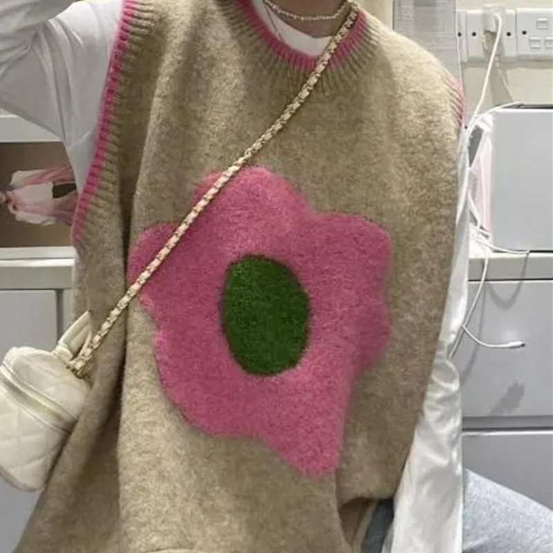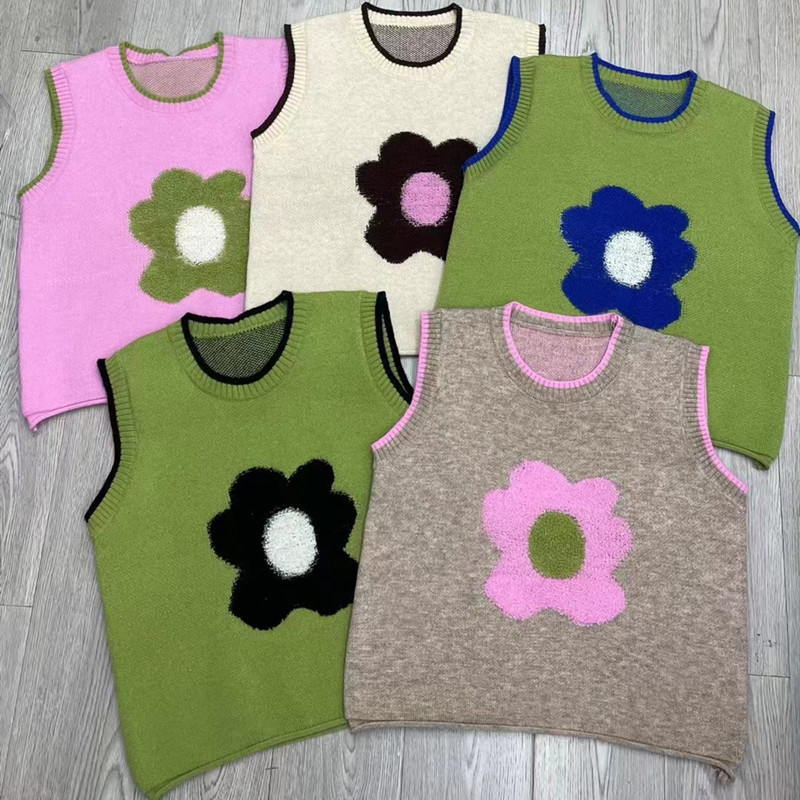 대비 색상 느슨한 한국 조끼 스웨터 여성의 2023 가을과 겨울 새로운 니트 라운드 넥 컬러 매칭 민소매 조끼 마지막 패션스토어 가기