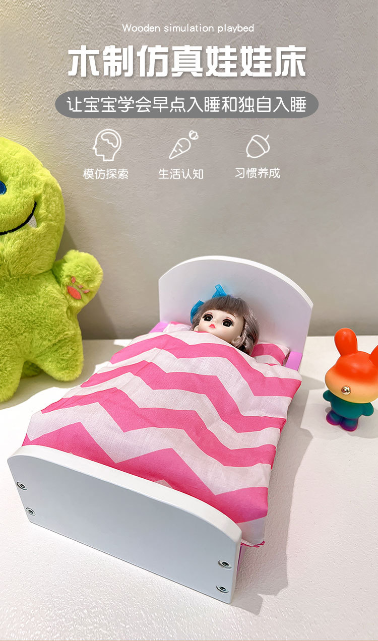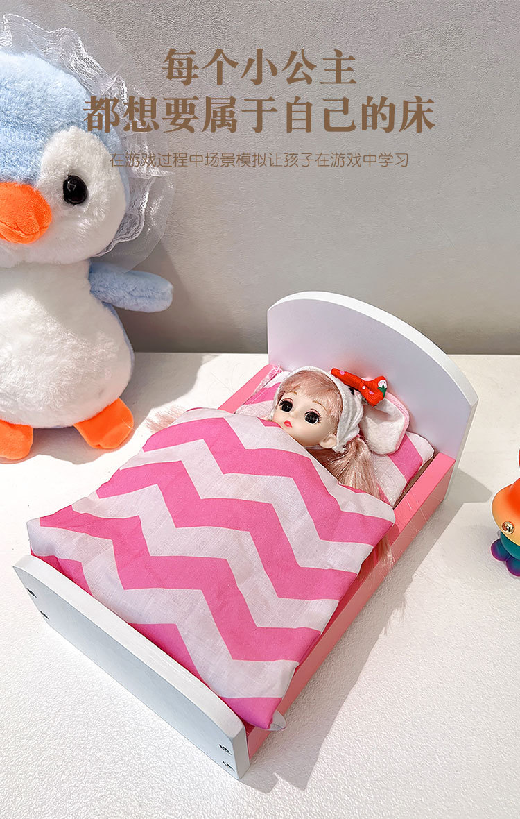 나무 놀이 집 시뮬레이션 소녀 장난감 유치원 인형 집 작은 침대 인형 미니 침대스토어 가기