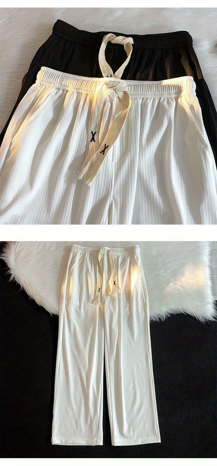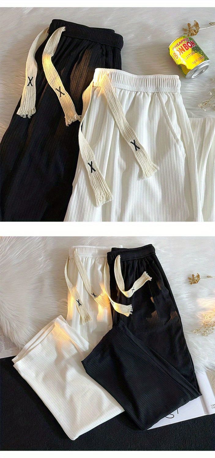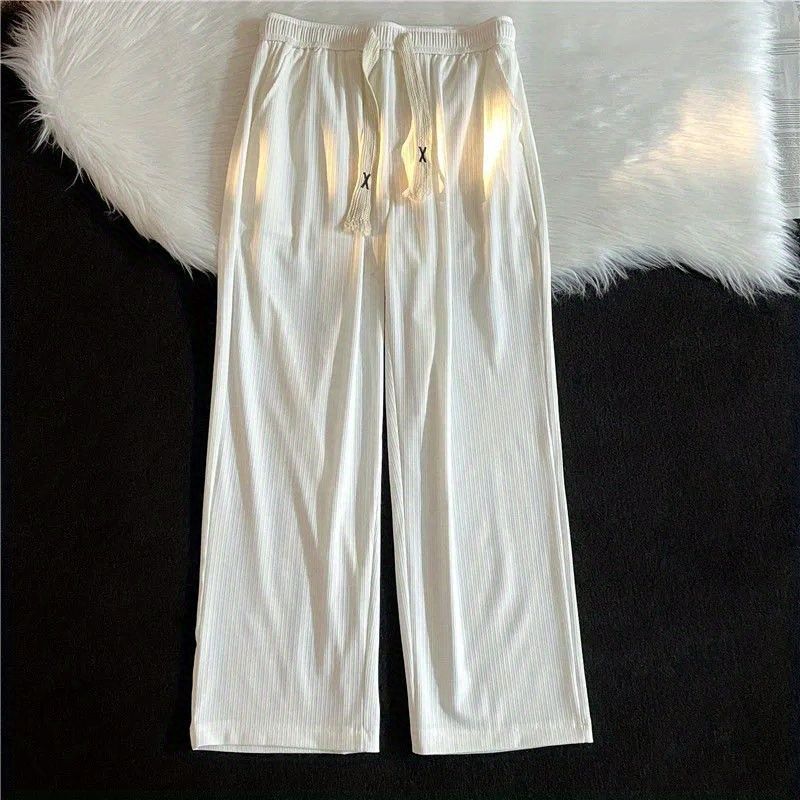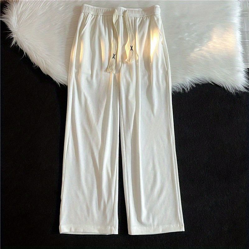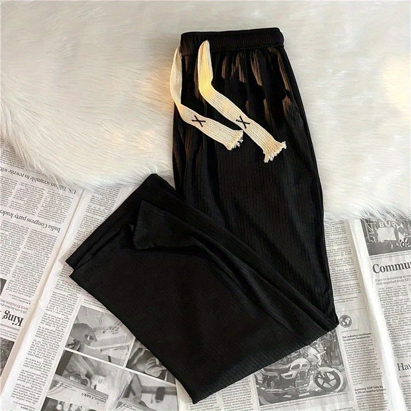 아메리칸 스타일 여름 스트레이트 아이스 실크 캐주얼 바지 유행 남성과 여성의 느슨한 유행 브랜드, 얇은 잘 생긴 넓은 다리 바지