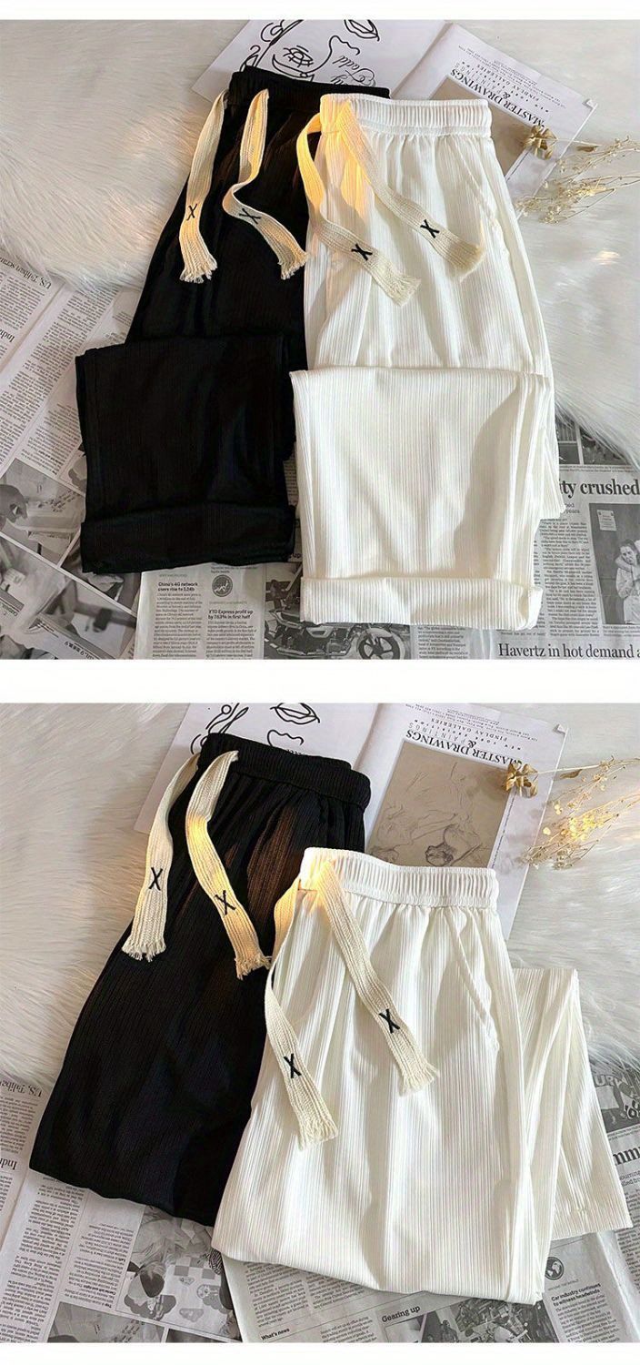 아메리칸 스타일 여름 스트레이트 아이스 실크 캐주얼 바지 유행 남성과 여성의 느슨한 유행 브랜드, 얇은 잘 생긴 넓은 다리 바지스토어 가기