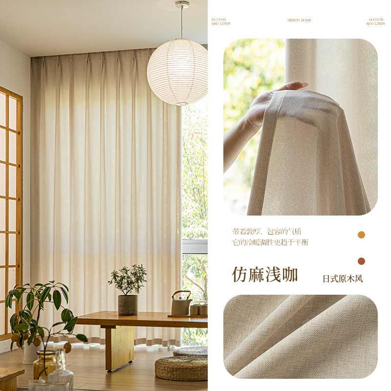 일본산 거즈 린넨 거즈 커튼, 차실 차방식, 일본식 반투명 및 불투명 린넨 및 린넨 고급 창문 스크린