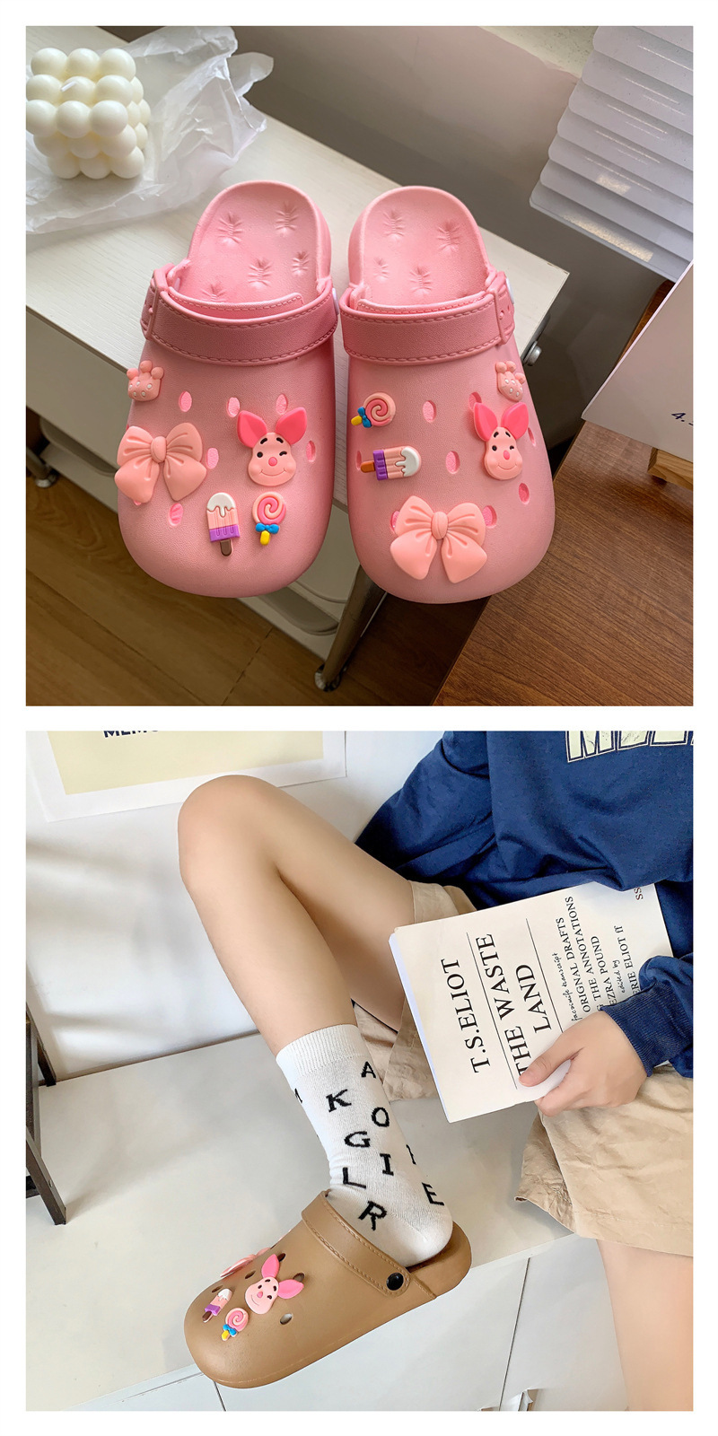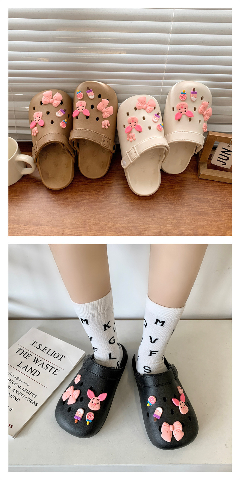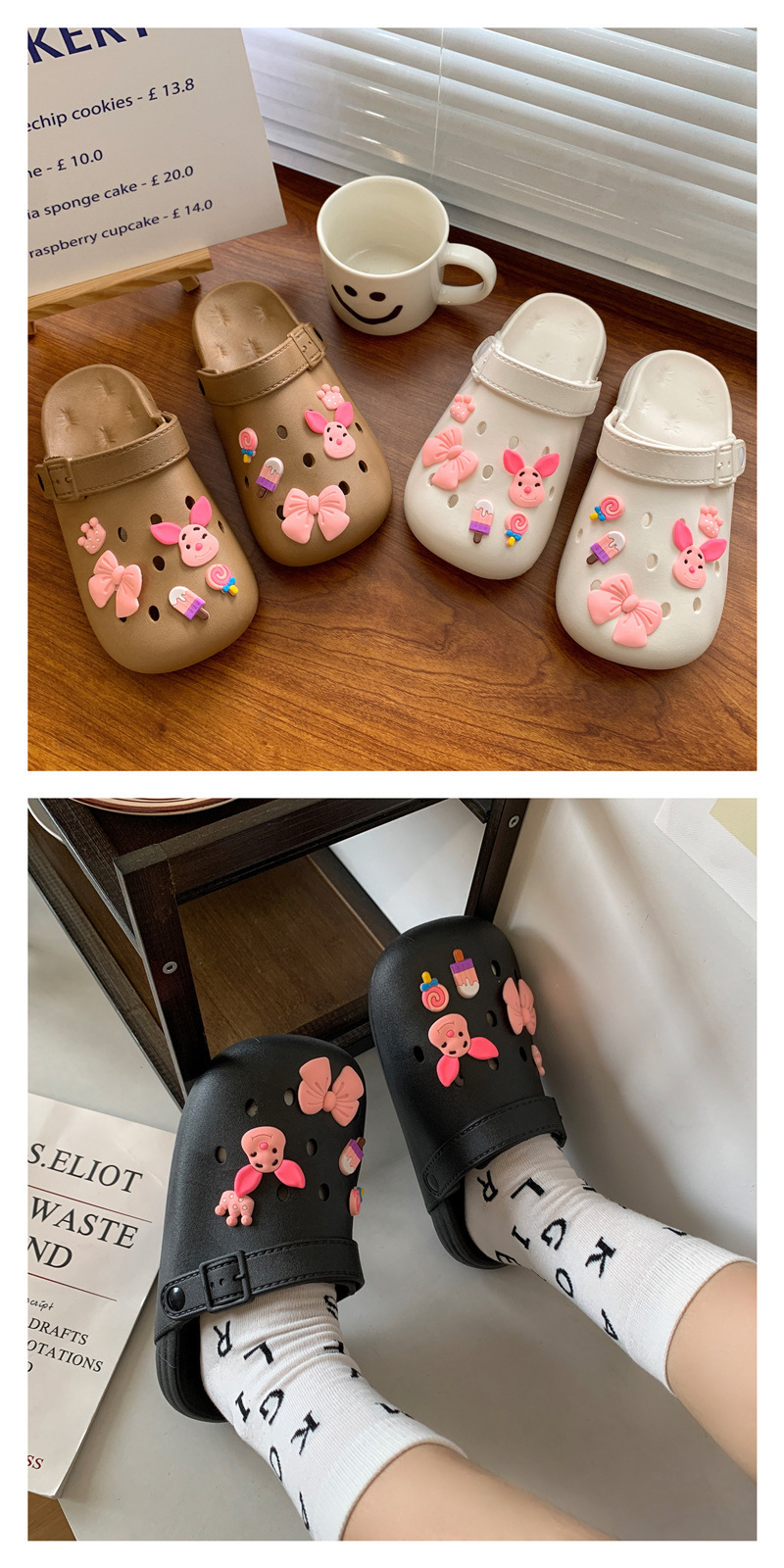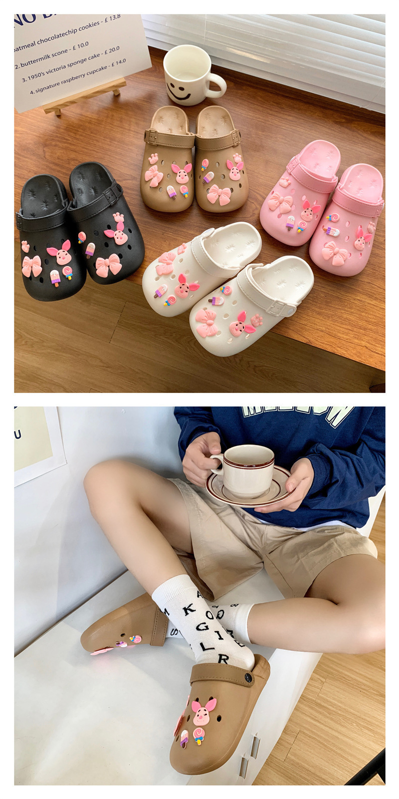 Baotou 슬리퍼 여자의 귀여운 새끼 돼지 동굴 신발 겉옷 만화 귀여운 두꺼운 단독 신발 슬리퍼 여름 비치 슬리퍼