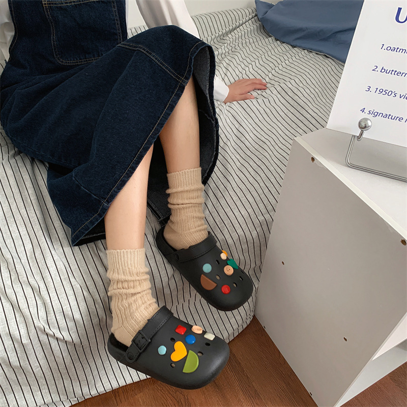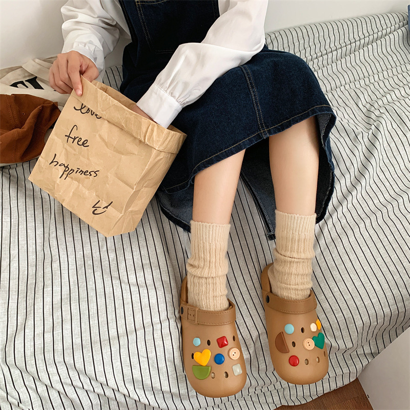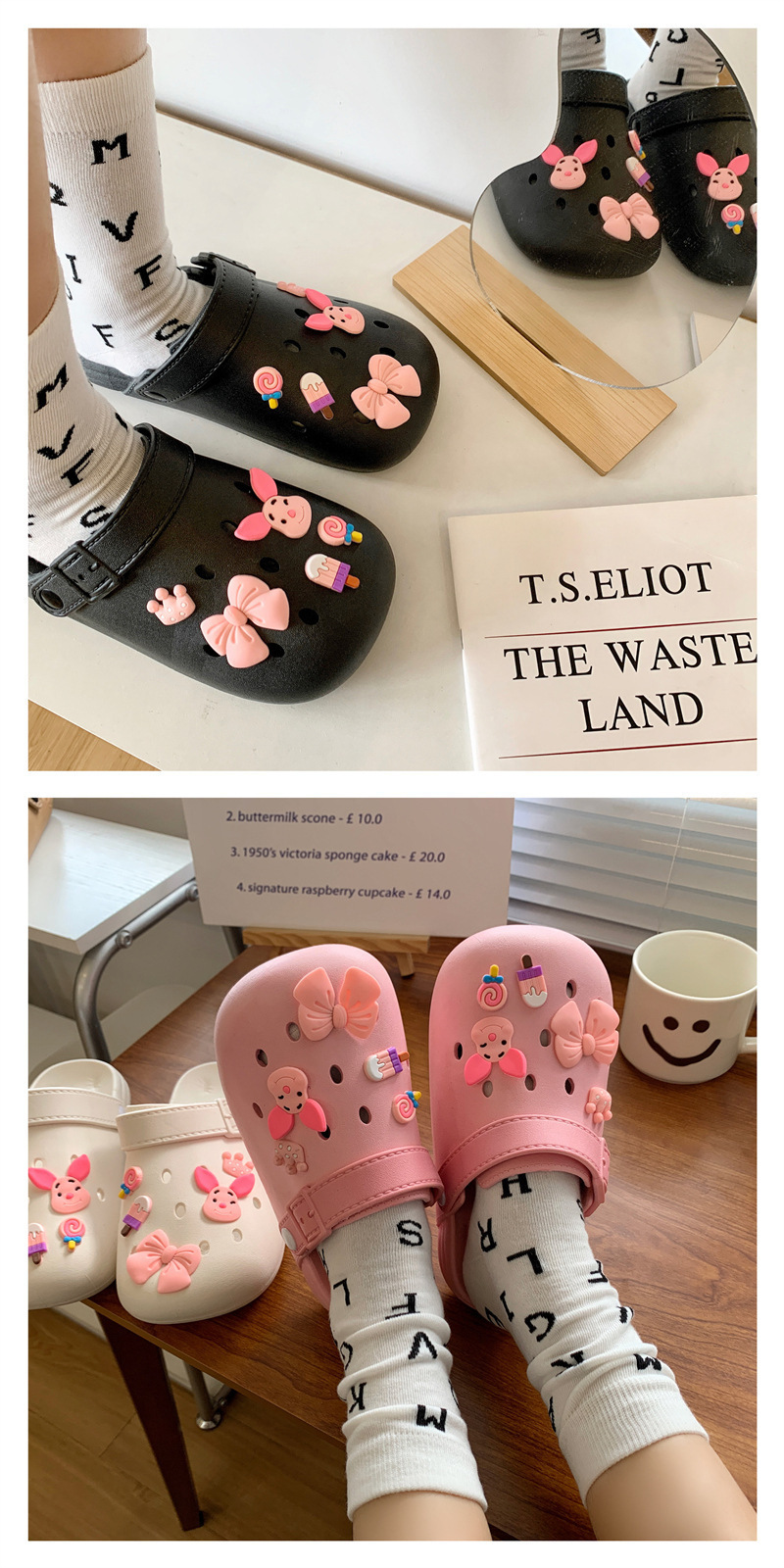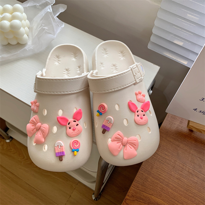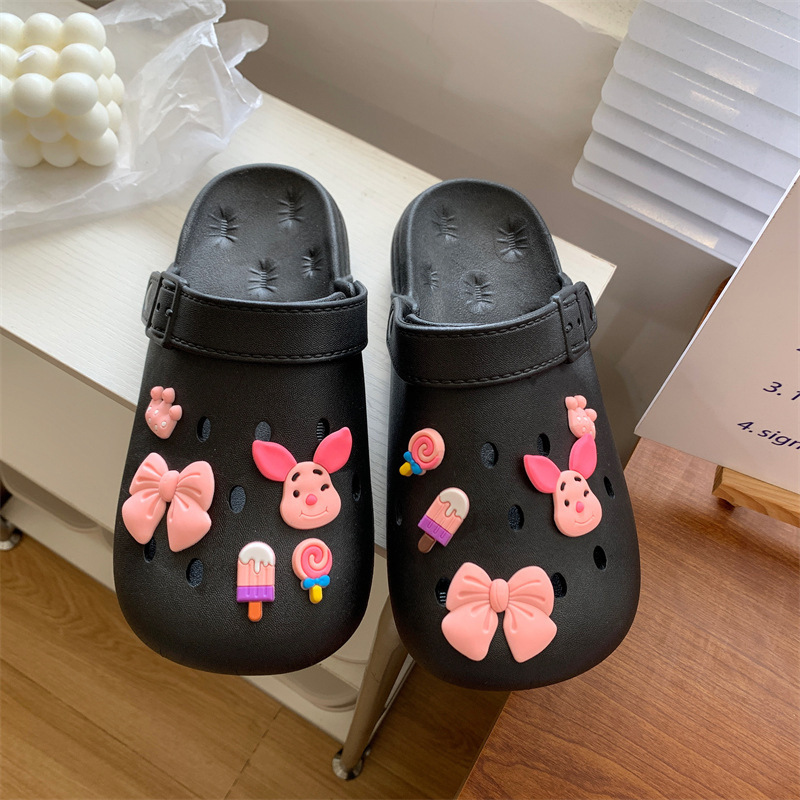 Baotou 슬리퍼 여자의 귀여운 새끼 돼지 동굴 신발 겉옷 만화 귀여운 두꺼운 단독 신발 슬리퍼 여름 비치 슬리퍼
