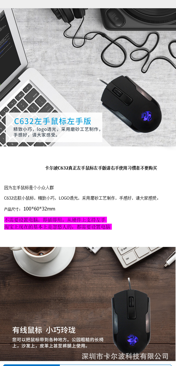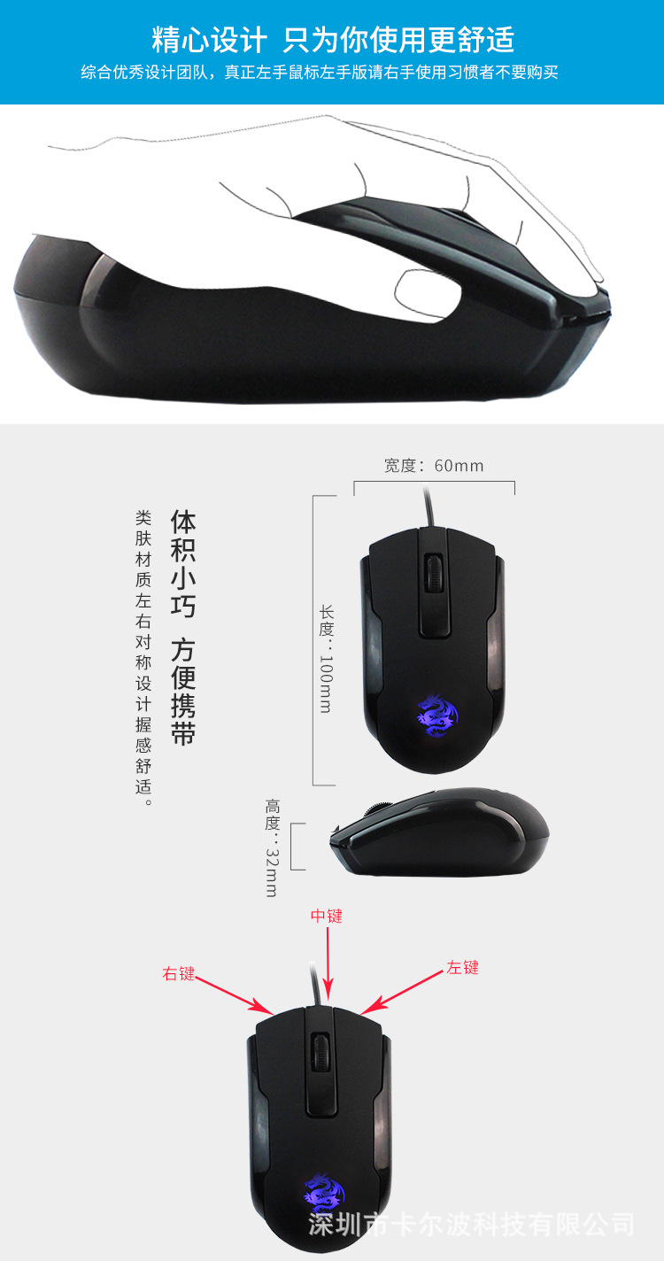 마우스 유선 USB 유선 왼손잡이 마우스 사무실 데스크탑 노트북 왼손잡이 유선 마우스
