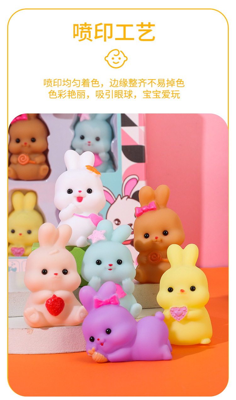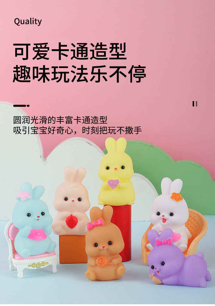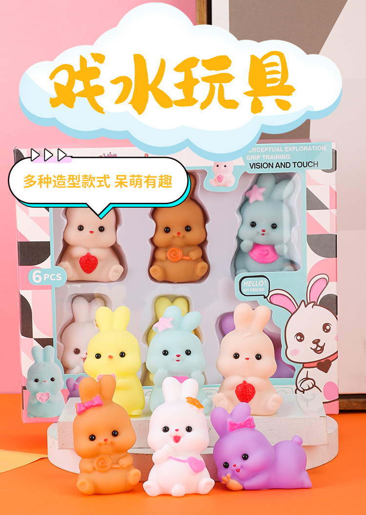 미니 만화 비닐 토끼 동물 쥐어잡아 소리내는 부드러운 고무 물놀이 장난감 아기 목욕용 물총 장난감 도매스토어 가기