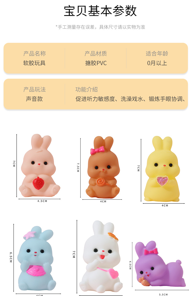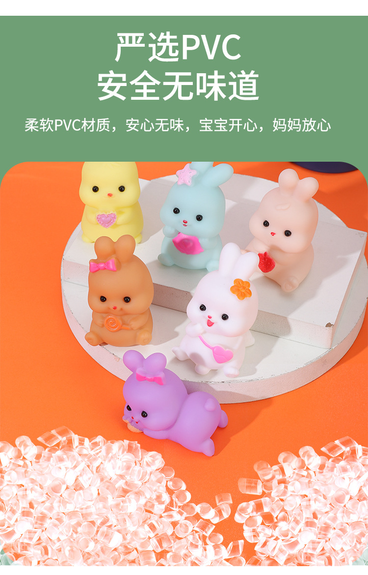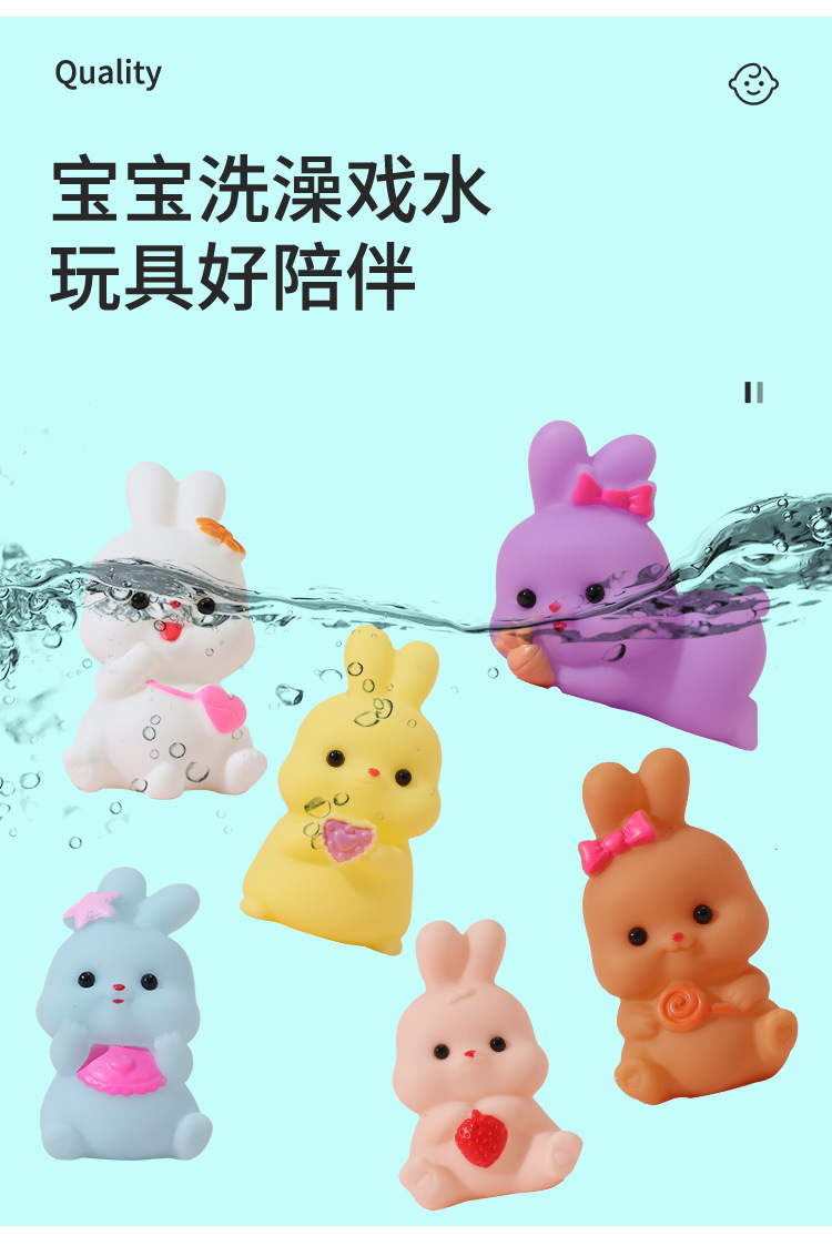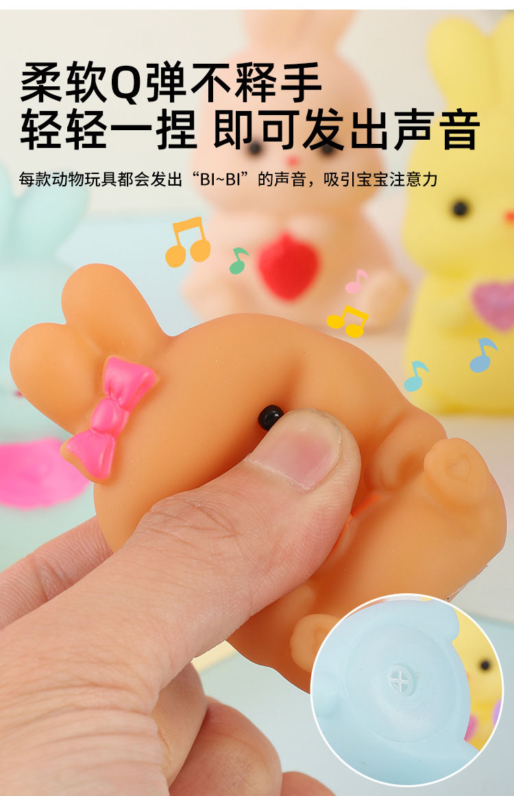 미니 만화 비닐 토끼 동물 쥐어잡아 소리내는 부드러운 고무 물놀이 장난감 아기 목욕용 물총 장난감 도매