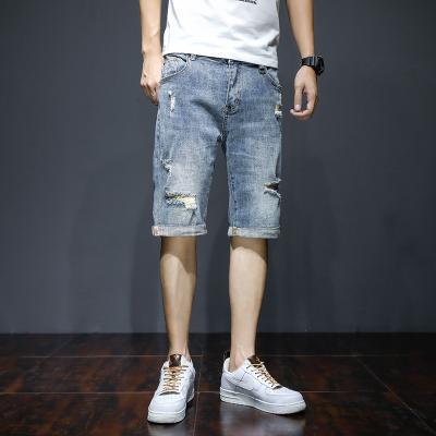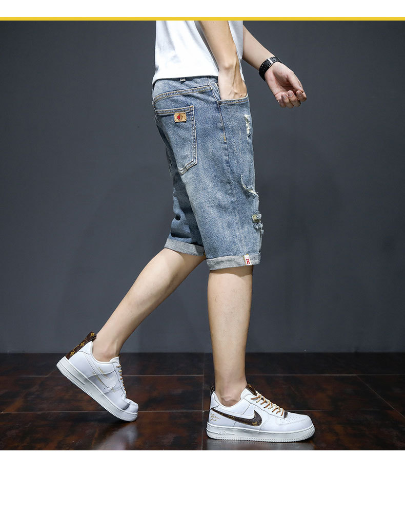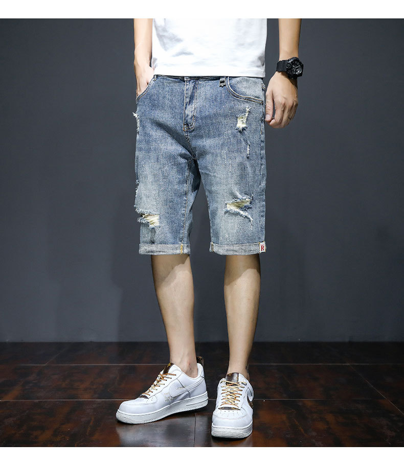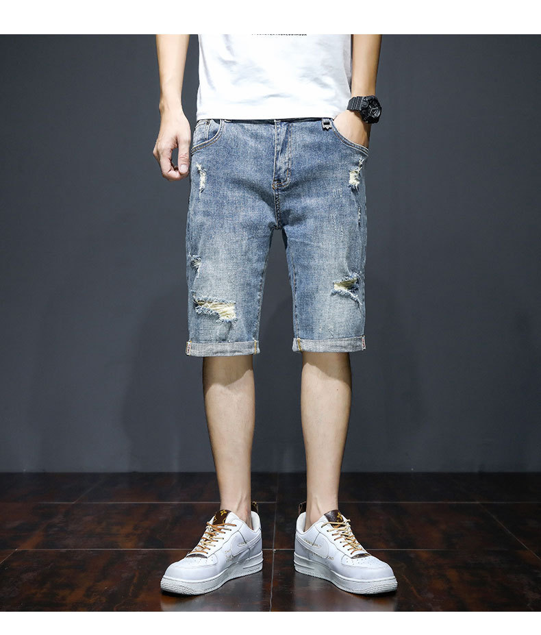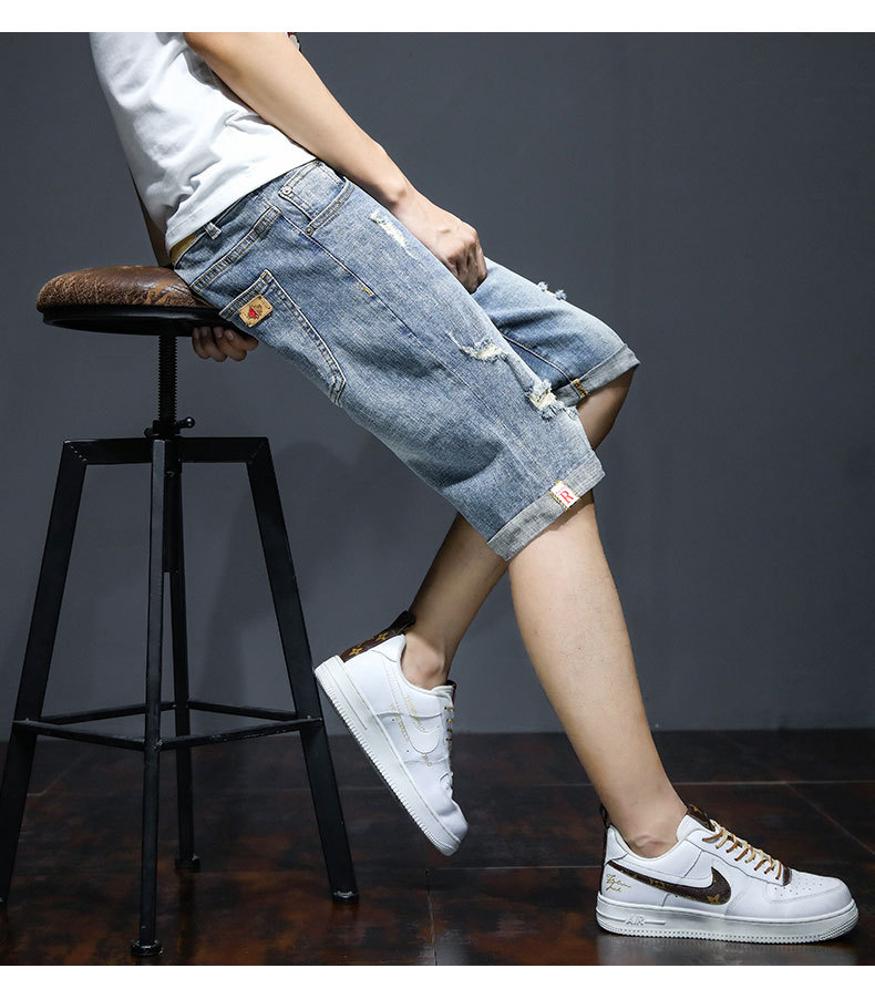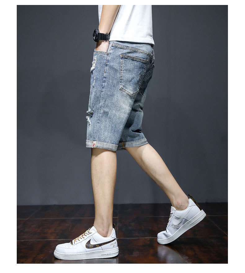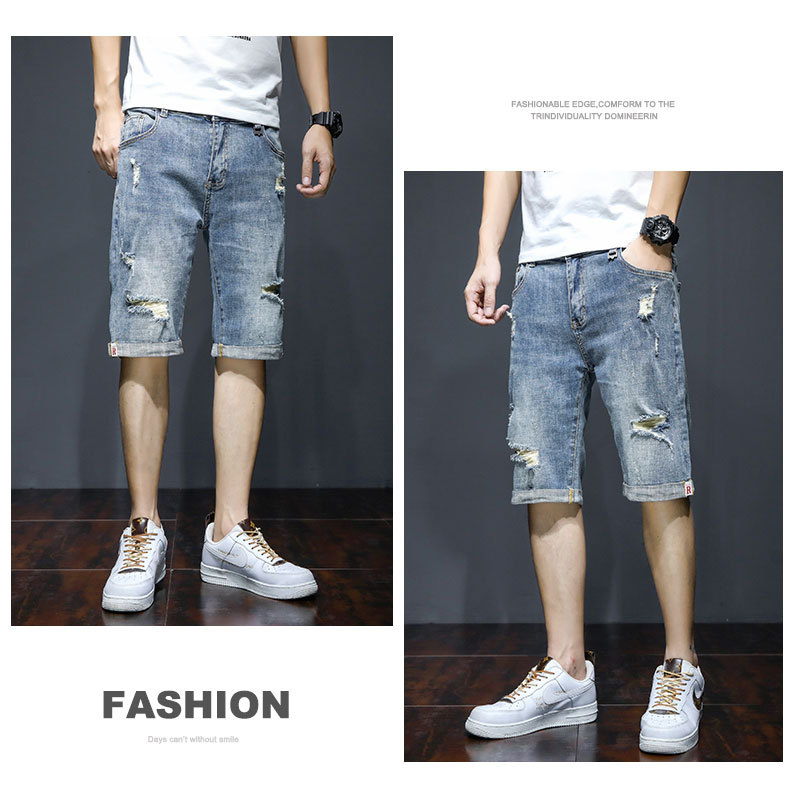 남자의 2023 데님 반바지 찢어진 여름 얇은 유행 느슨한 반바지 크롭 스트레이트 캐주얼 바지스토어 가기