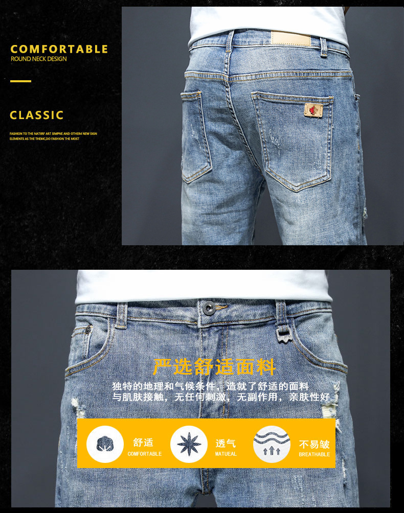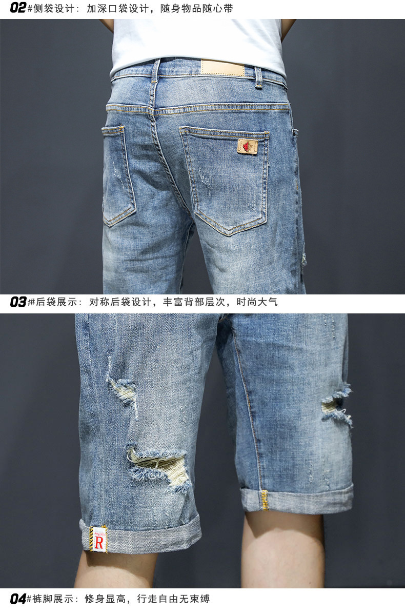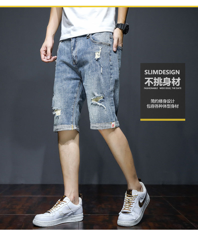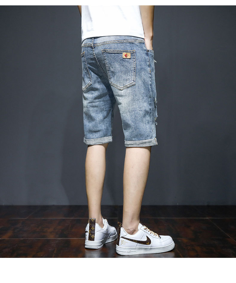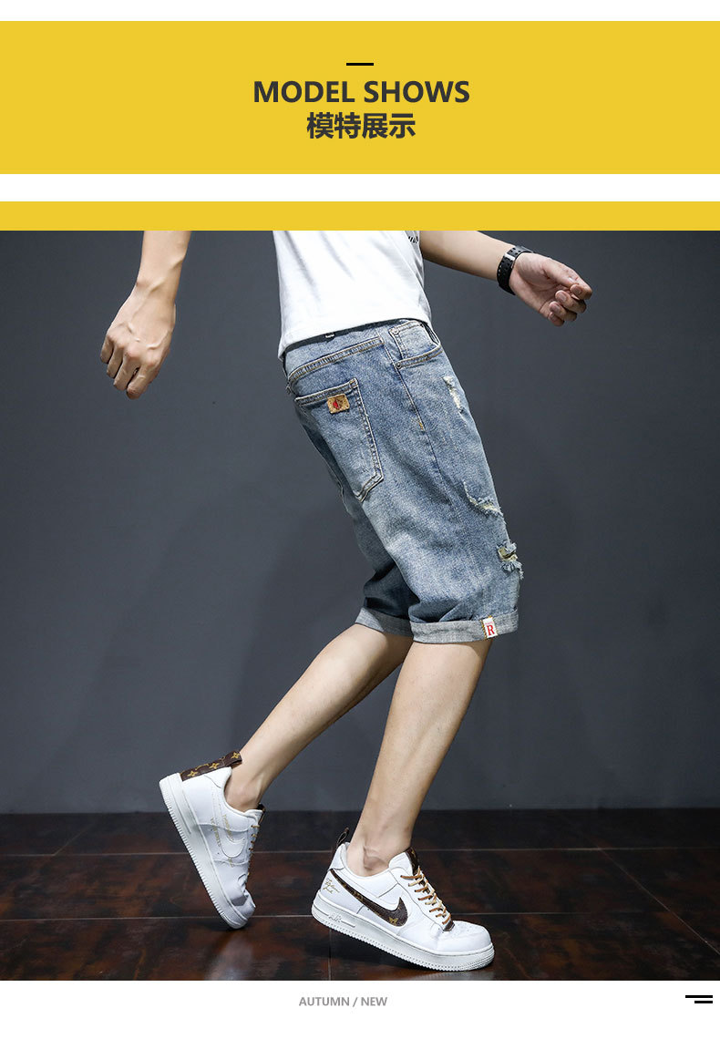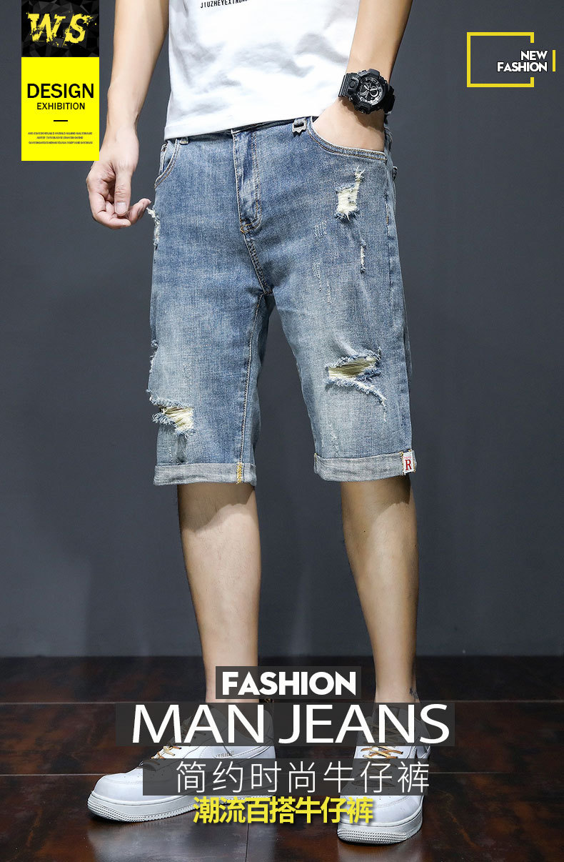 남자의 2023 데님 반바지 찢어진 여름 얇은 유행 느슨한 반바지 크롭 스트레이트 캐주얼 바지스토어 가기