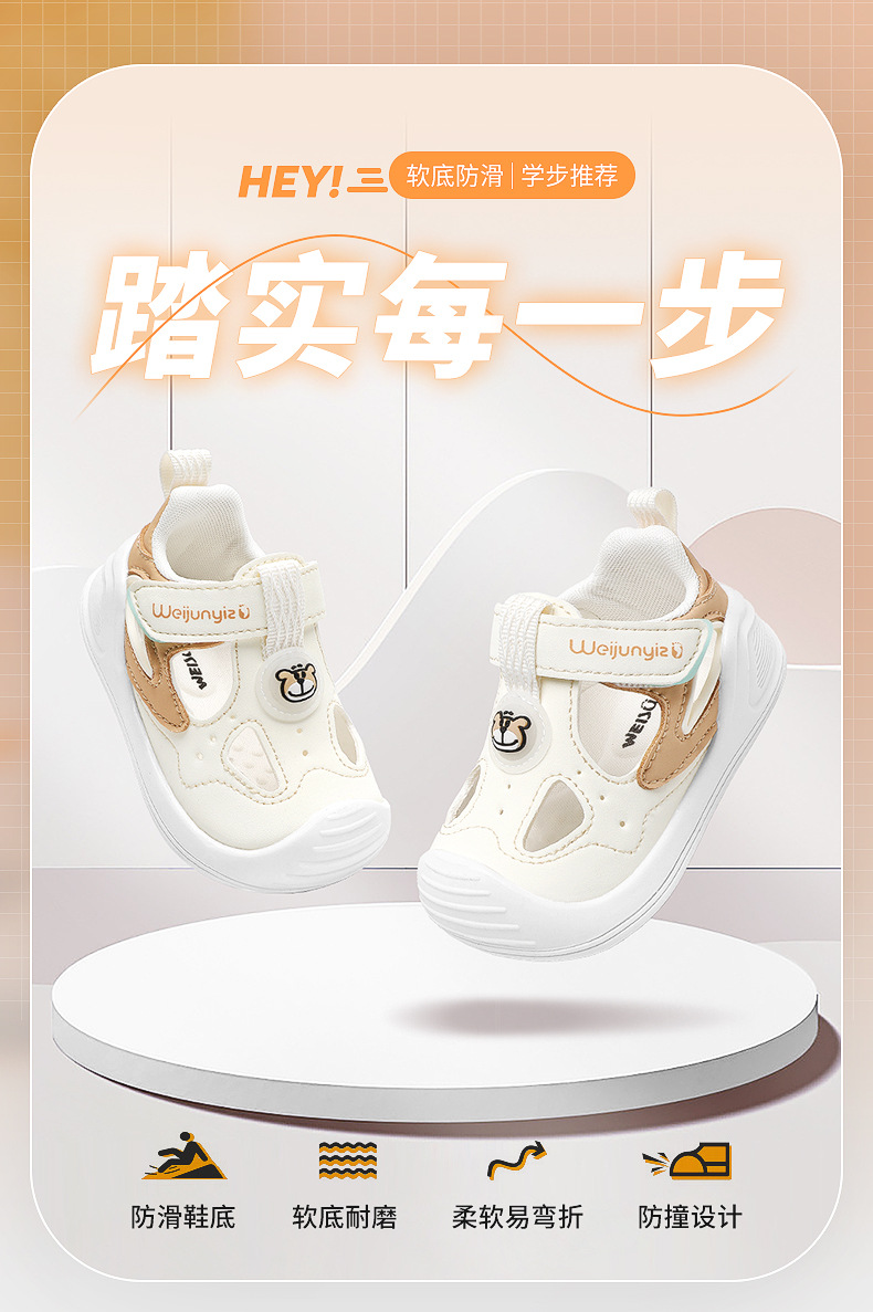 2023 새로운 여름 아기 유아 신발 소년 부드러운 단독 미끄럼 방지 아기 신발 0-1-2 세 Baotou 통기성 샌들