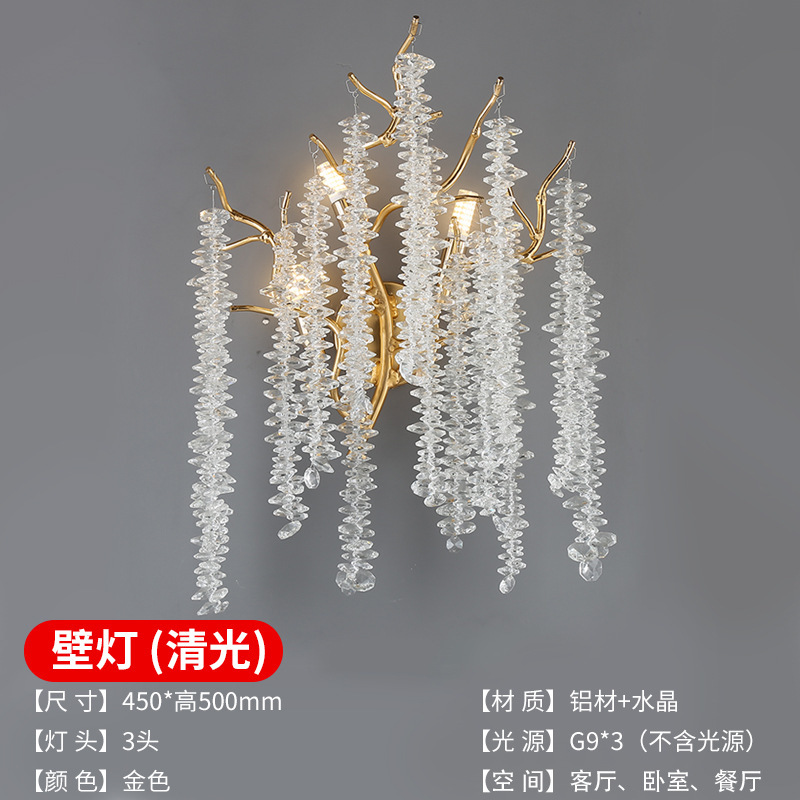 도매 포스트 모던 럭셔리 창조적 인 분기 벽 램프 램프 크리스탈 램프 마스터 침실 거실 배경 벽 램프 장식 램프스토어 가기