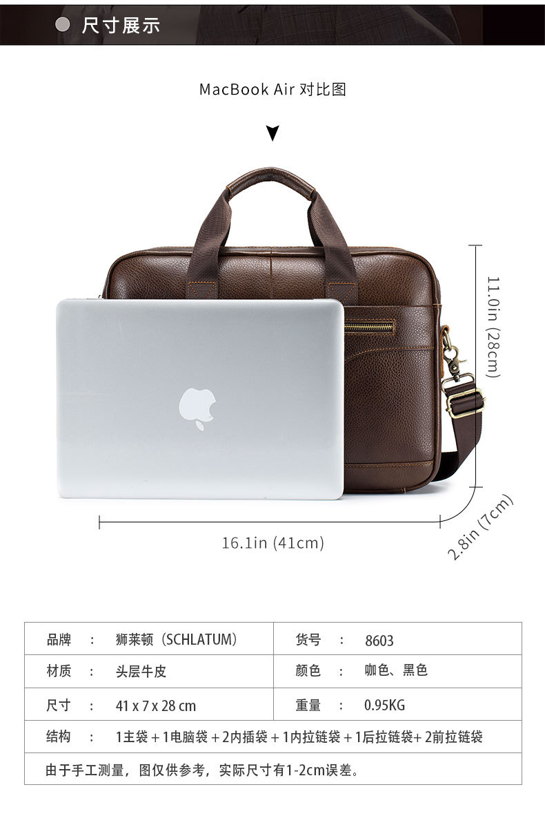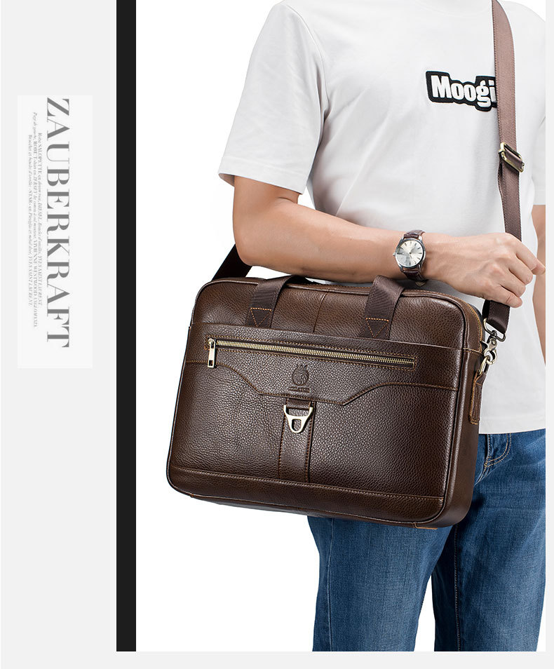 사자 라이덴 크로스 보더 남성용 서류 가방 탑 레이어 소가죽 남성용 비즈니스 가방 16 인치 정품 가죽 휴대용 숄더 컴퓨터 가방스토어 가기