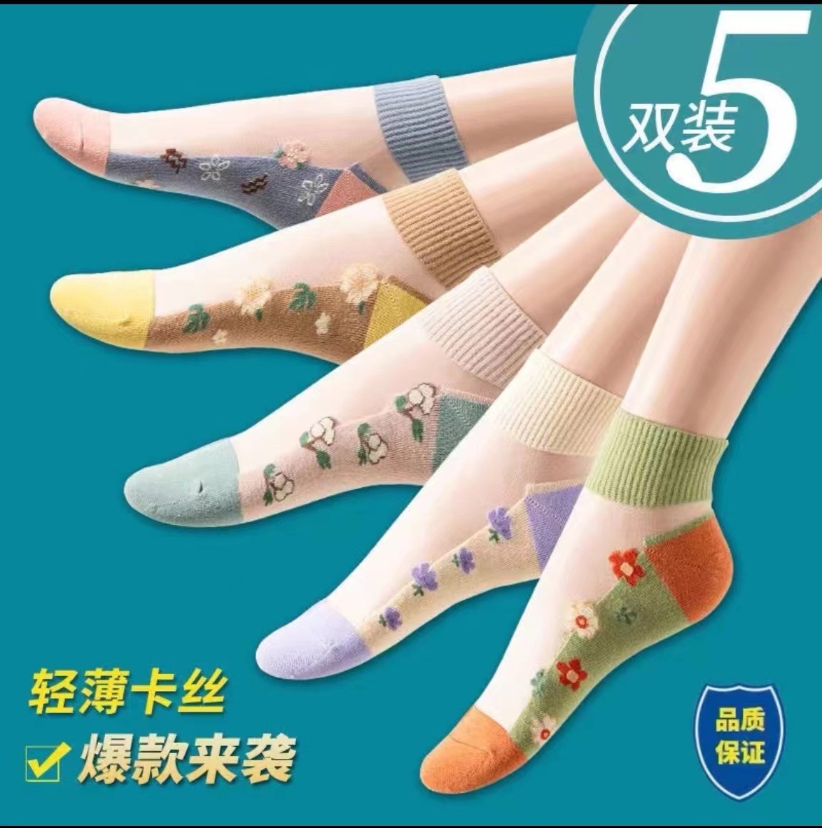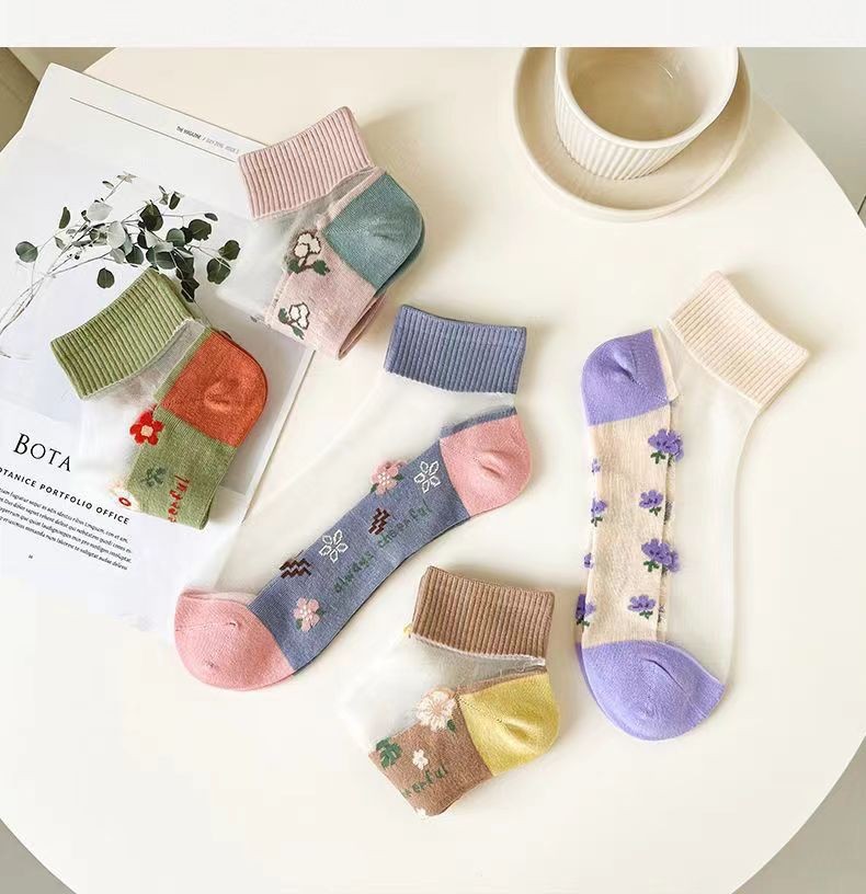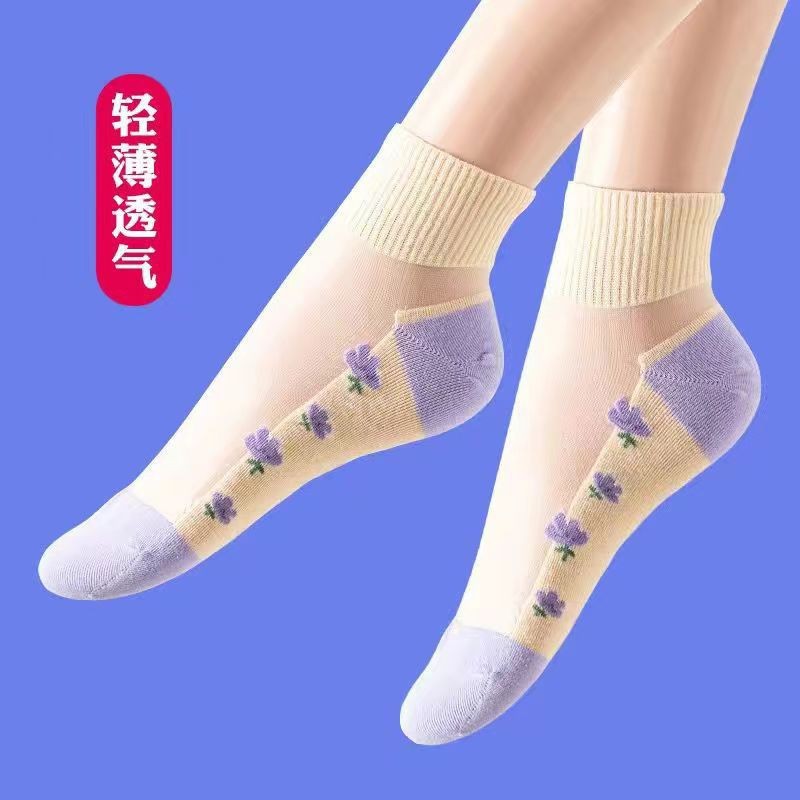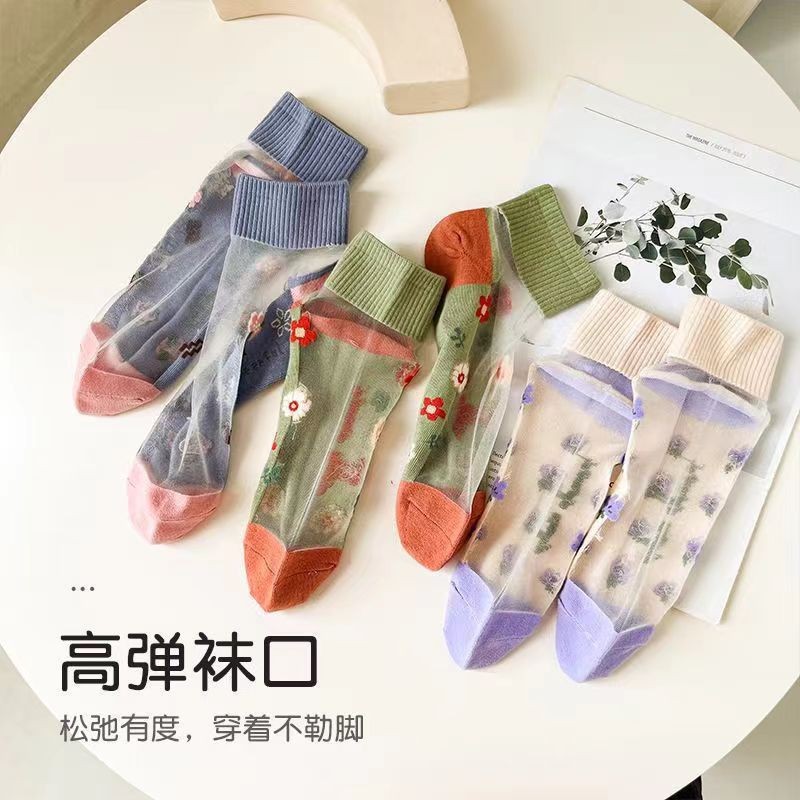 양말 여성용 데이지 크리스탈 양말 한국식 짧은 양말 여름 얇은 소녀 학생 보트 양말 인터넷 인기있는 투명 실크 스타킹 귀여운스토어 가기