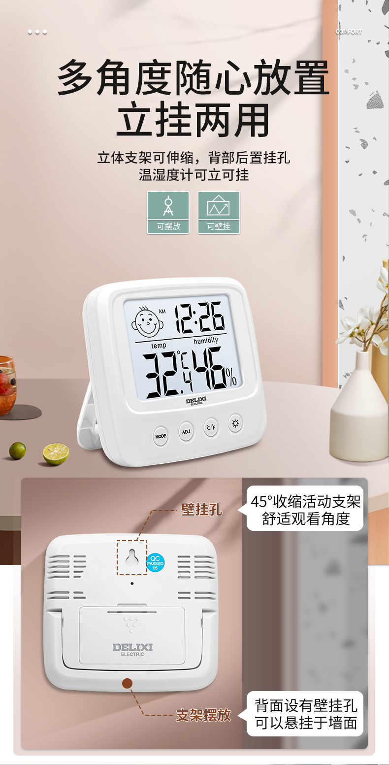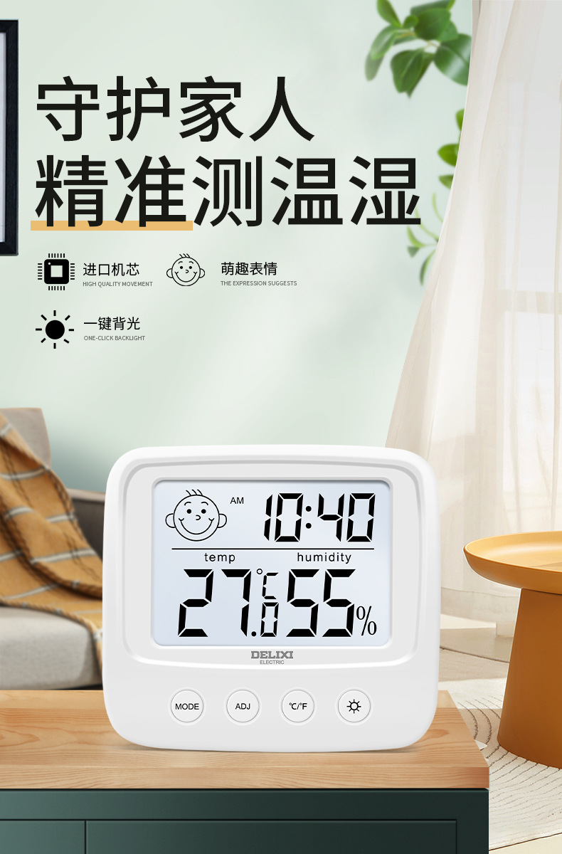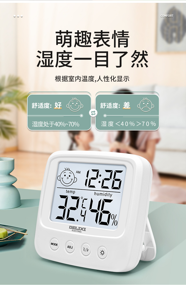 德力西家用温湿度计卧室室内便携湿度数字电子温度检测表正品批发