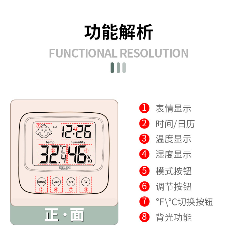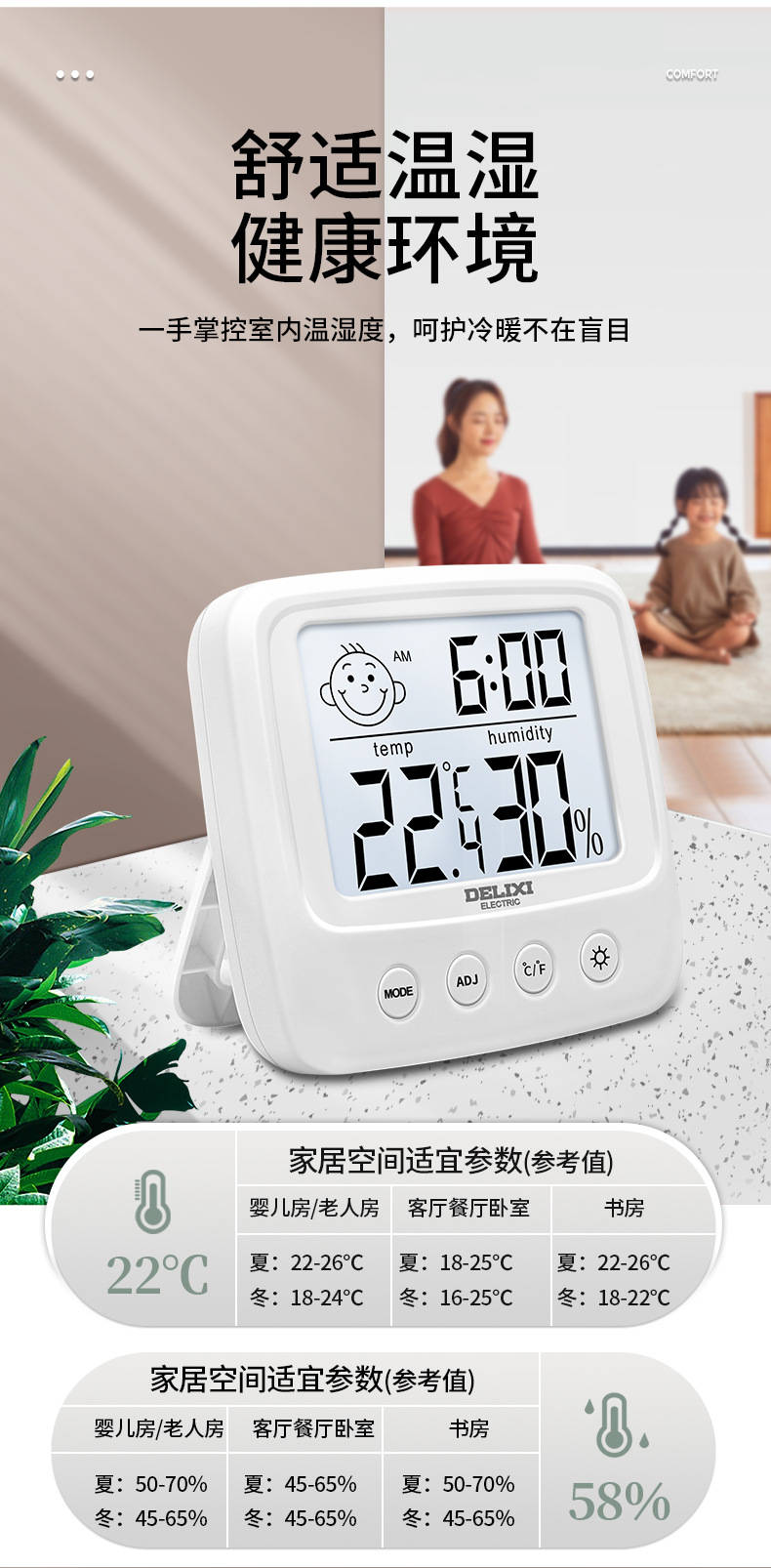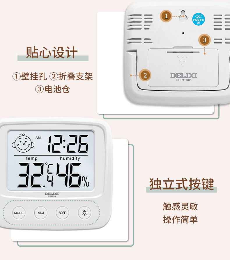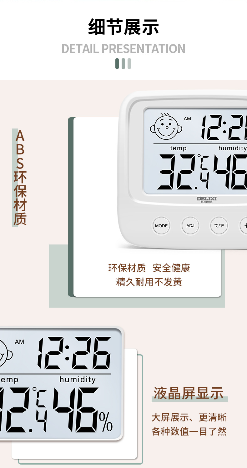 德力西家用温湿度计卧室室内便携湿度数字电子温度检测表正品批发
