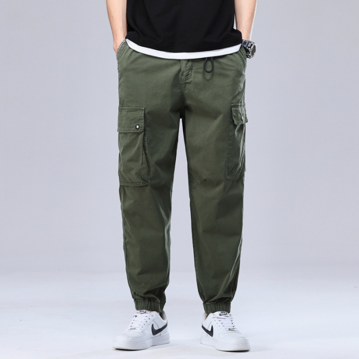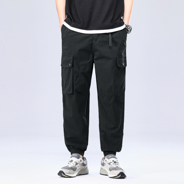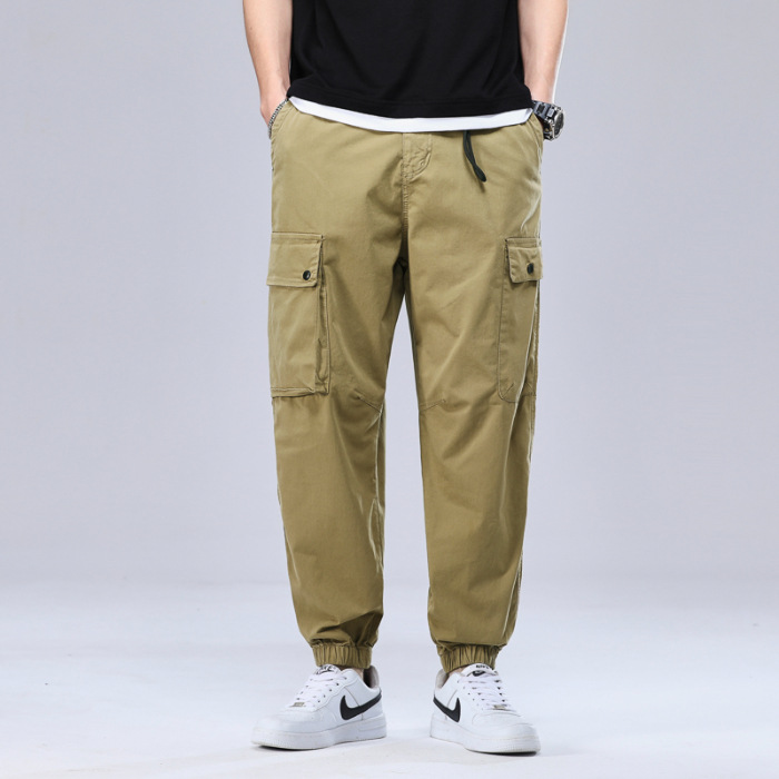일본식 멀티 포켓 크라우드 워크 바지 남성용 봄 느슨한 니킹 다리 캐주얼 바지 빈티지 모든 매치 트렌디 다리 바지 남성용